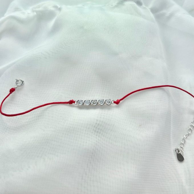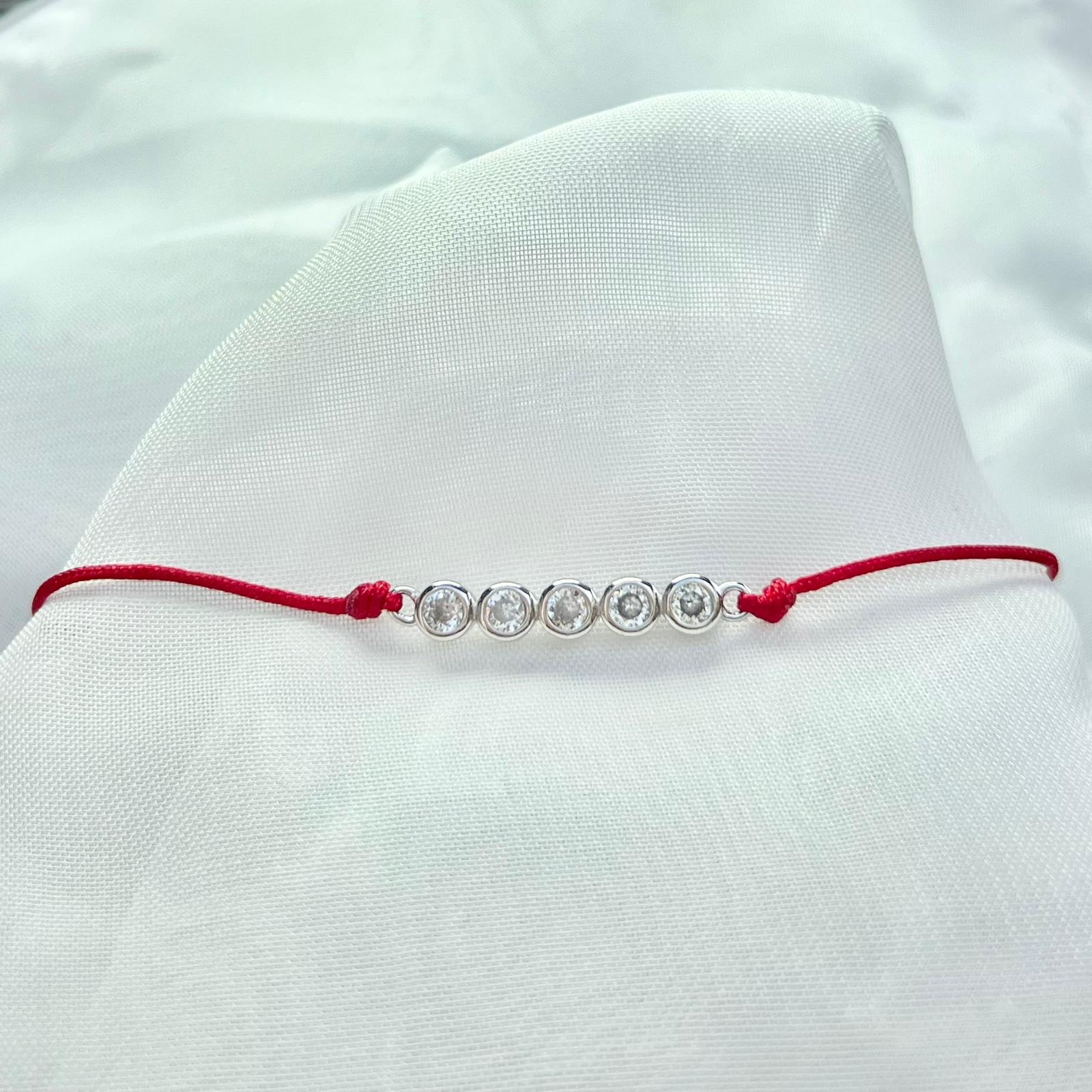 צמיד חוט עם פלטת חמישה אבנים עגולות מכסף אמיתי 925