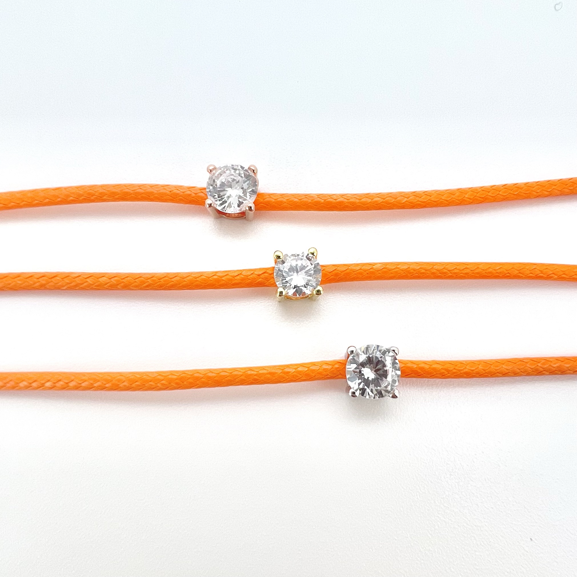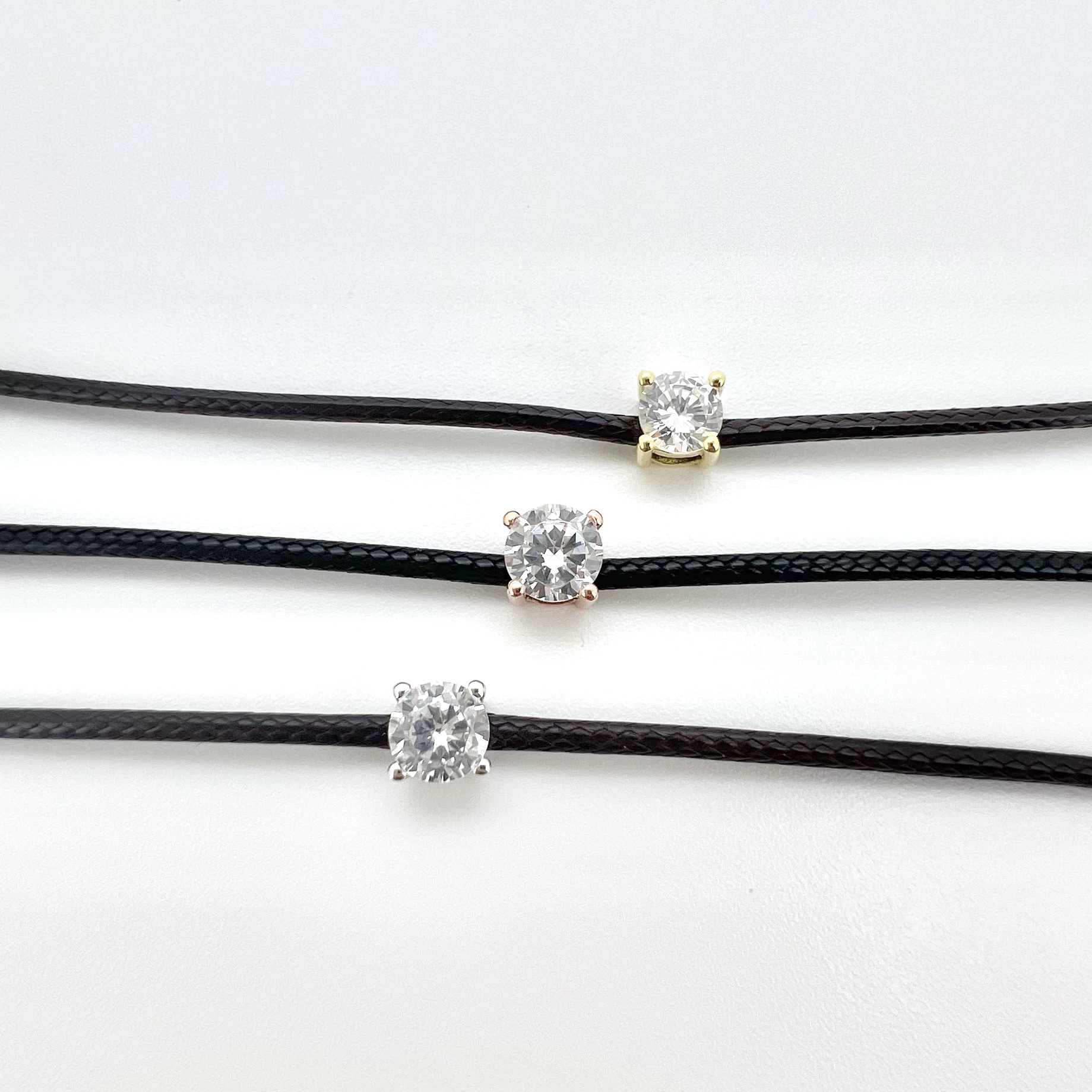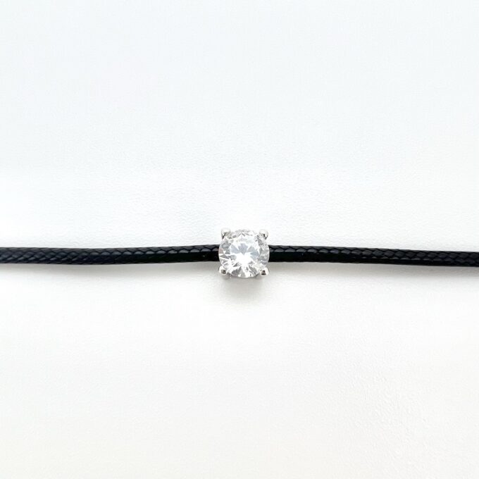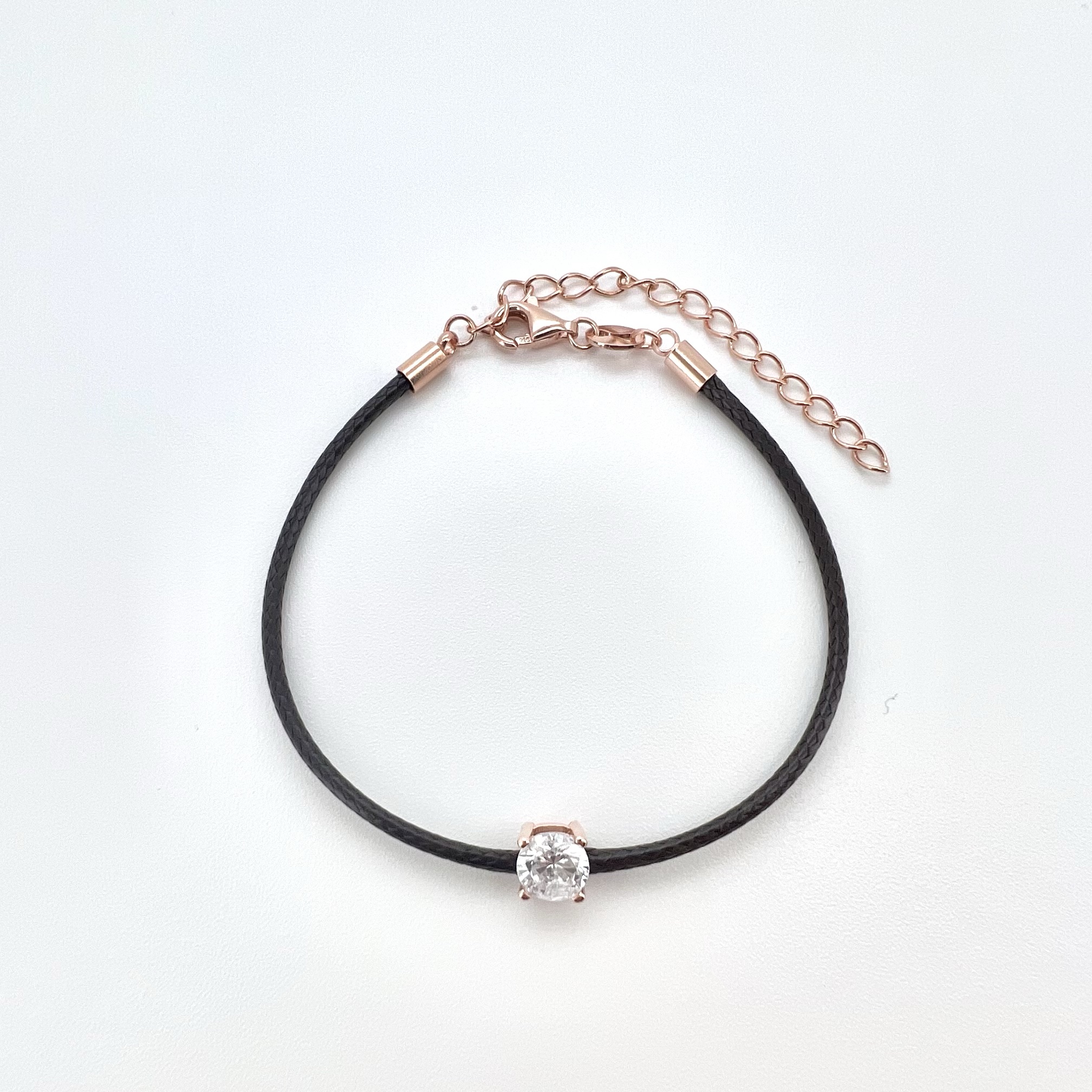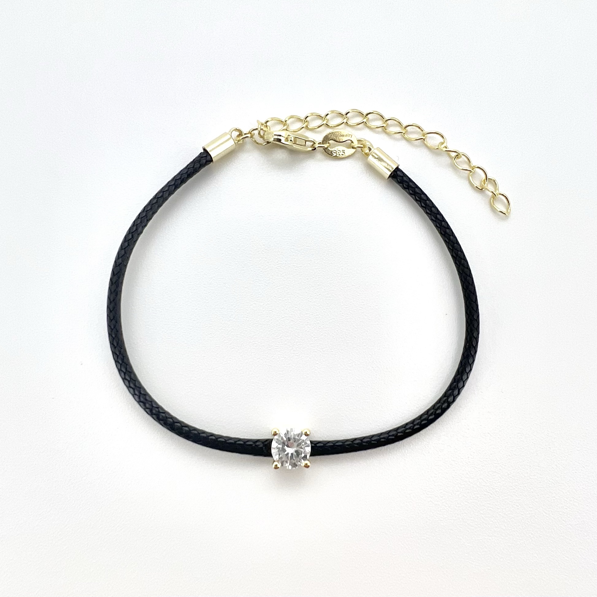 צמיד חוט עור עם תליון אבן זרקון עגולה עם אופציית הארכה 5 ס״מ מכסף אמיתי 925
