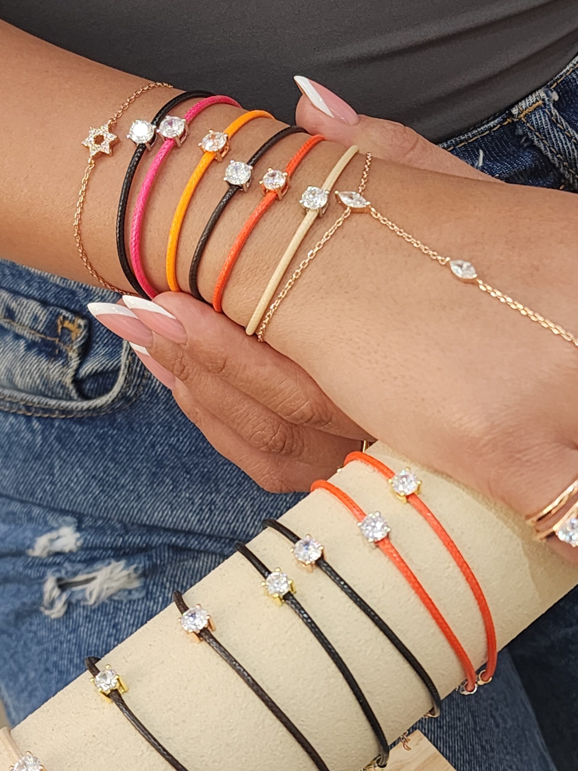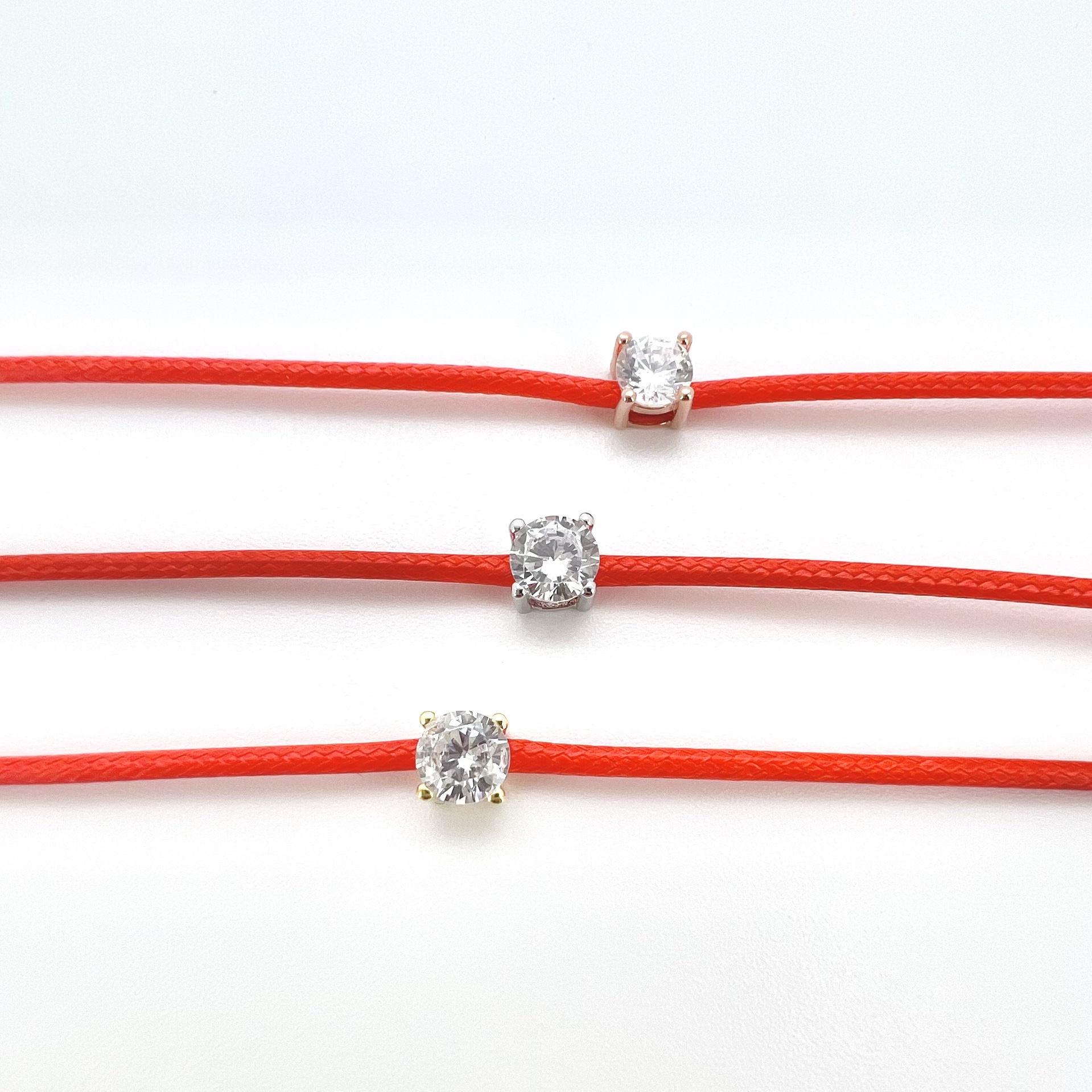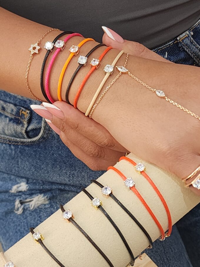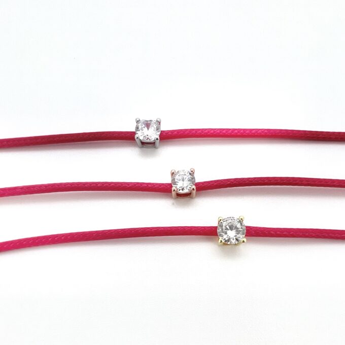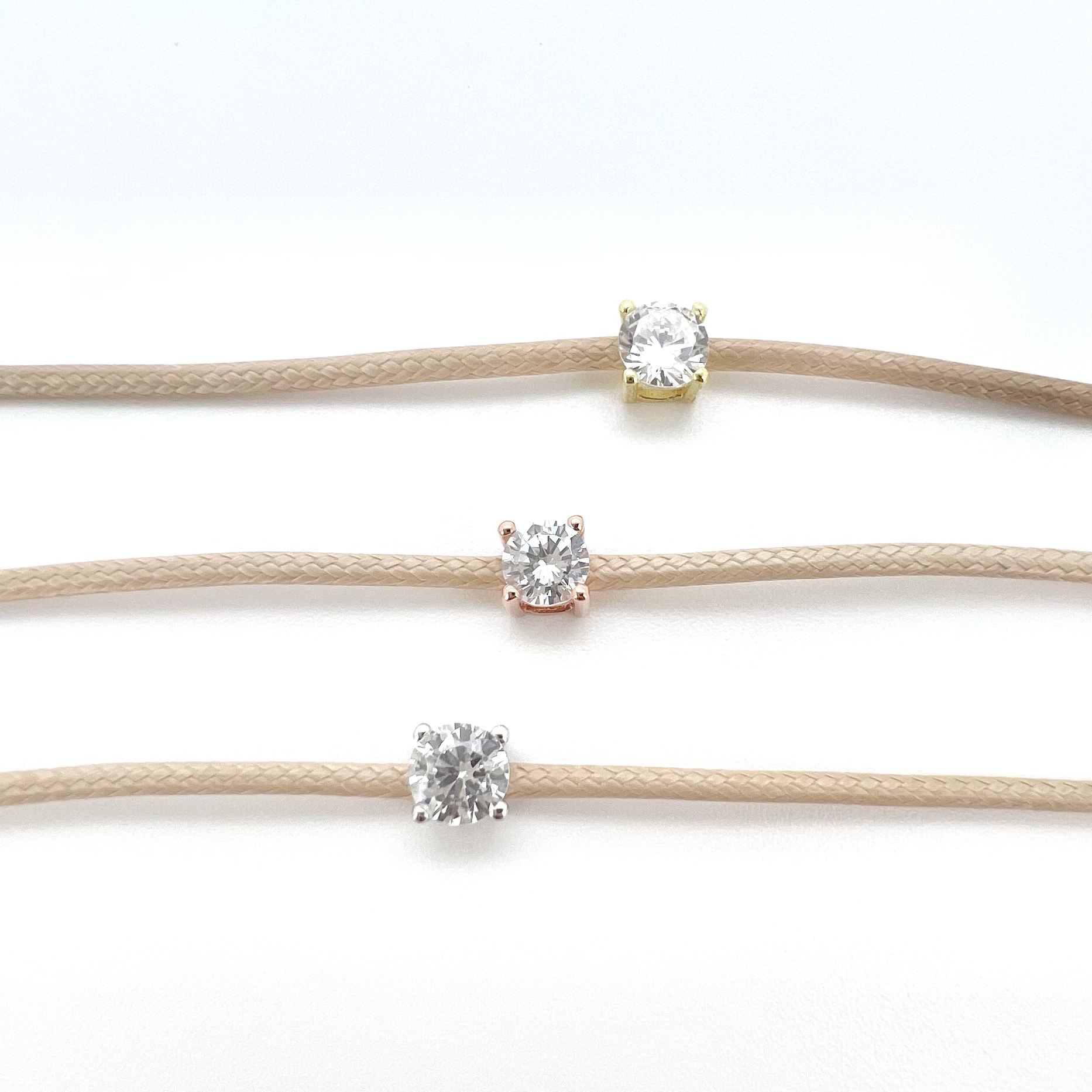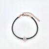 צמיד חוט עור עם תליון אבן זרקון עגולה עם אופציית הארכה 5 ס״מ מכסף אמיתי 925