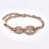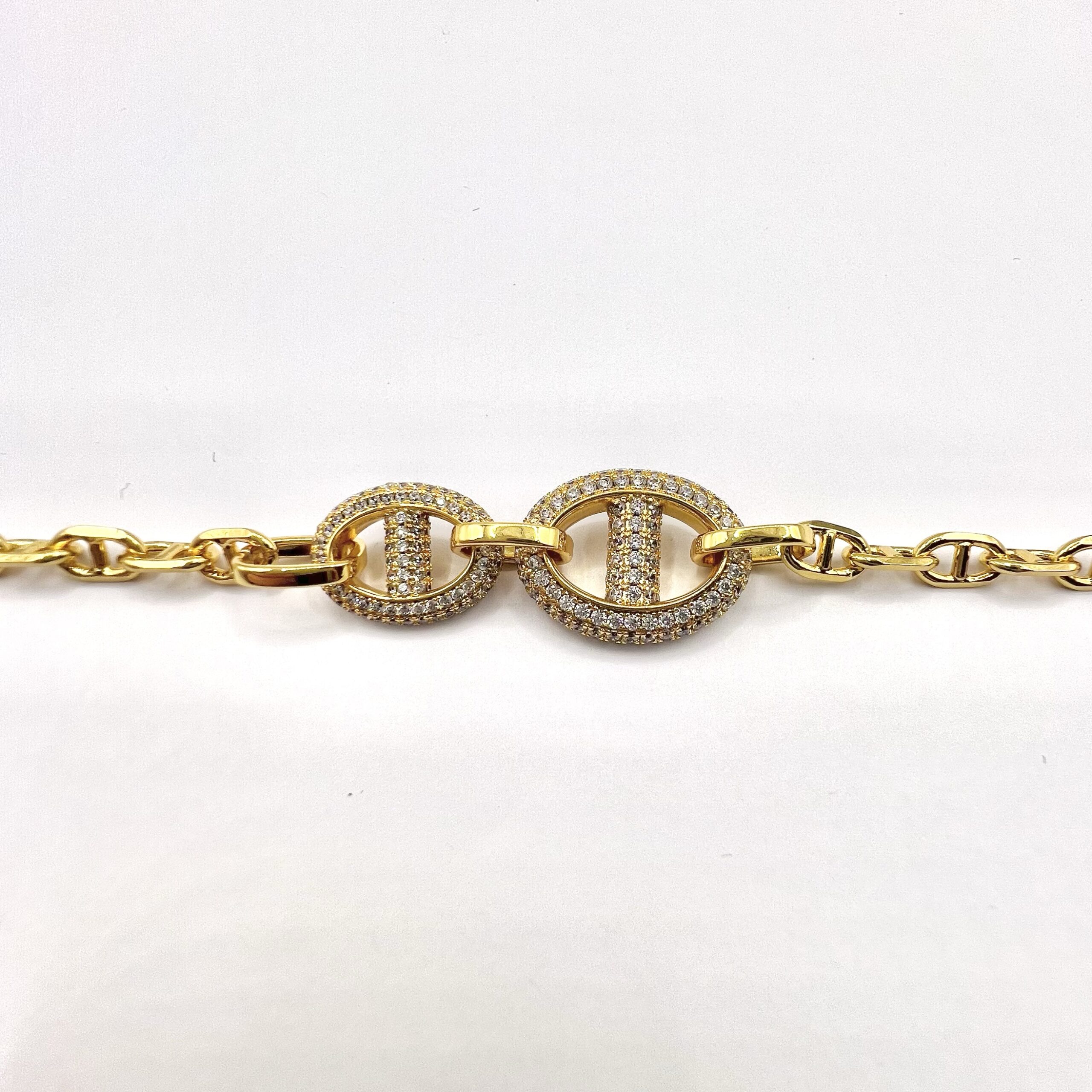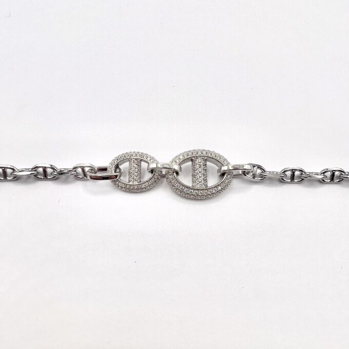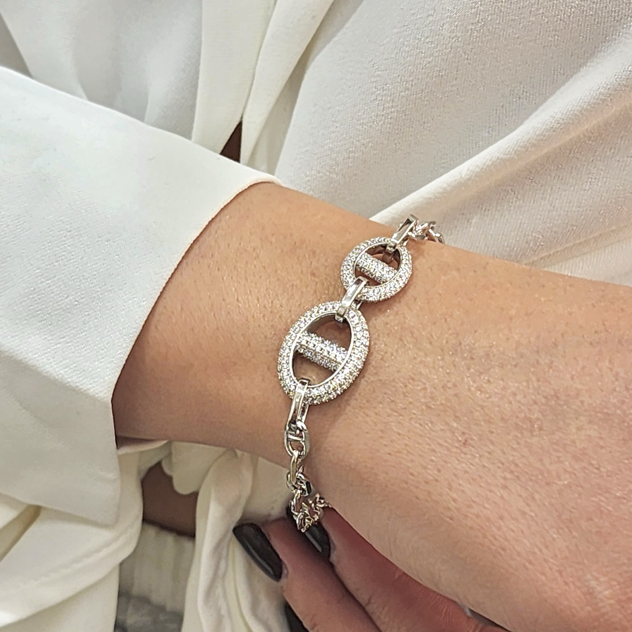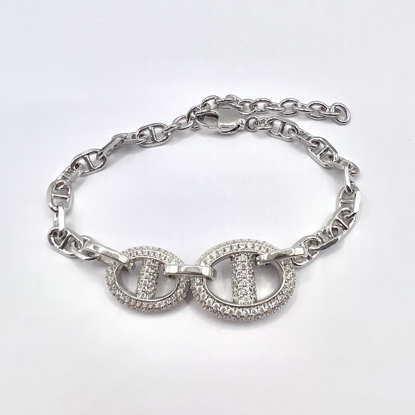 צמיד חוליות עגולות עם שתי חוליות גדולות משובצות אבני זרקון מרודיום איכותי