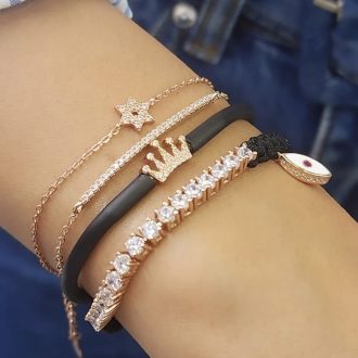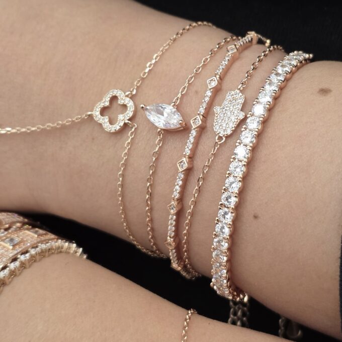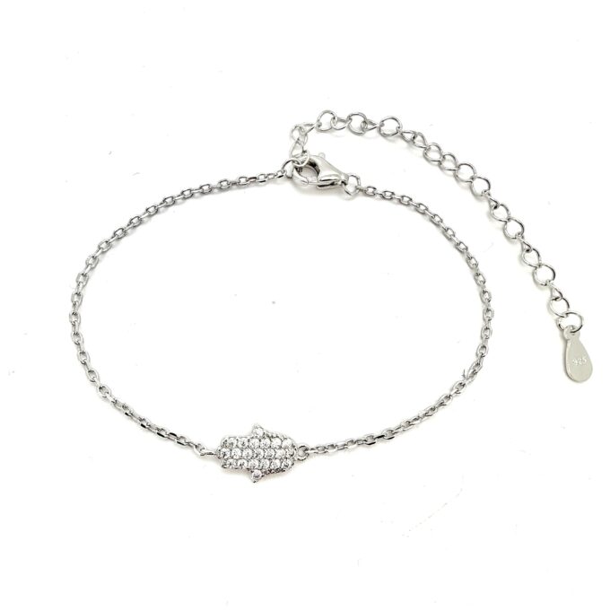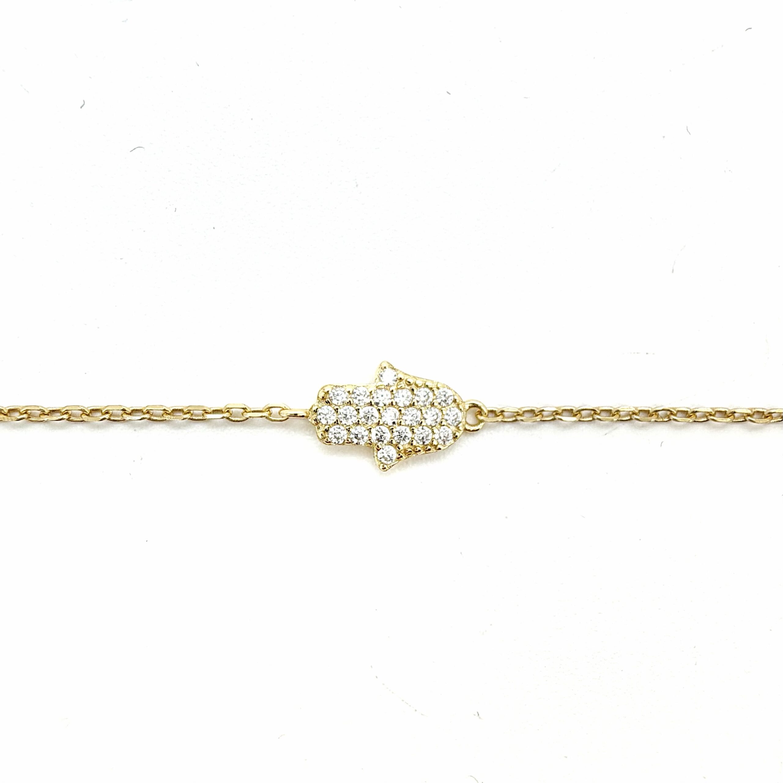צמיד עם תליון בצורת חמסה משובת אבני זרקון