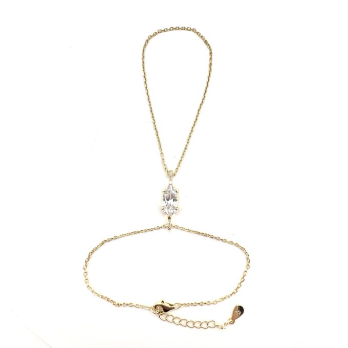 צמיד מחובר לטבעת ובמרכזה משובץ אבן זרקון בצורת מרקיזה