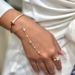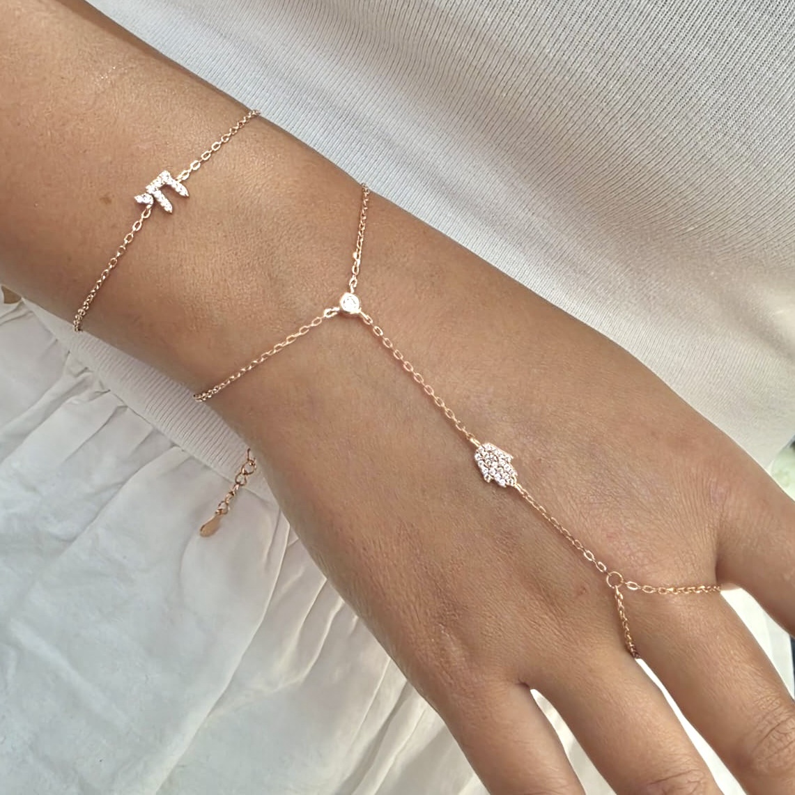 צמיד מחובר לטבעת עם תליון חמסה משובץ אבני זרקון