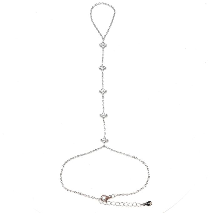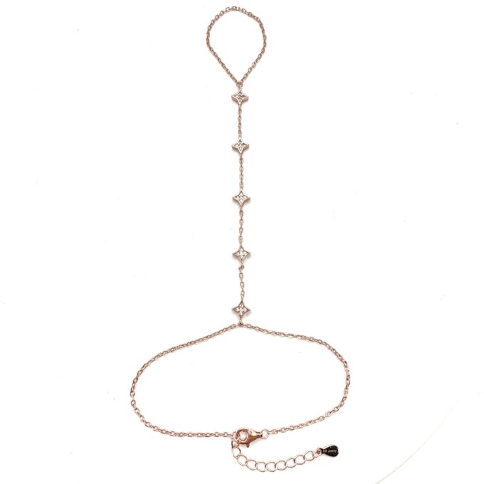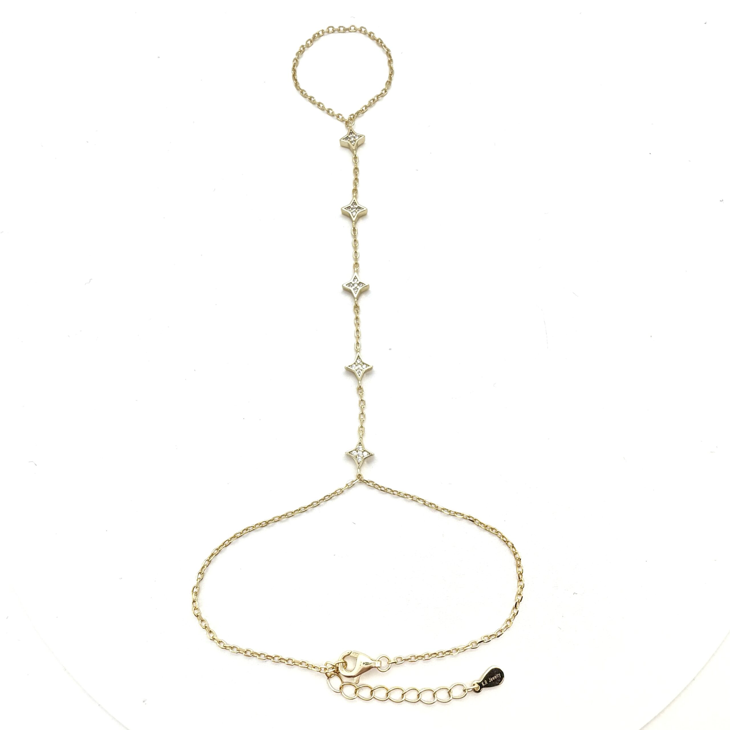 צמיד מחובר לטבעת עם תליוני נצנוץ כוכבים משובצים אבני זרקון