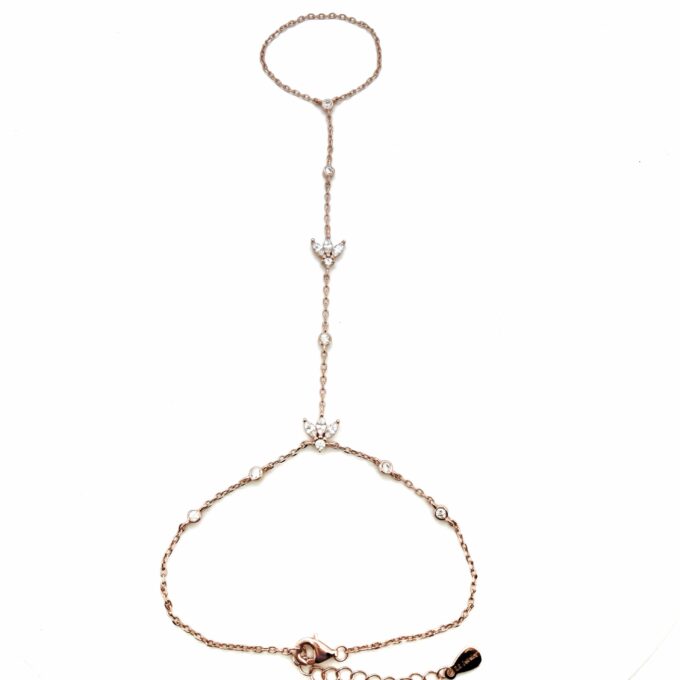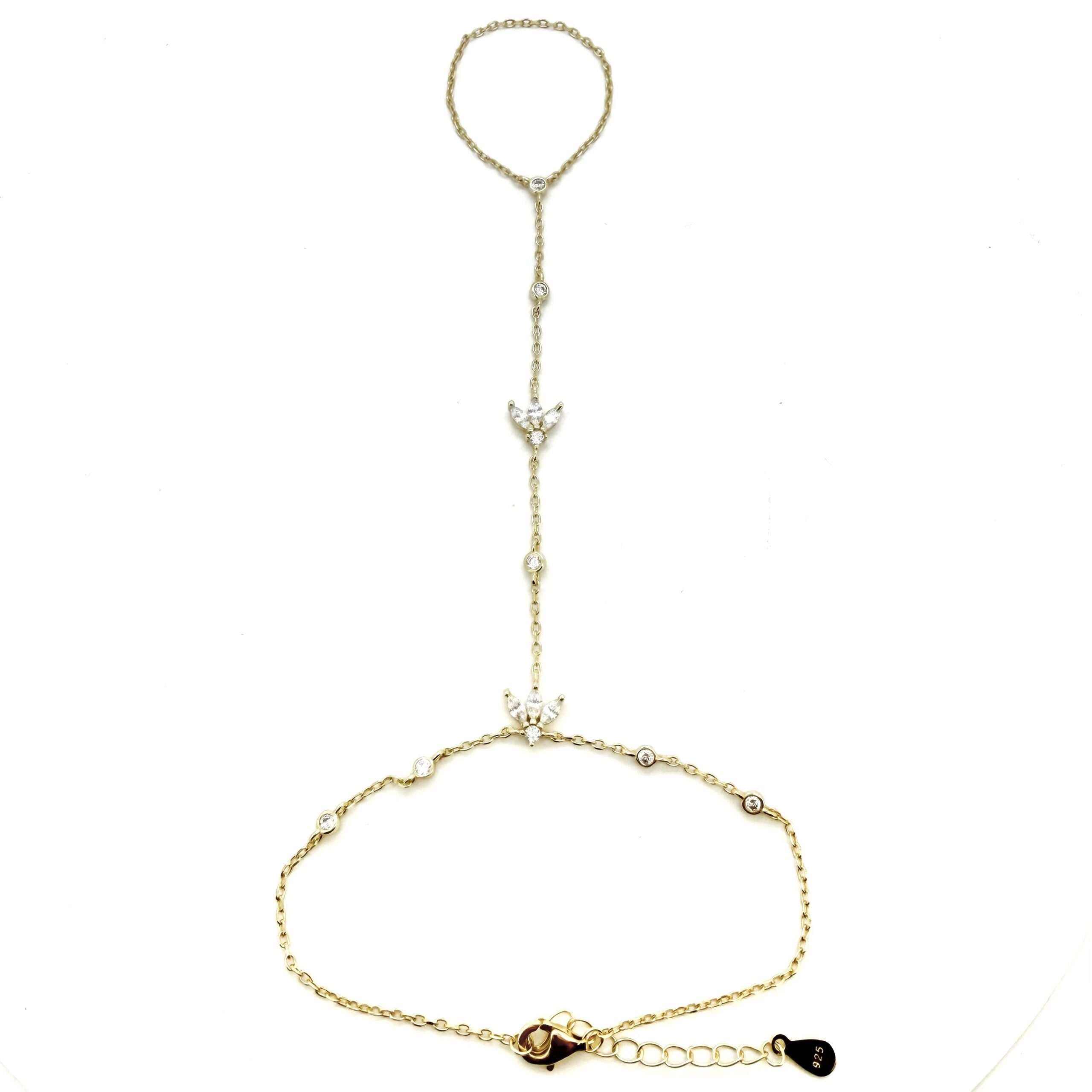 צמיד מחובר לטבעת משובץ אבני זרקון