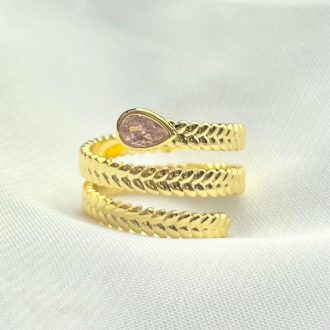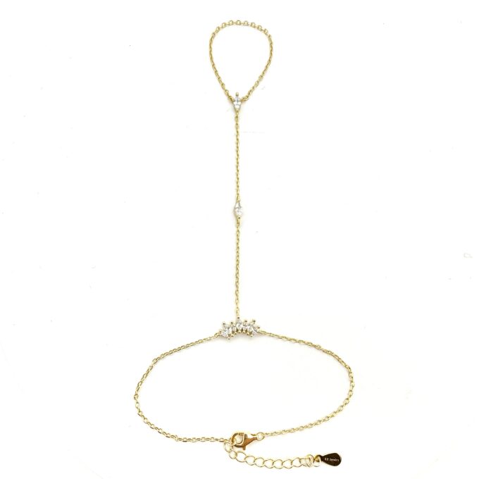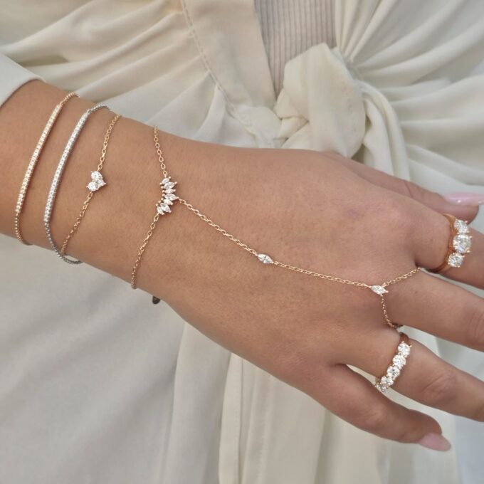 צמיד מחובר לטבעת משובץ אבני זרקון