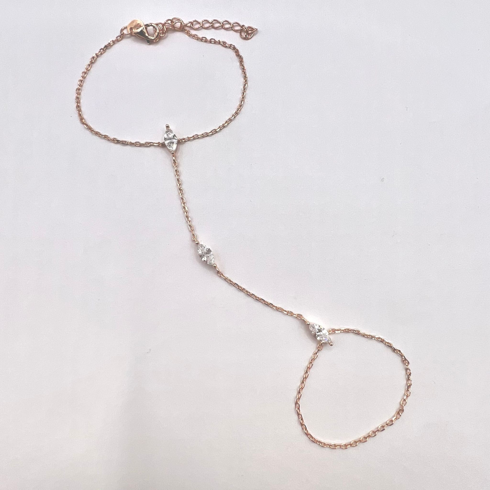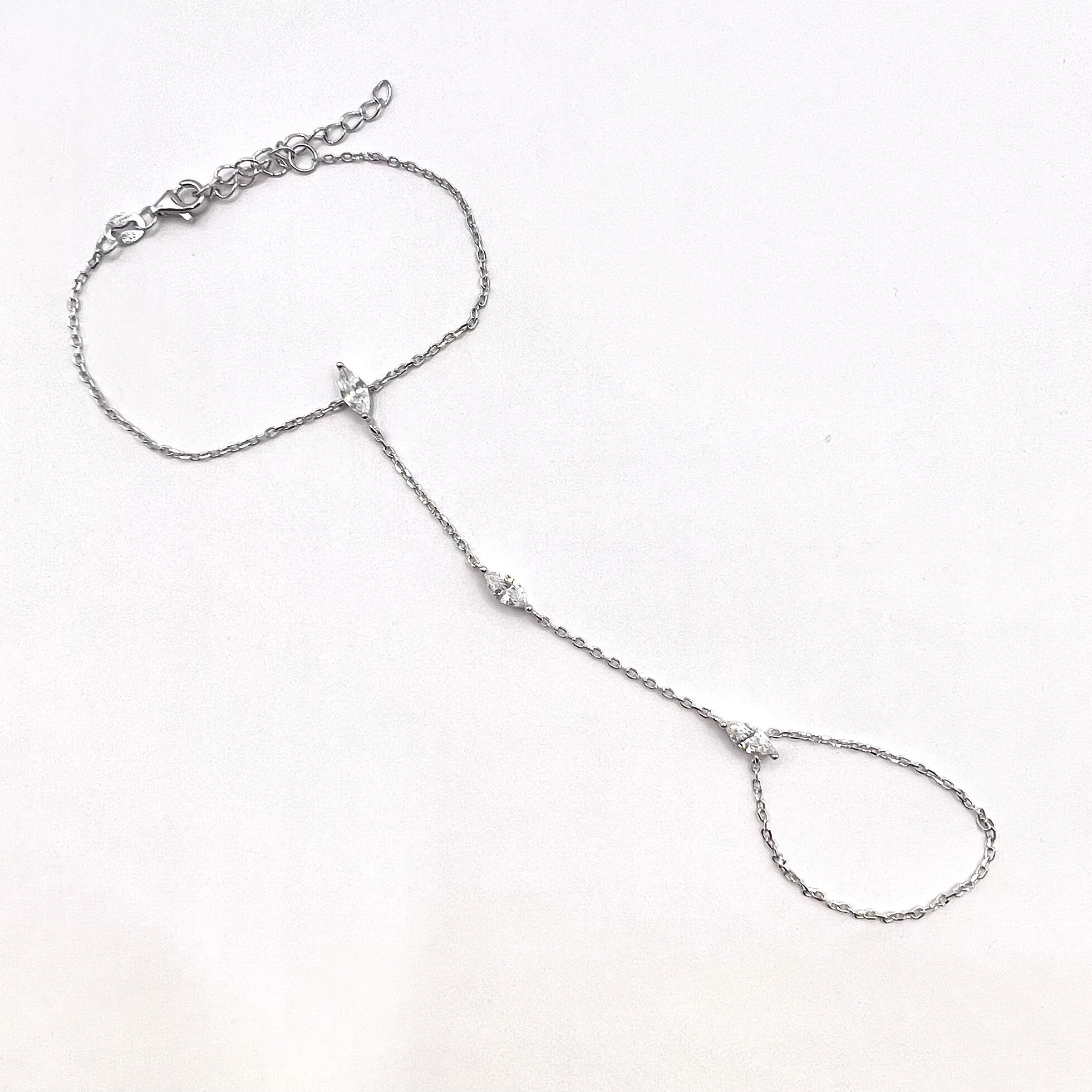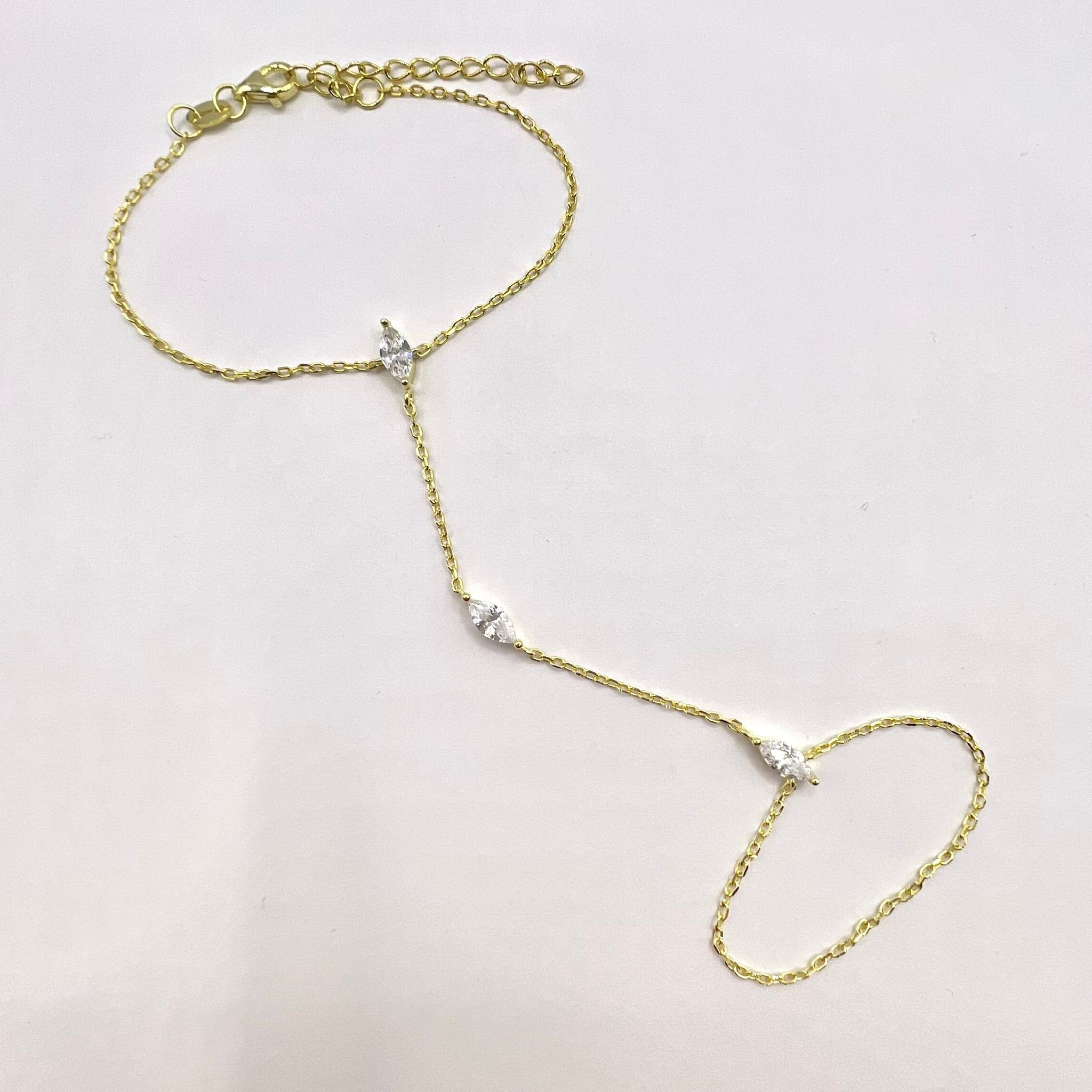 צמיד שמתחבר לטבעת עם 3 אבני מרקיזה וואנסייז (ללא מידה) מכסף אמיתי מגיע גם בציפוי כסף זהב ורוז גולד