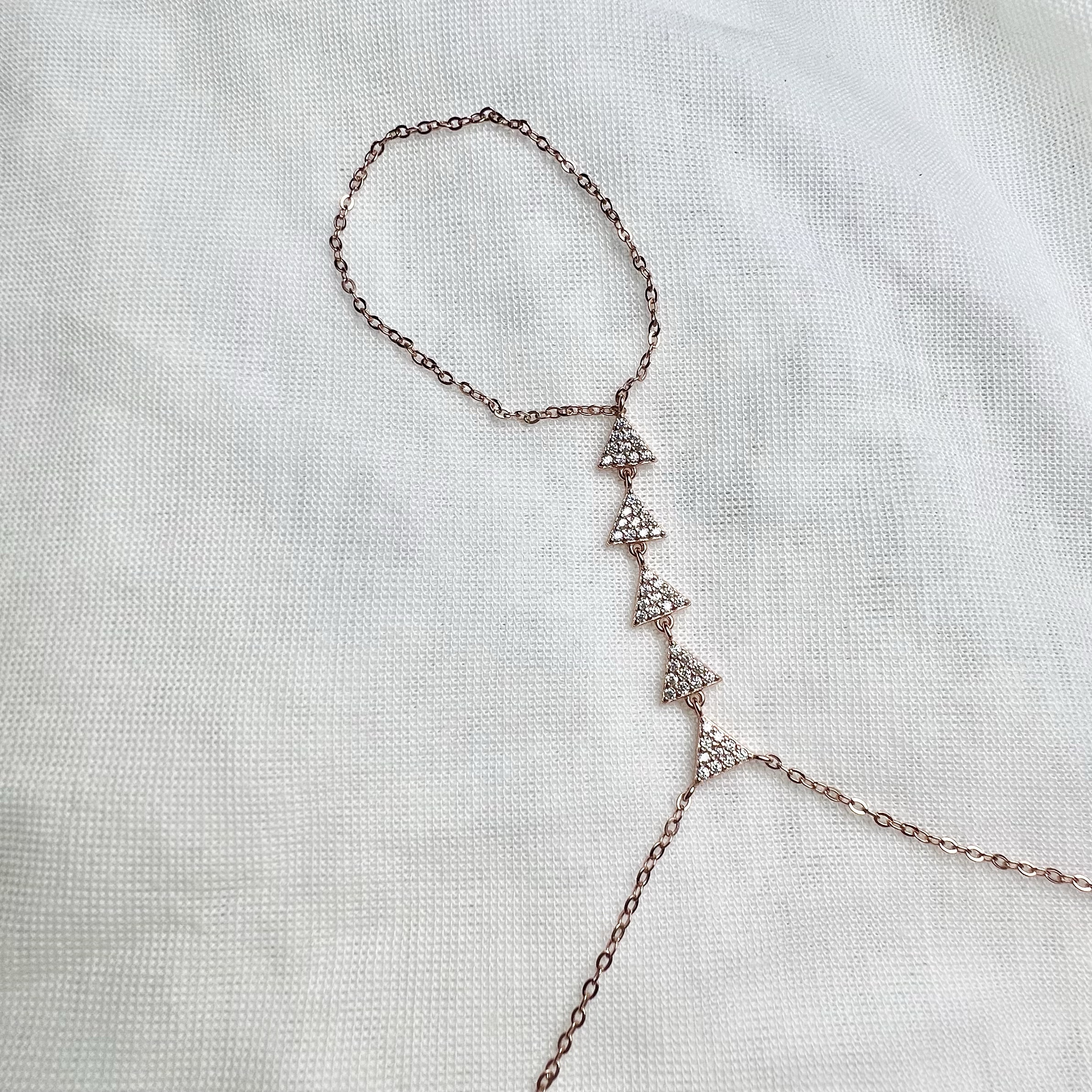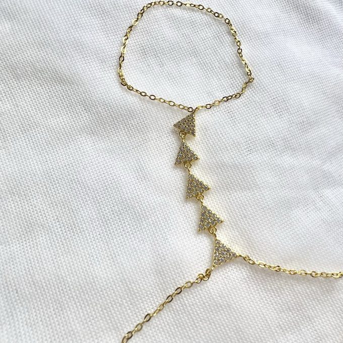 צמיד שמחובר לטבעת עם פלטות משולים משובצים אבני זרקון מכסף אמיתי 925