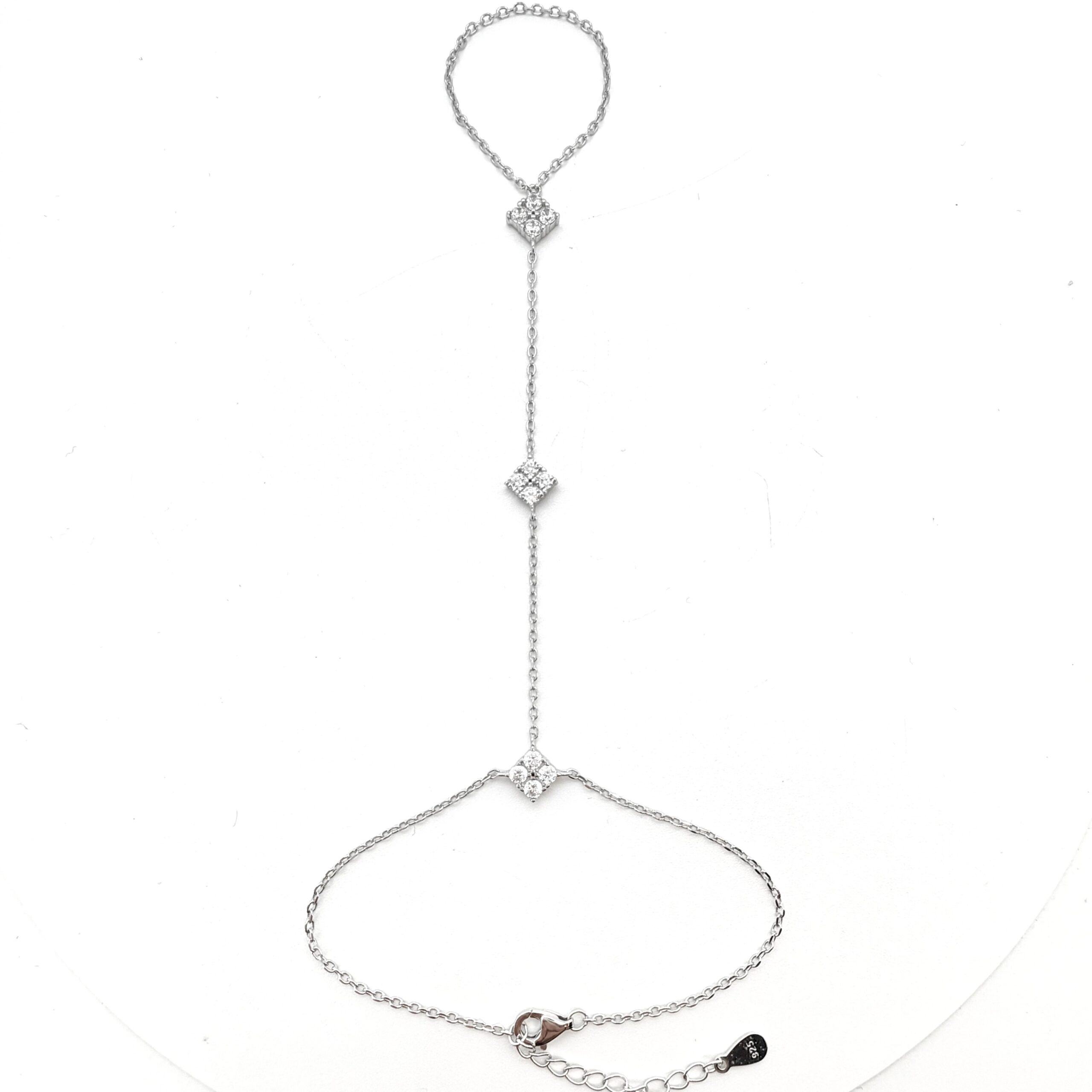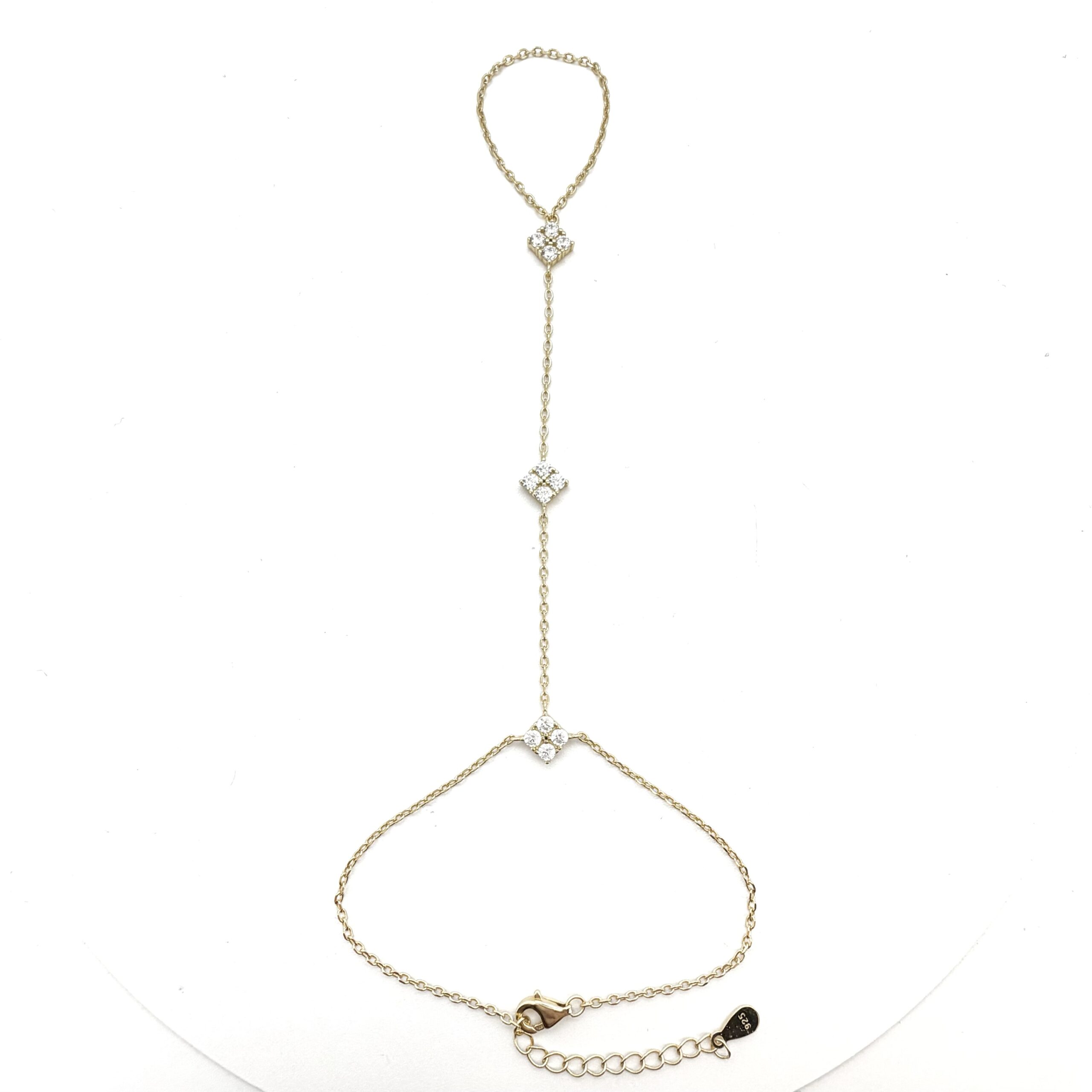 צמיד מחובר לטבעת עם 3 תליונים משובצים אבני זרקון