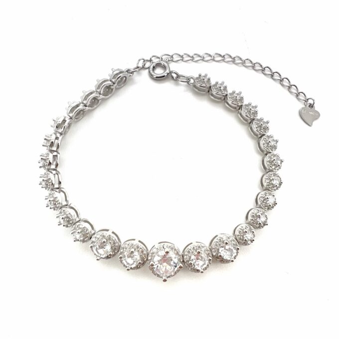 צמיד טניס עם סגירת שרשרת משובץ אבני זרקון גדולים עם שיבוץ אבני זרקון קטנות מסביבו