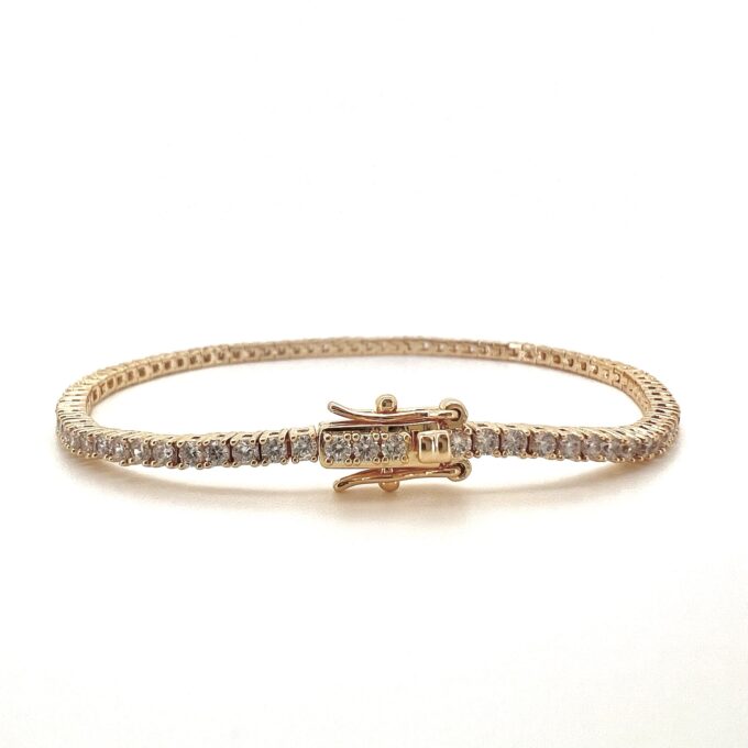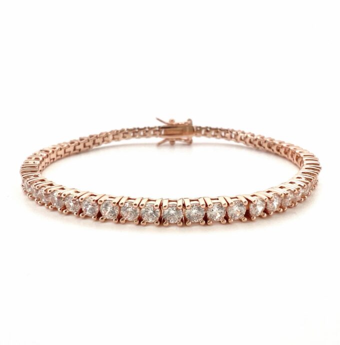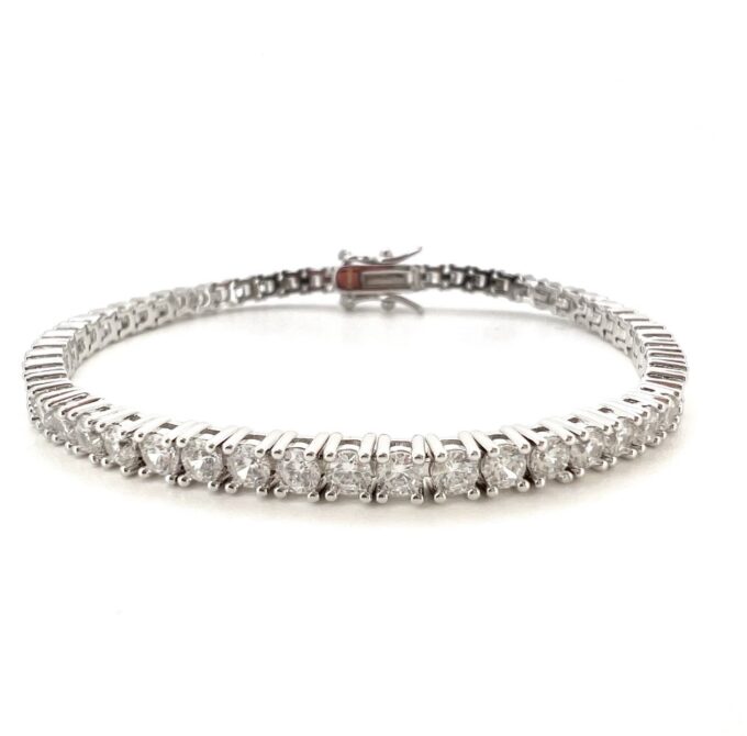 צמיד טניס משובץ אבני זרקון בגודל 2-4 מ״מ מרודיום איכותי