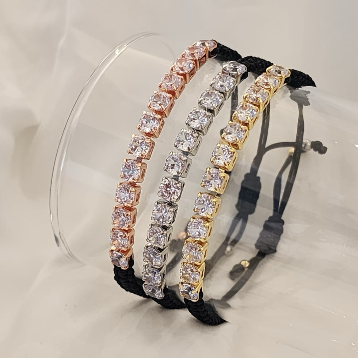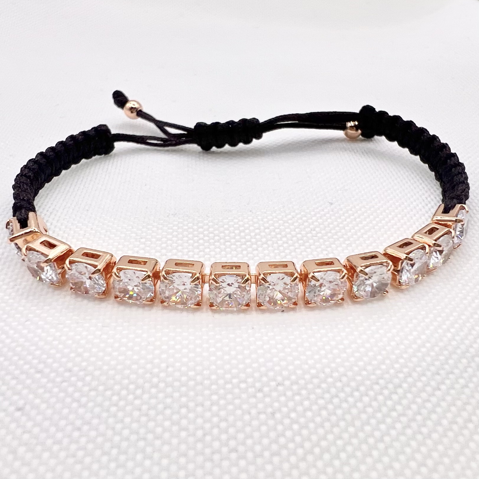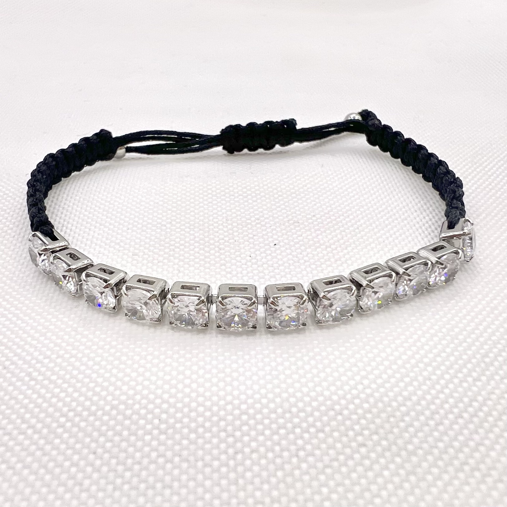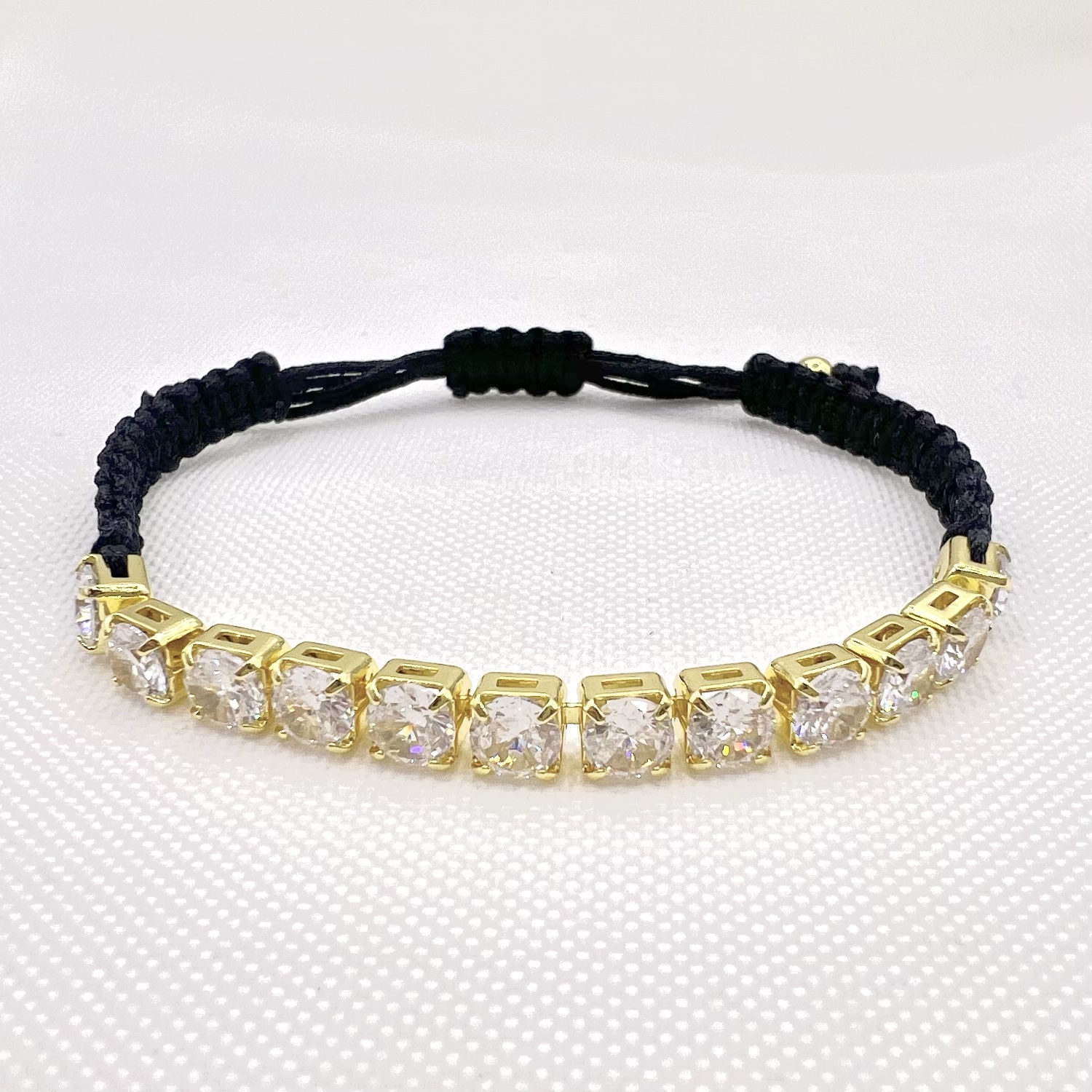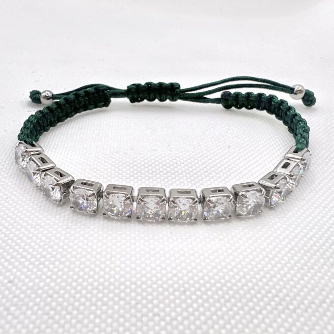 צמיד טניס מרודיום איכותי משולב על חוט שחור / ירוק