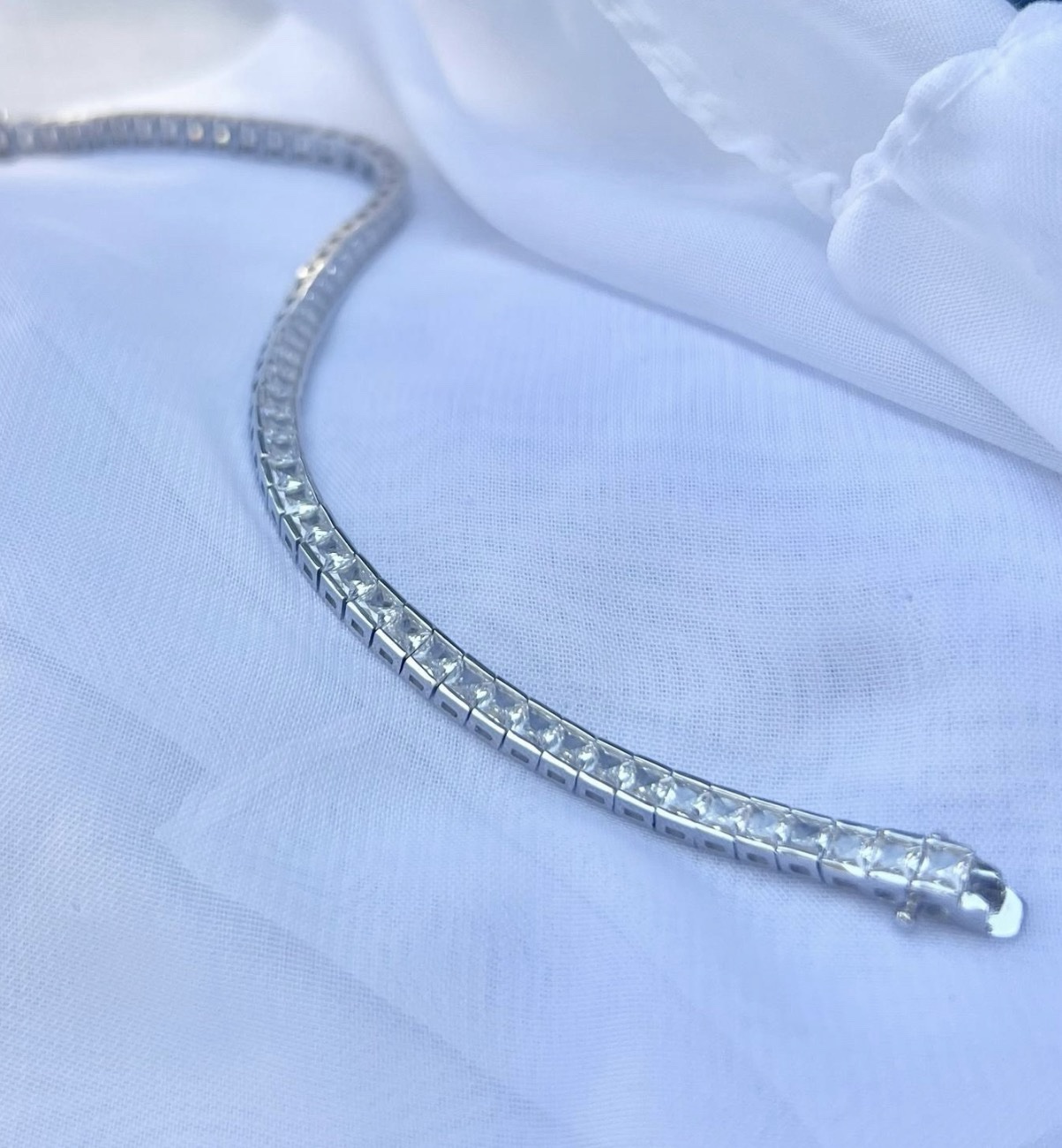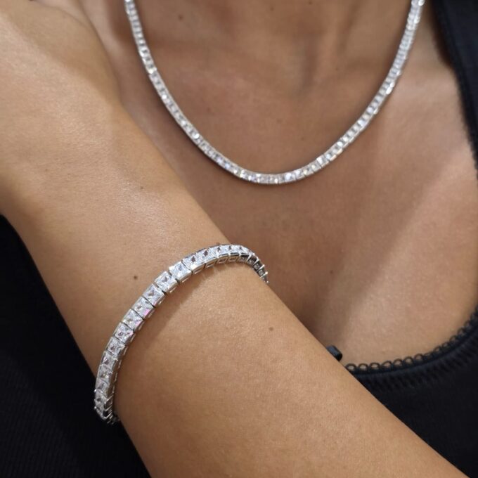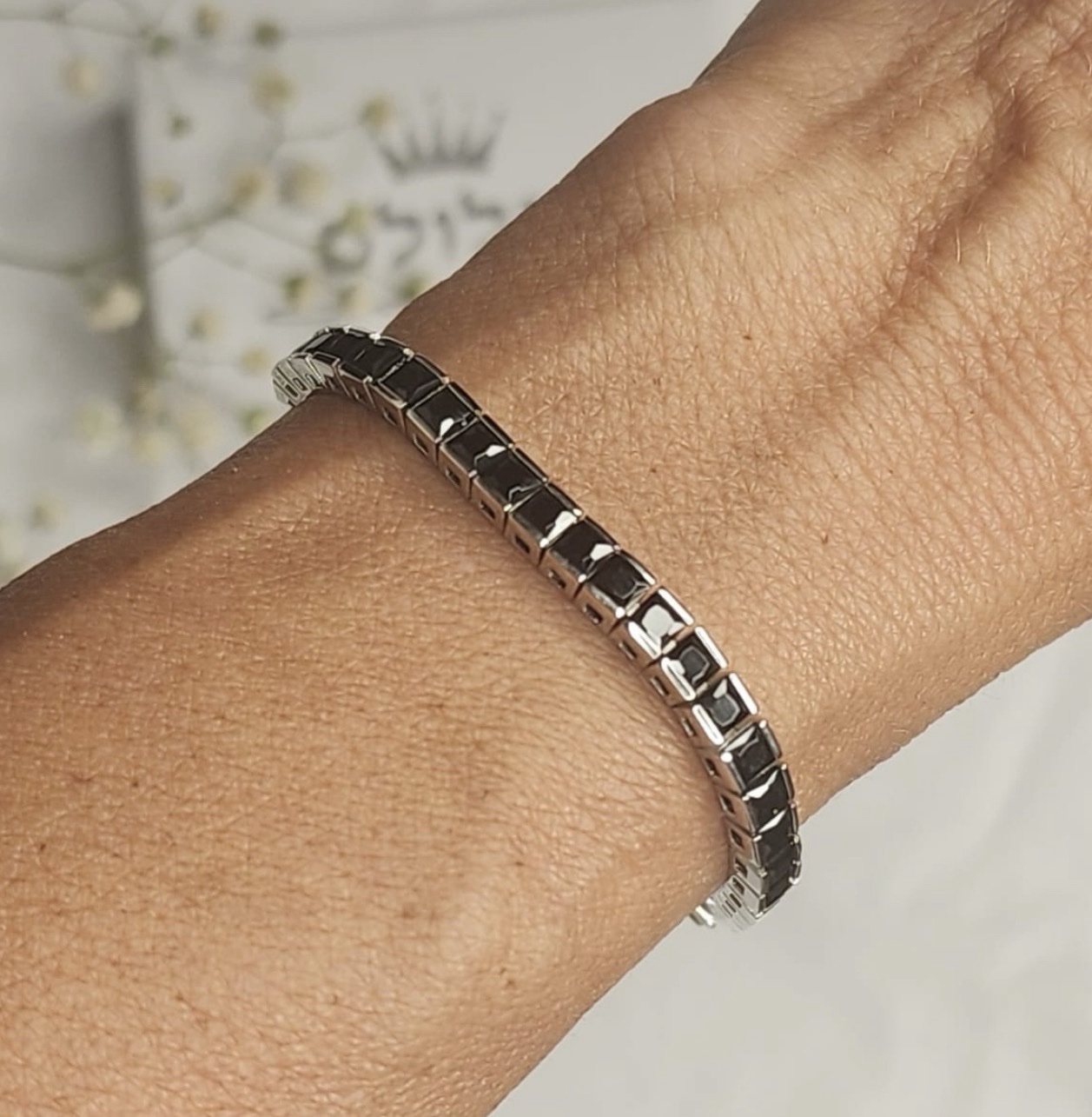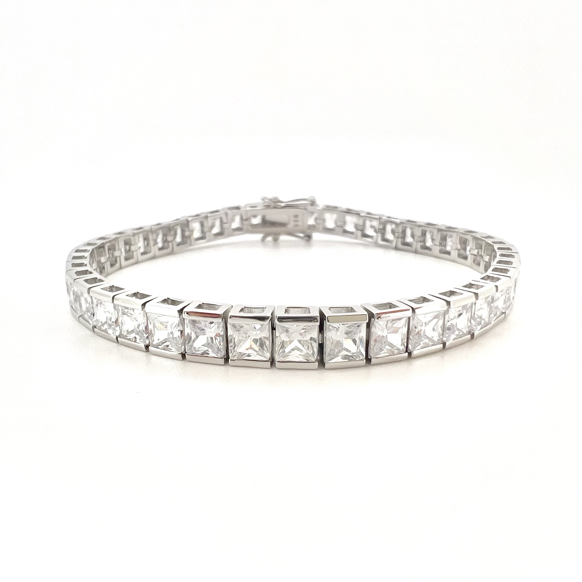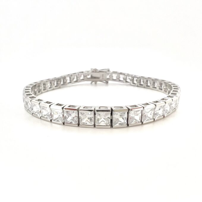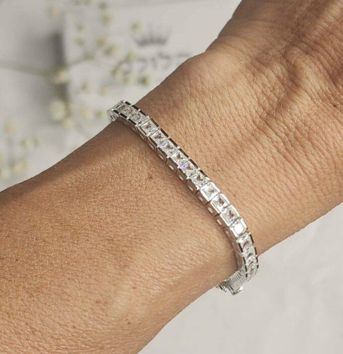צמיד טניס משובץ אבני זרקון מרובעות מכסף אמיתי 925