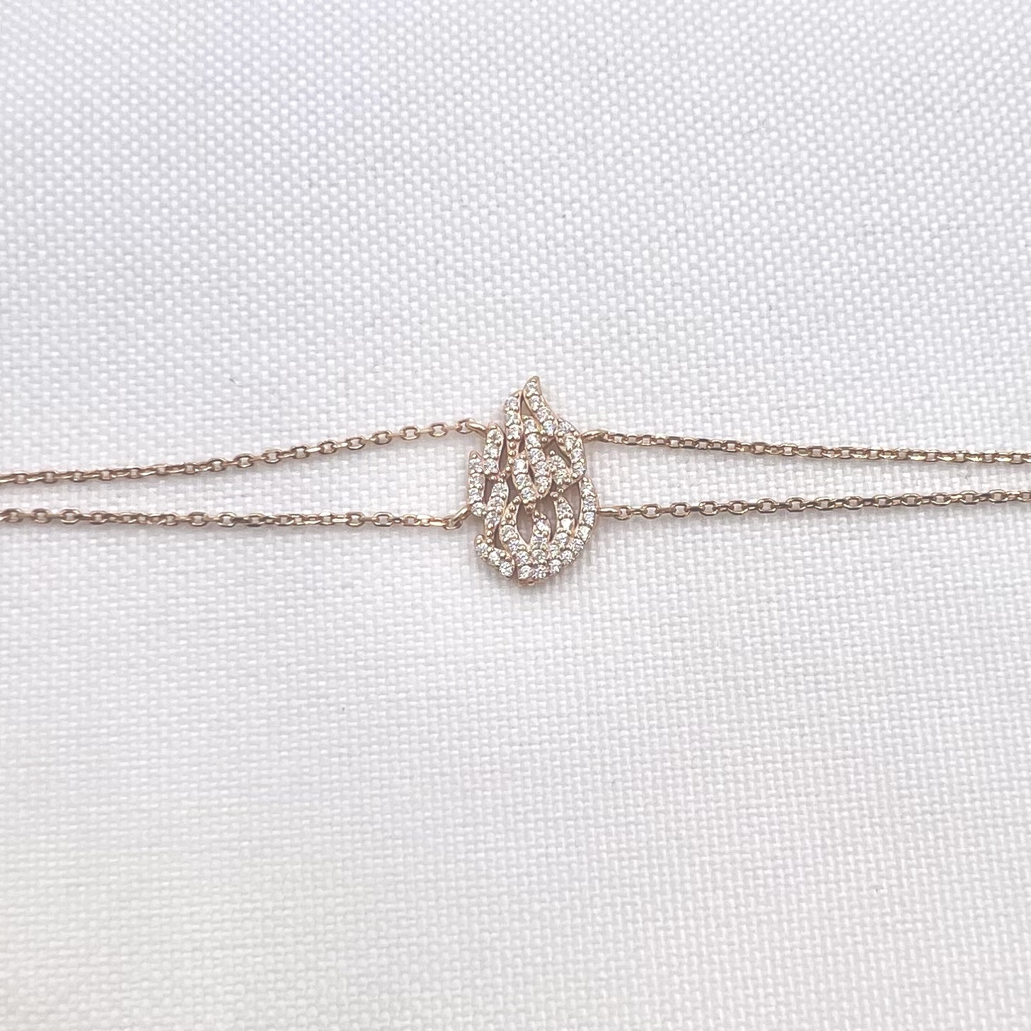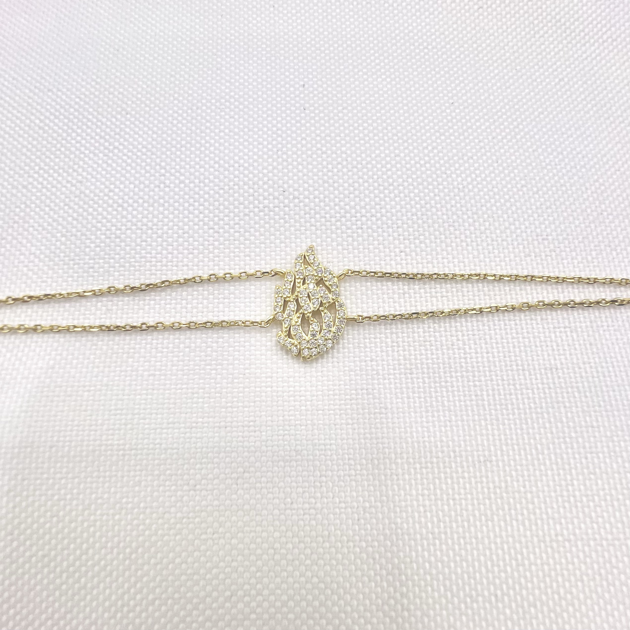 צמיד כפול מתחבר לצמיד אחד עם תליון האש שלי משובץ אבני זרקון מכסף אמיתי 925