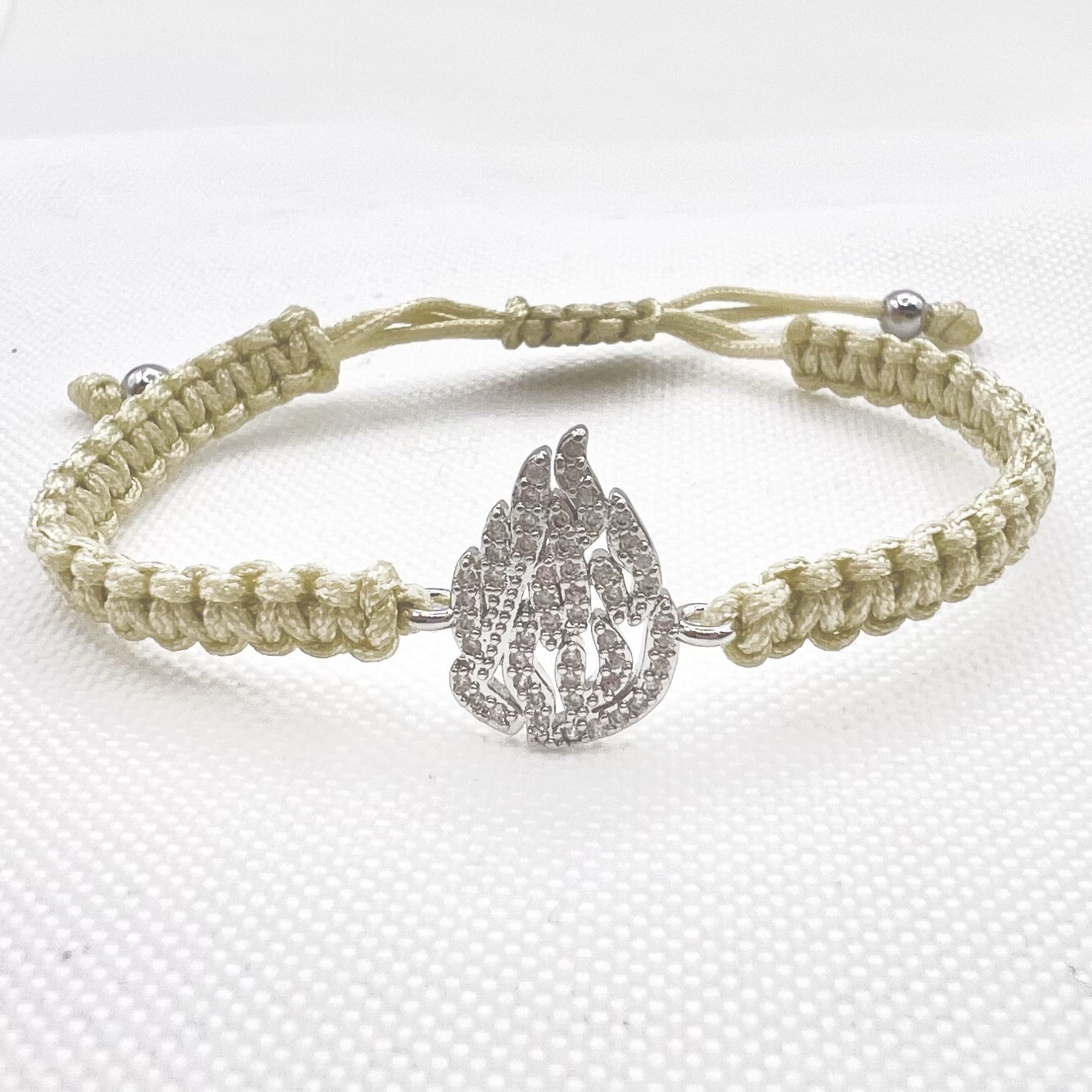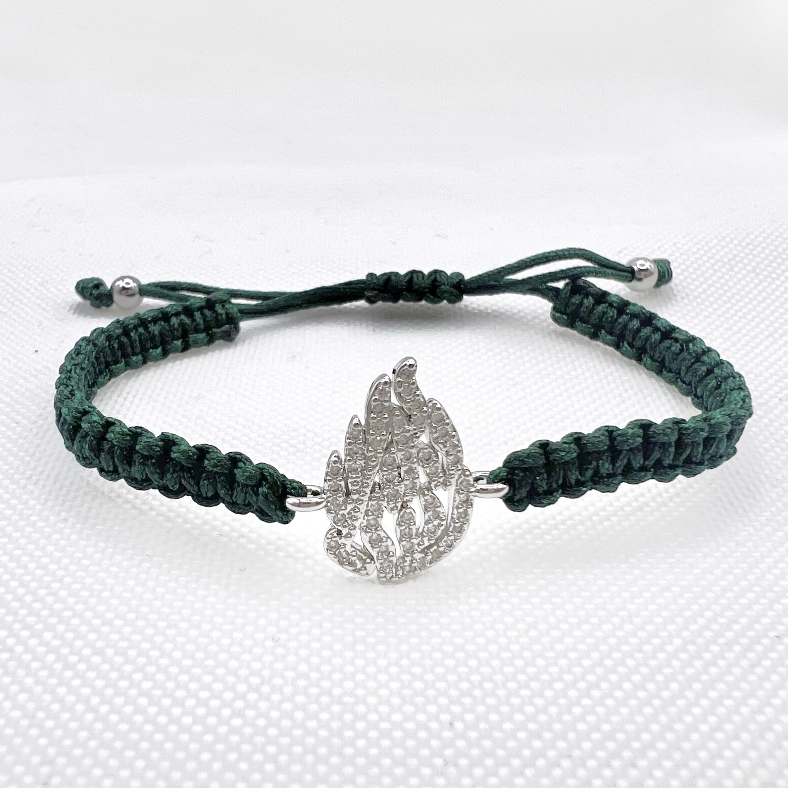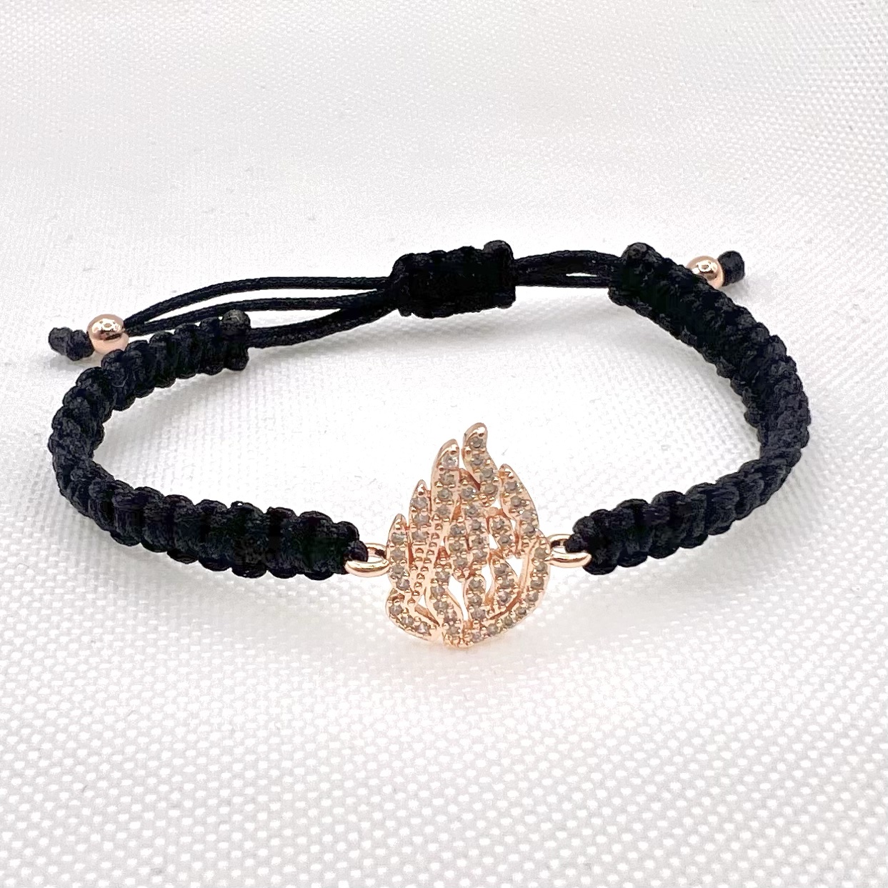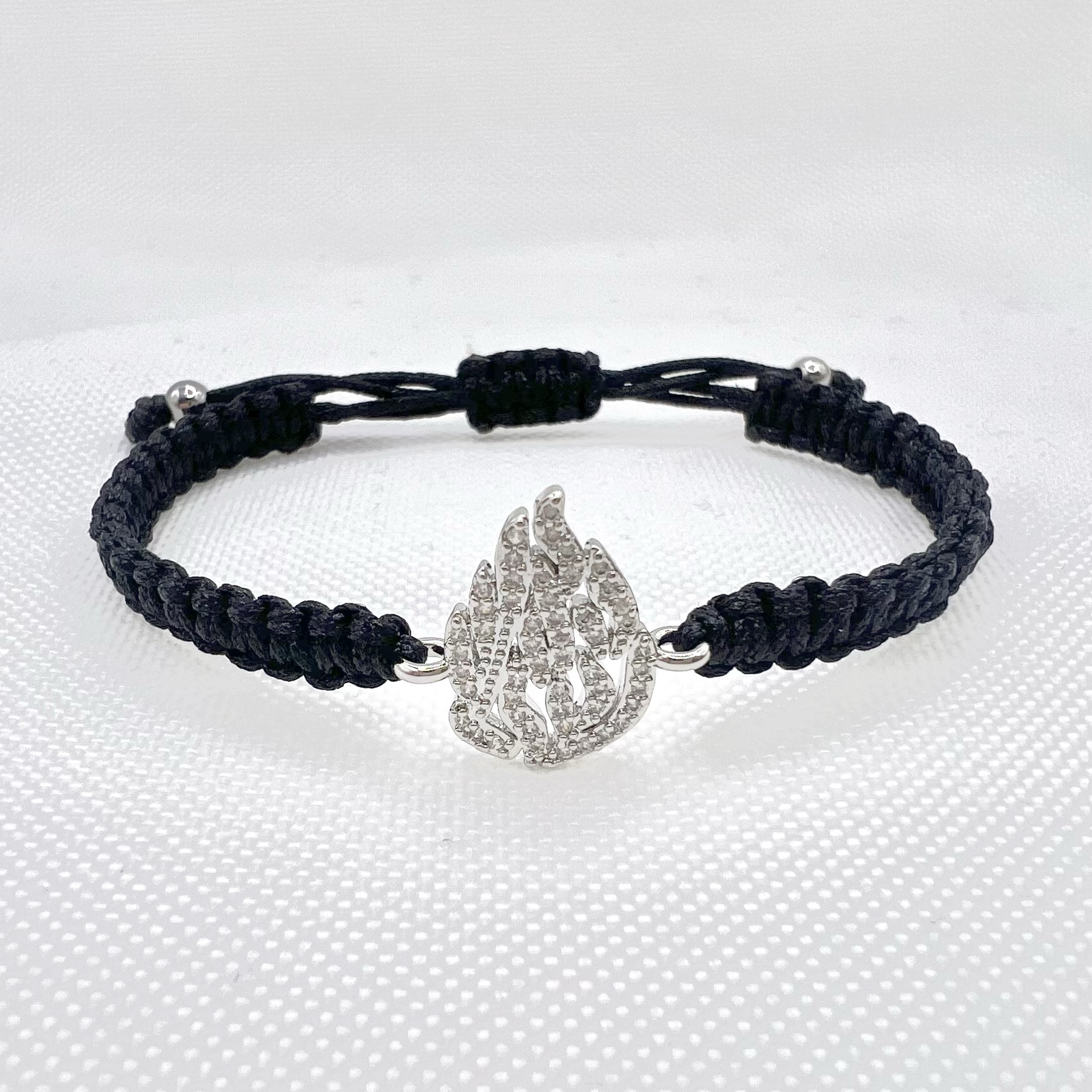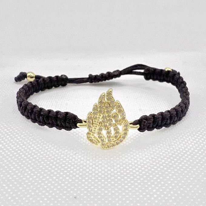 צמיד סריגה שמותאם לכל מידת יד עם תליון האש שלי משובץ אבני זרקון מרודיום איכותי