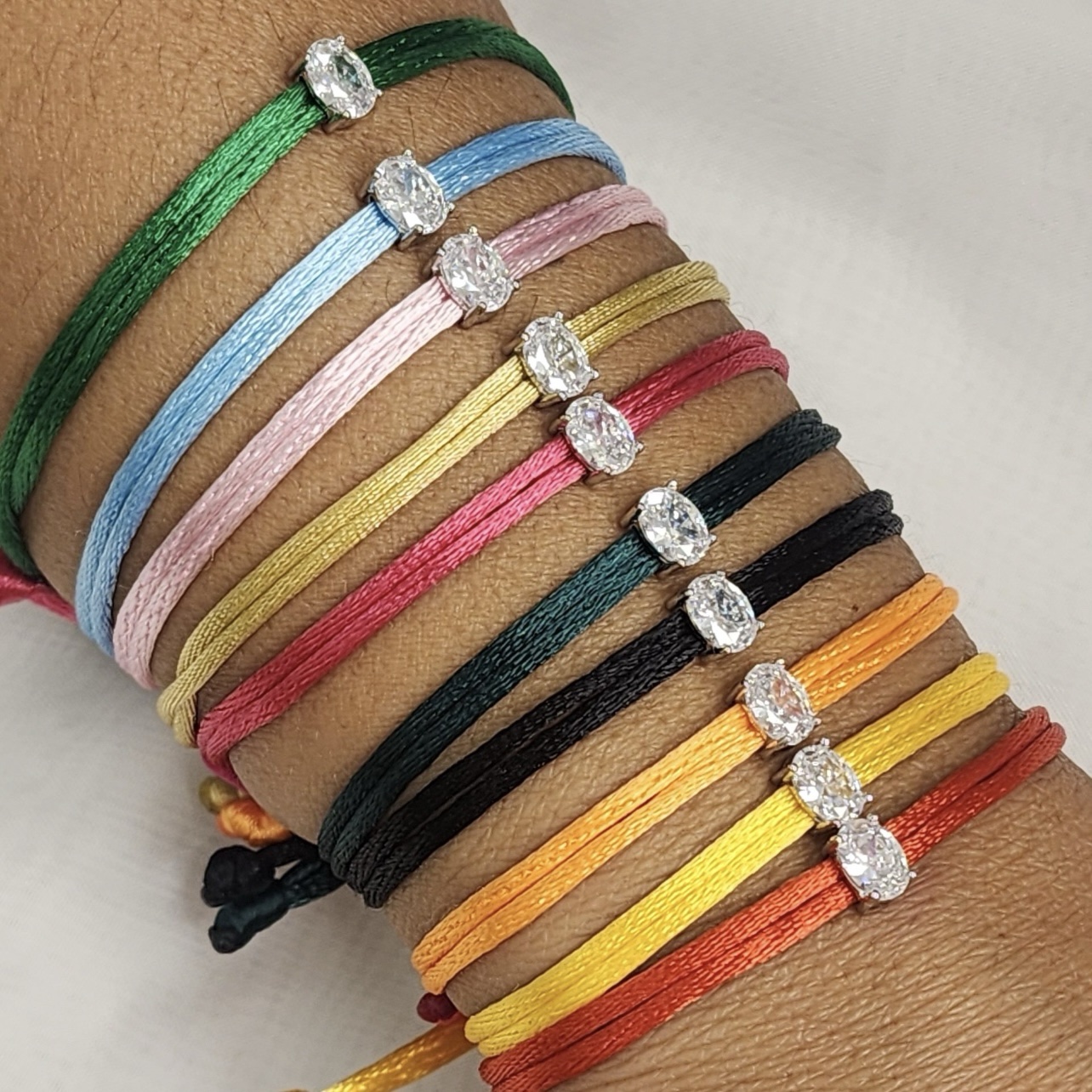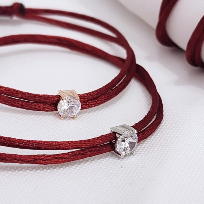צמיד משי מקרמה עם תליון יהלום שמגיע בשתי צורות מכסף אמיתי 925 במגון צבעים מושלמים
