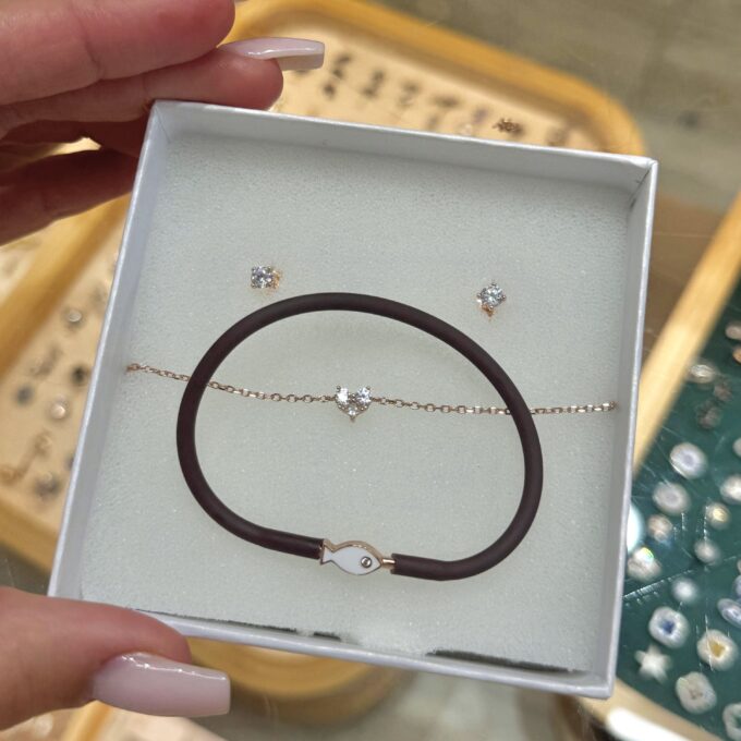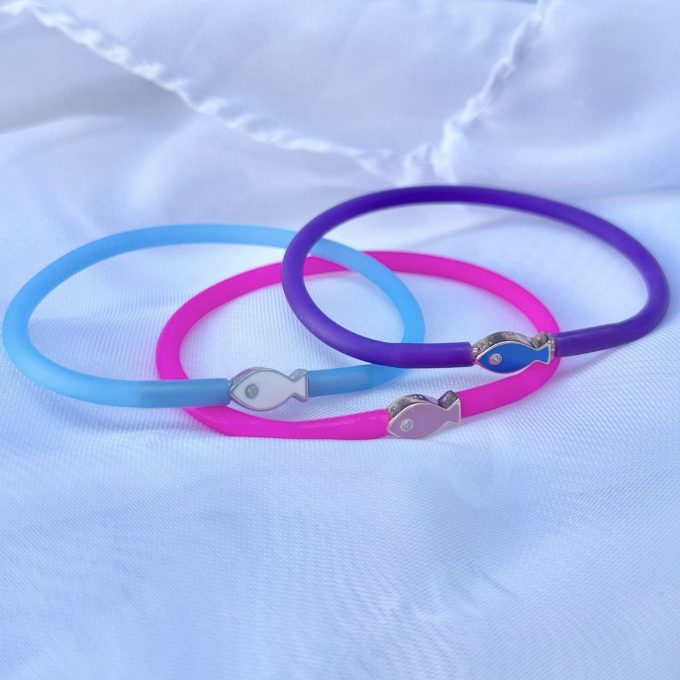 צמיד סיליקון מגומי חזק ואיכותי עם אלמנט דג מכסף אמיתי 925