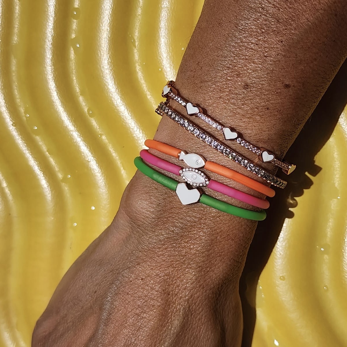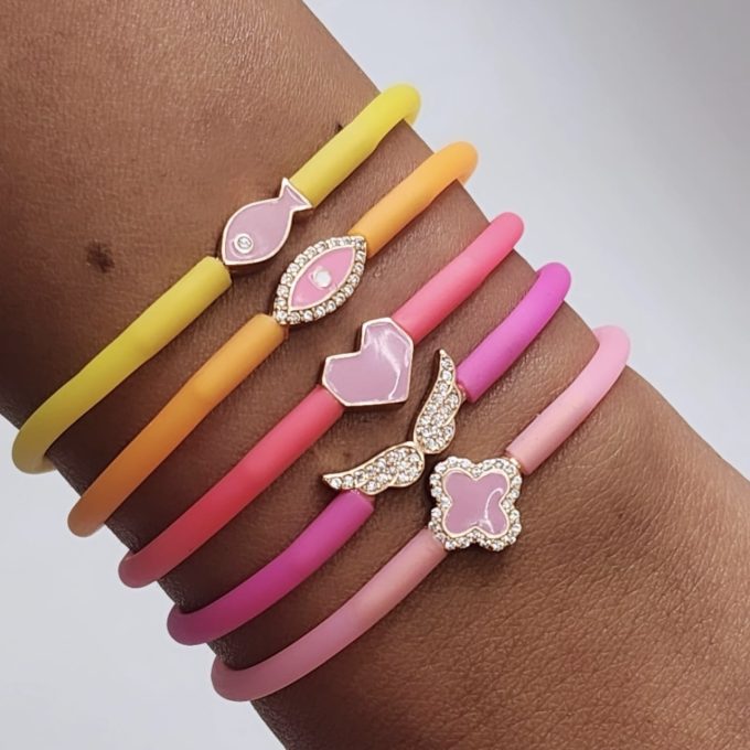צמיד סיליקון מגומי חזק ואיכותי עם אלמנט לב קרמי מכסף אמיתי 925