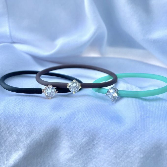צמיד סיליקון מגומי חזק ואיכותי עם אלמנט אבן עגולה מכסף אמיתי 925