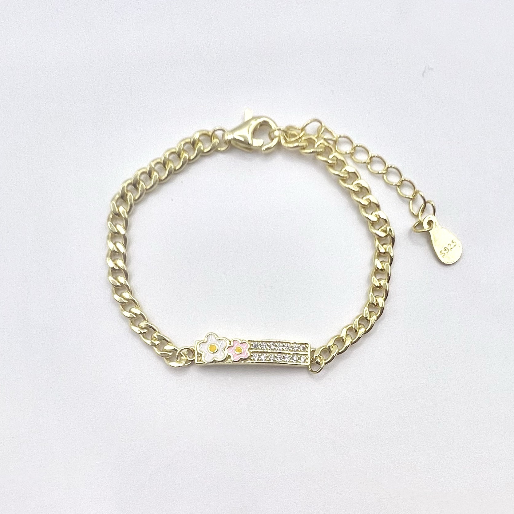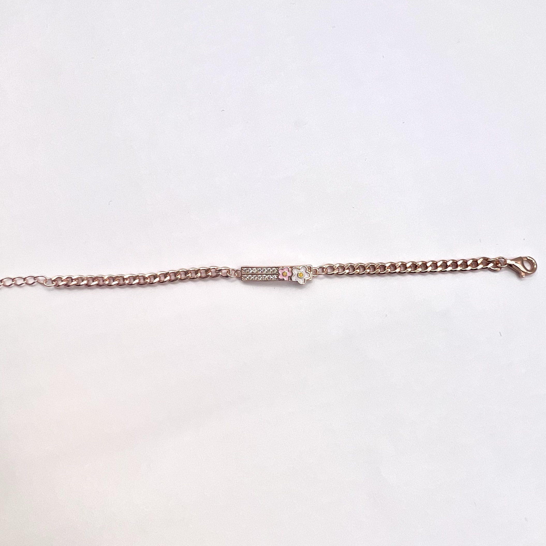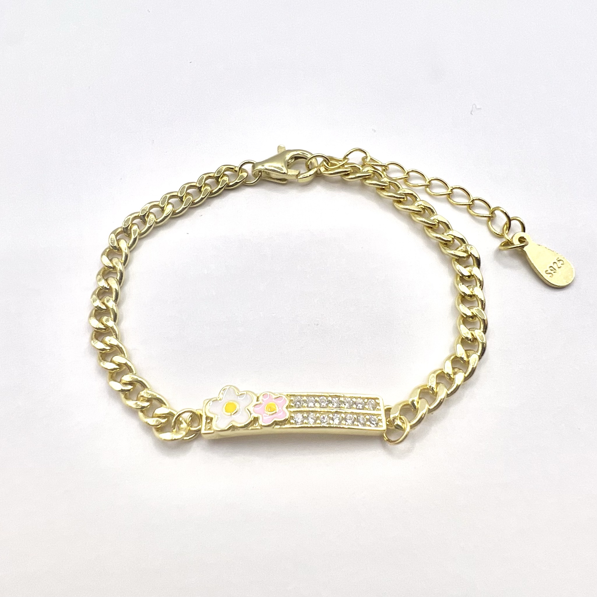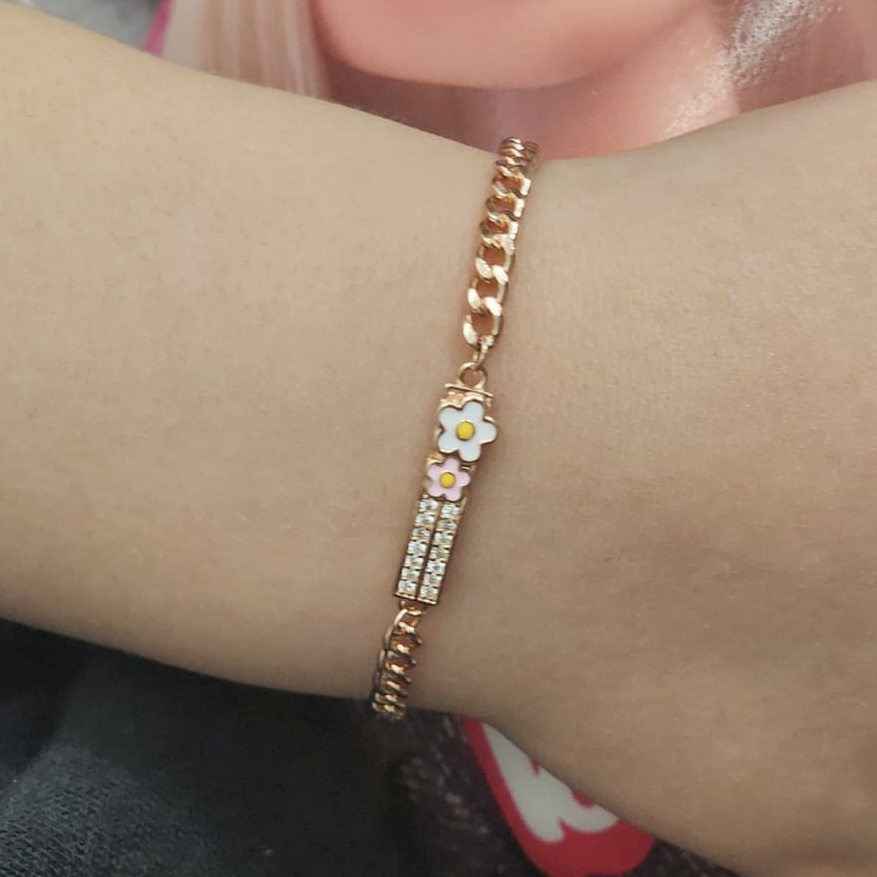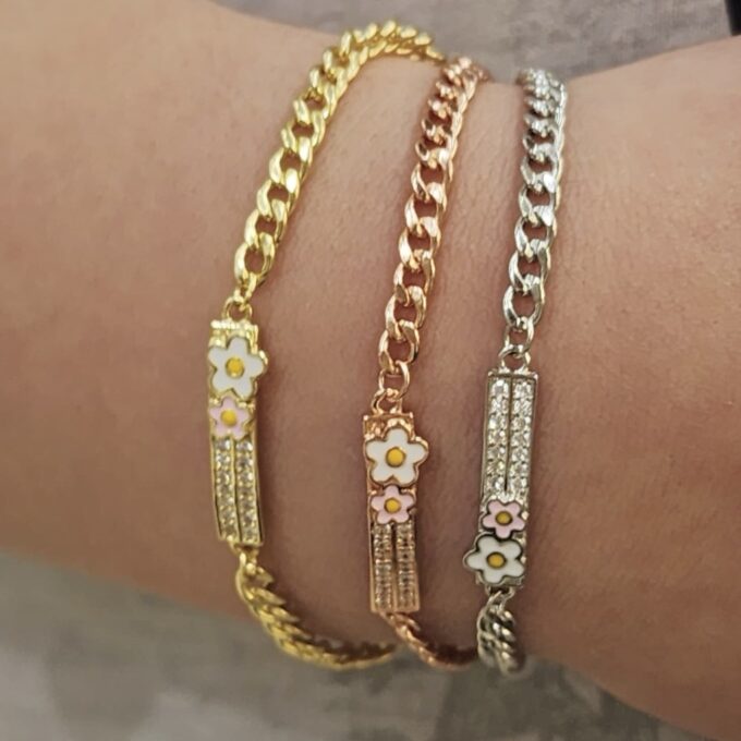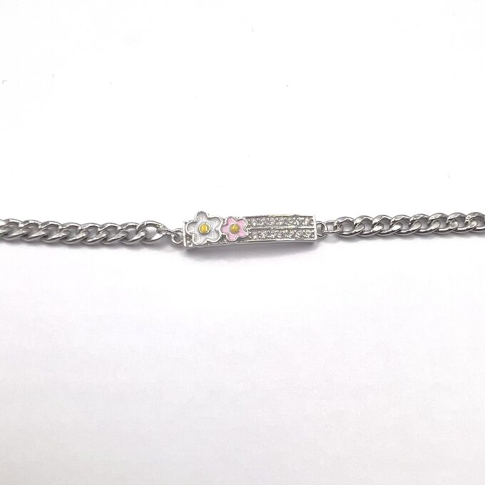 צמיד גורמט עם פלטה משובץ אבני זרקון ופרח מכסף אמיתי 925