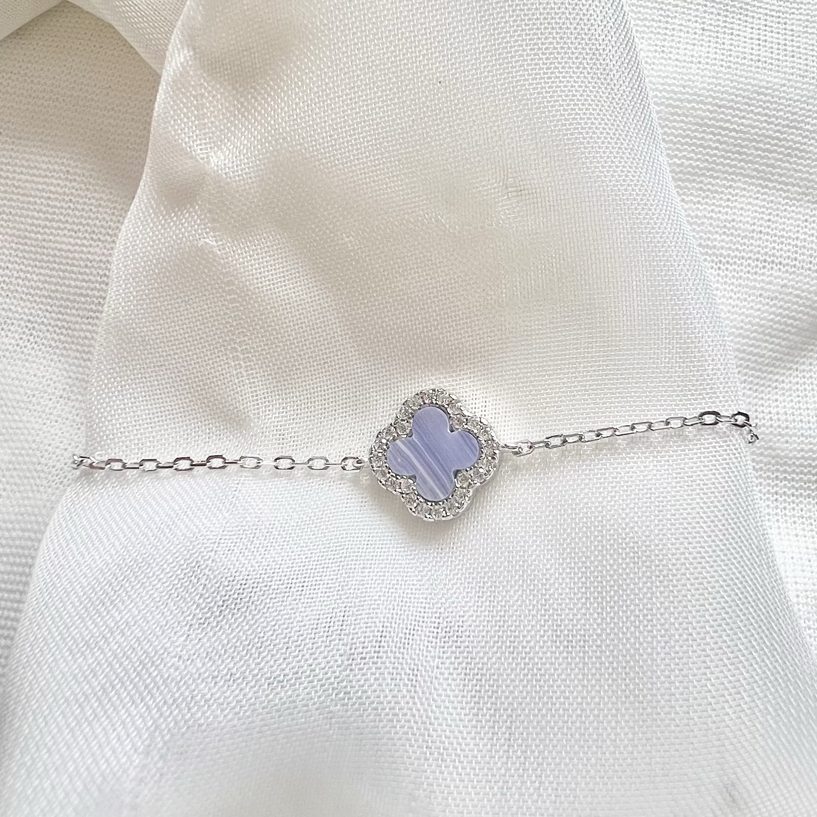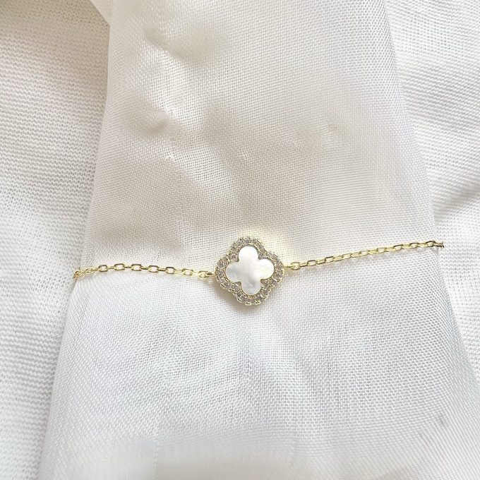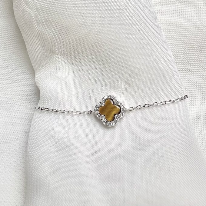 צמיד עם תליון פרח במגוון צבעים משובץ מסביב מכסף אמיתי 925