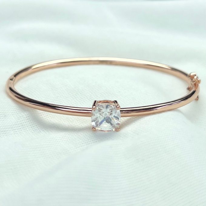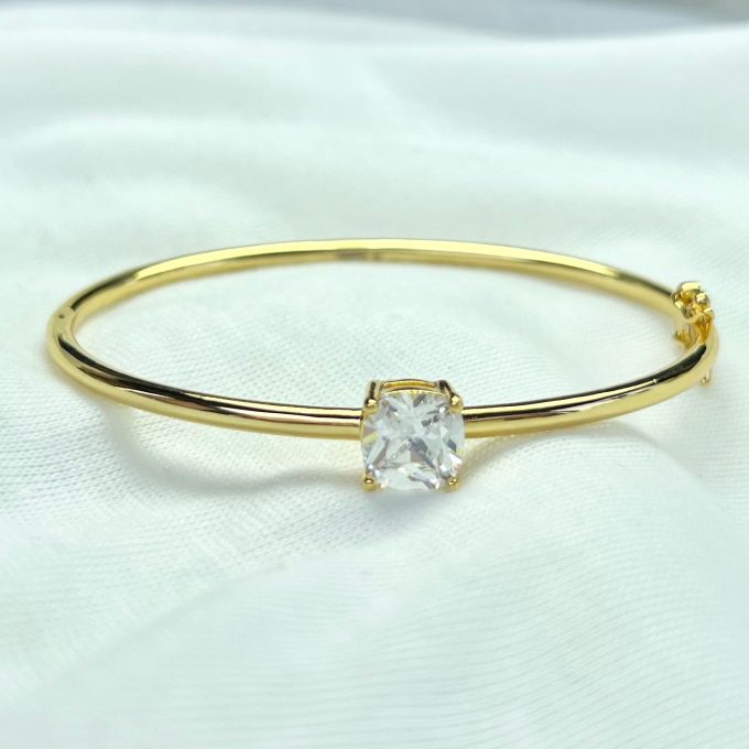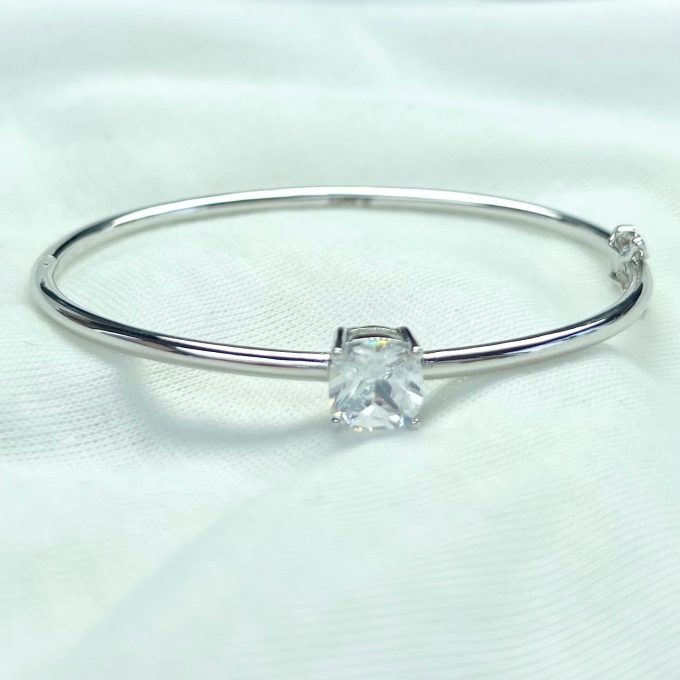 צמיד קשיח חלק עם אבן מרובעת במרכז מרודיום איכותי