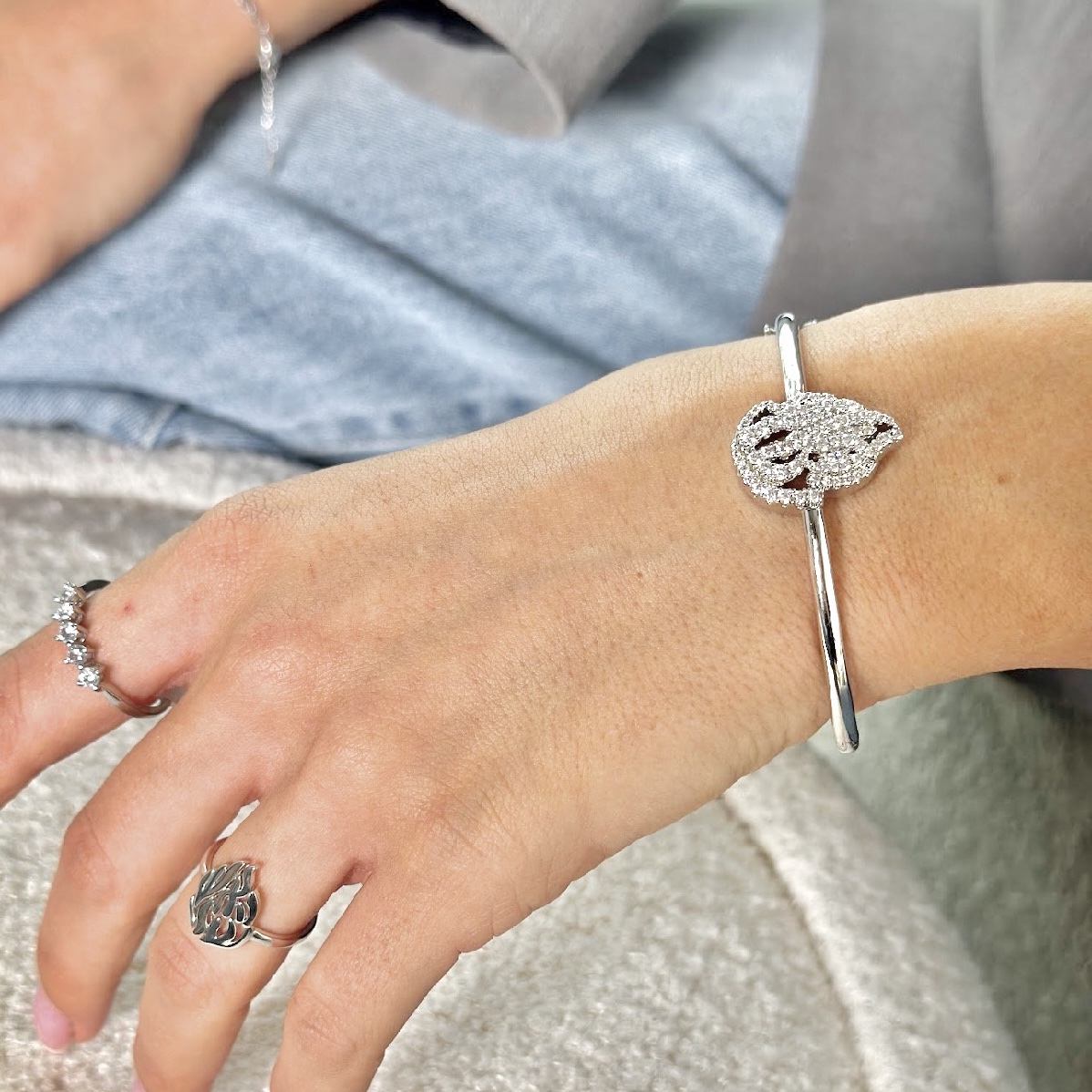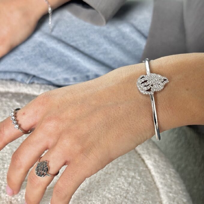 צמיד קשיח עם עיצוב ״האש שלי״ בהשראת רבי נחמן משובץ אבני זרקון