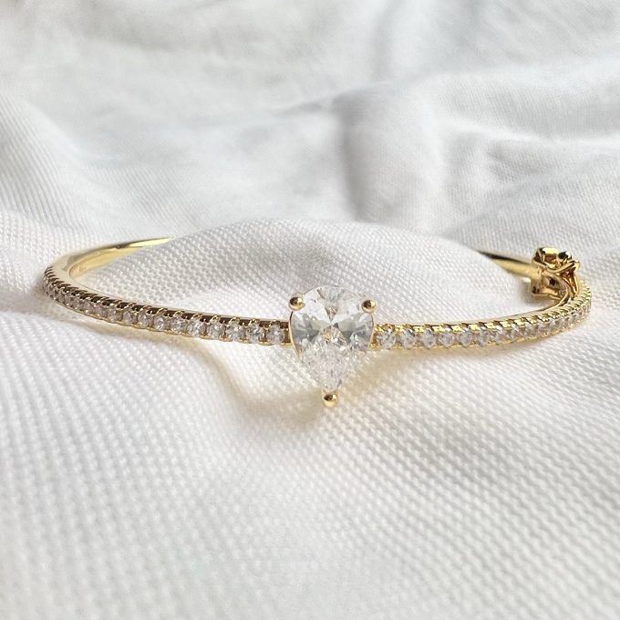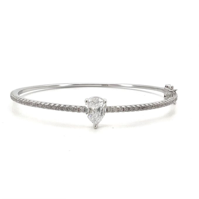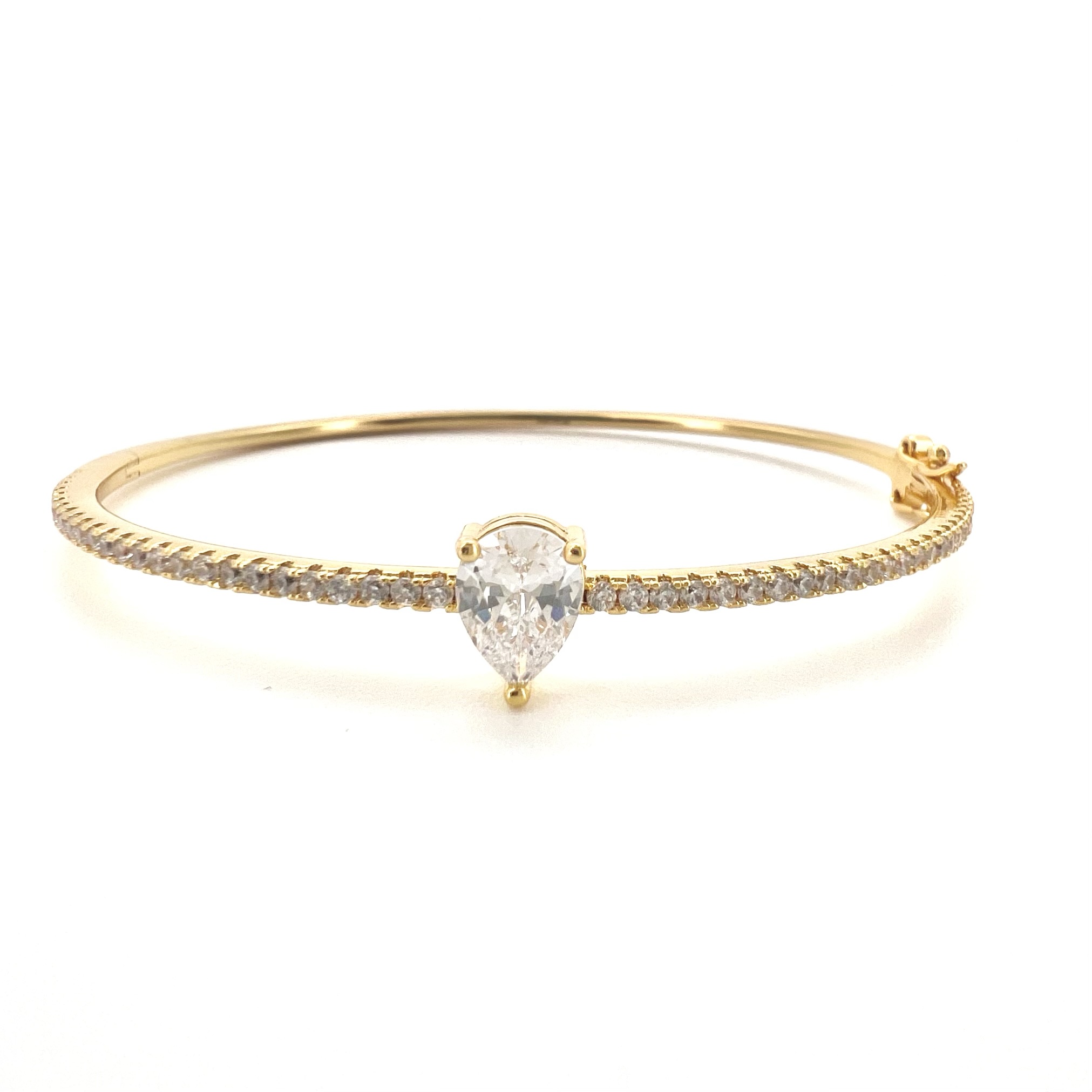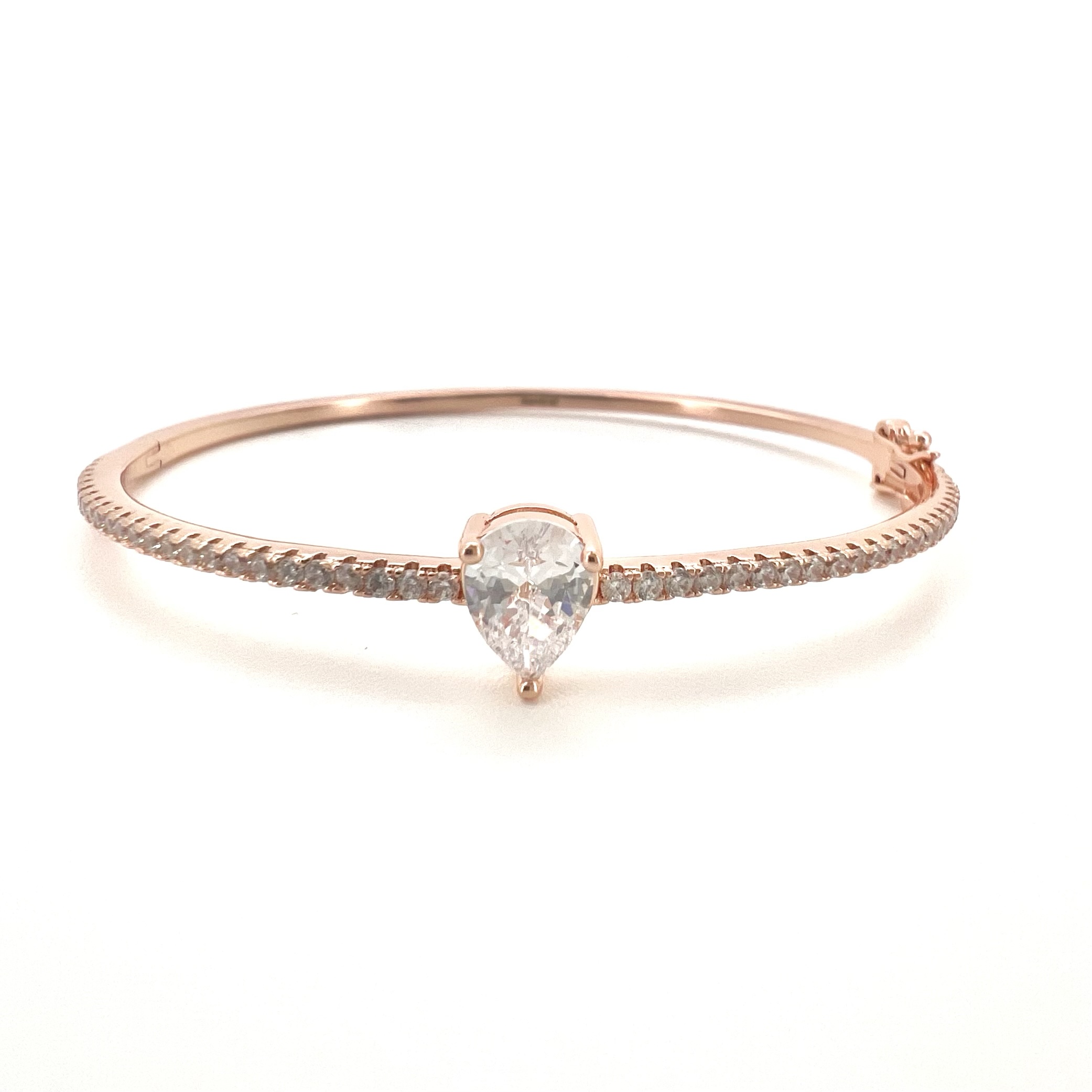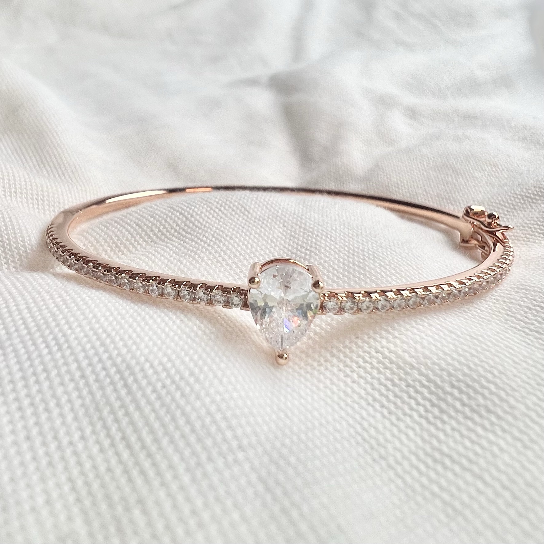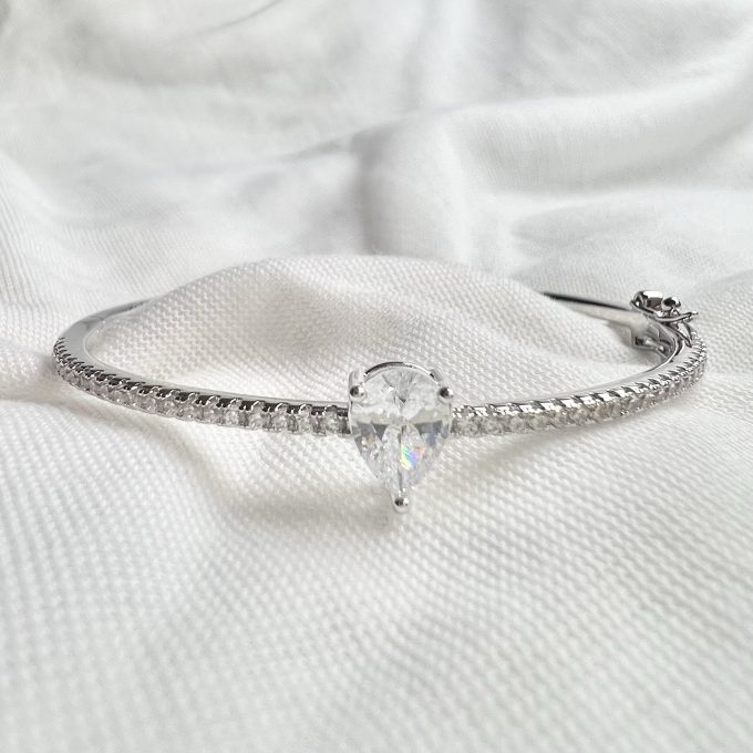 צמיד קשיח משובץ אבני זרקון עם אבן זרקון בצורת טיפה מרודיום איכותי