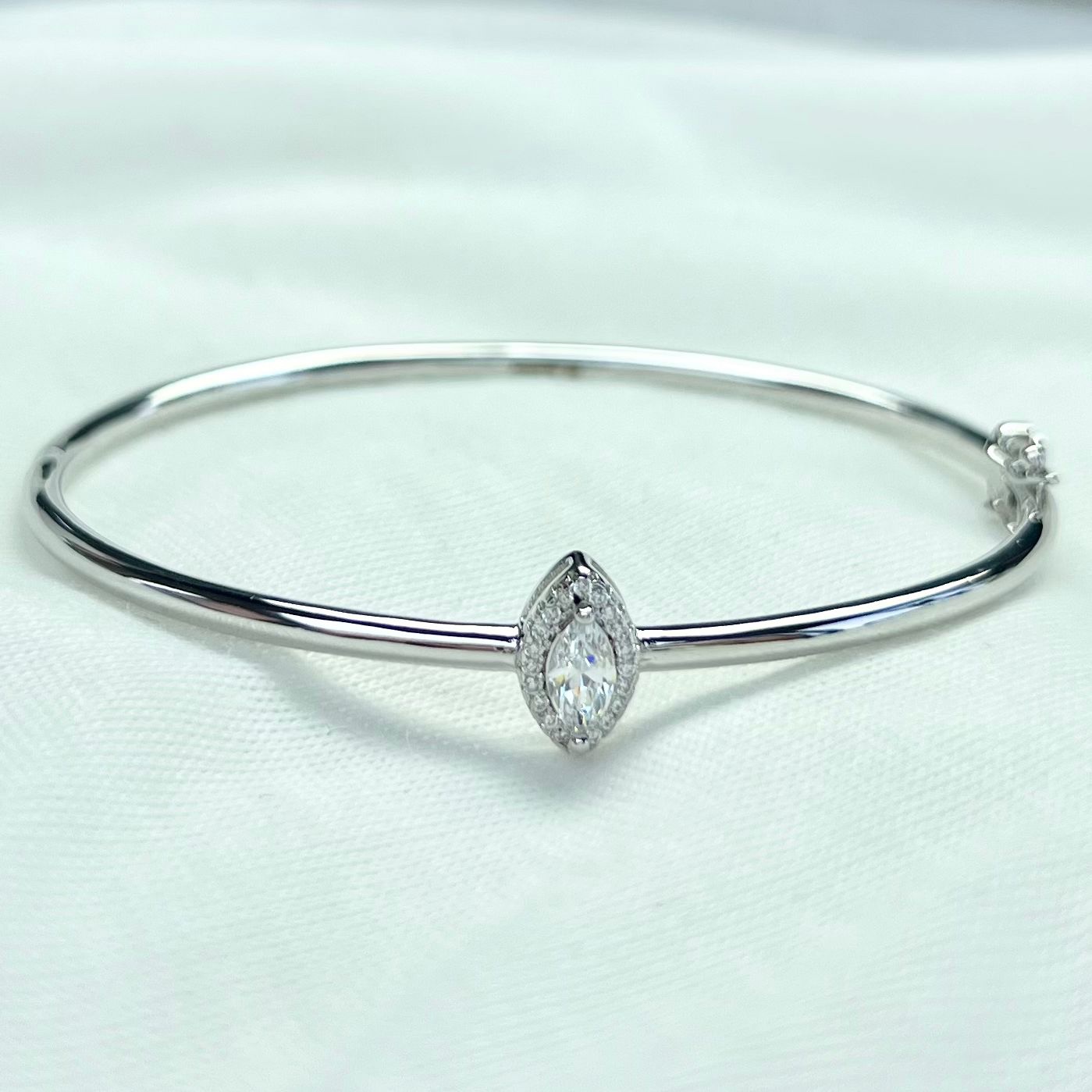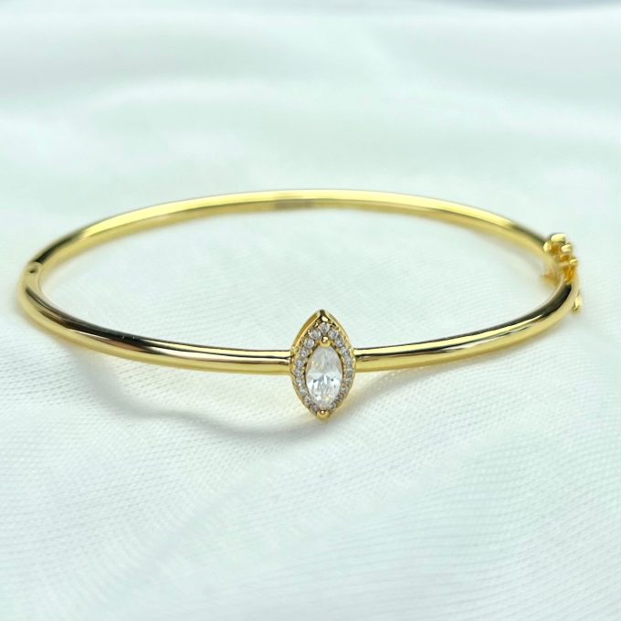 צמיד קשיח חלק עם אבן טיפה משובצת מסביב מרודיום איכותי