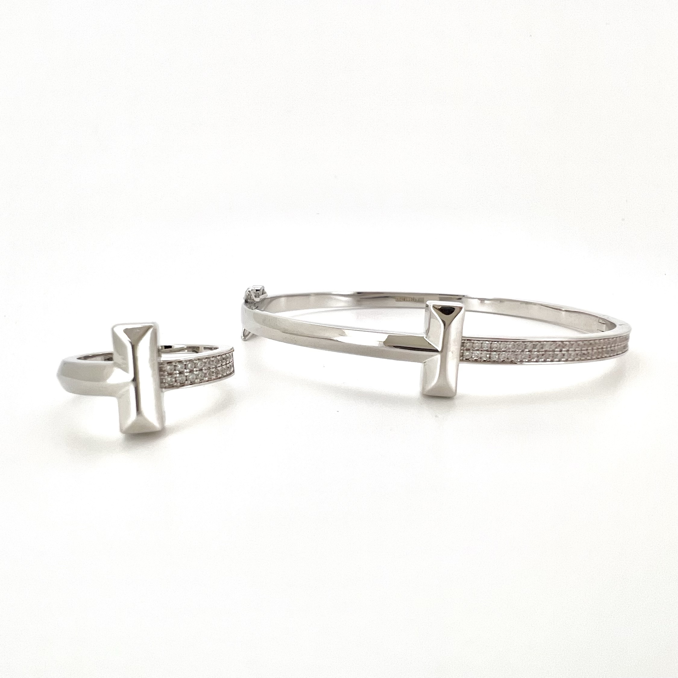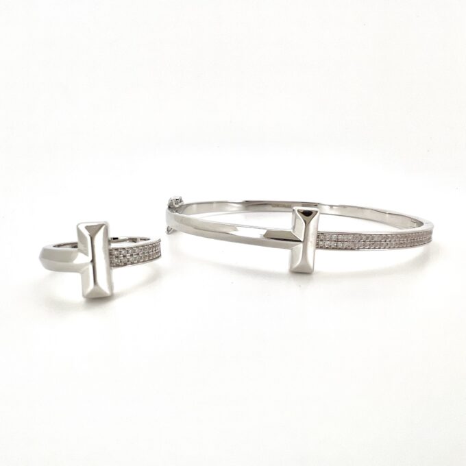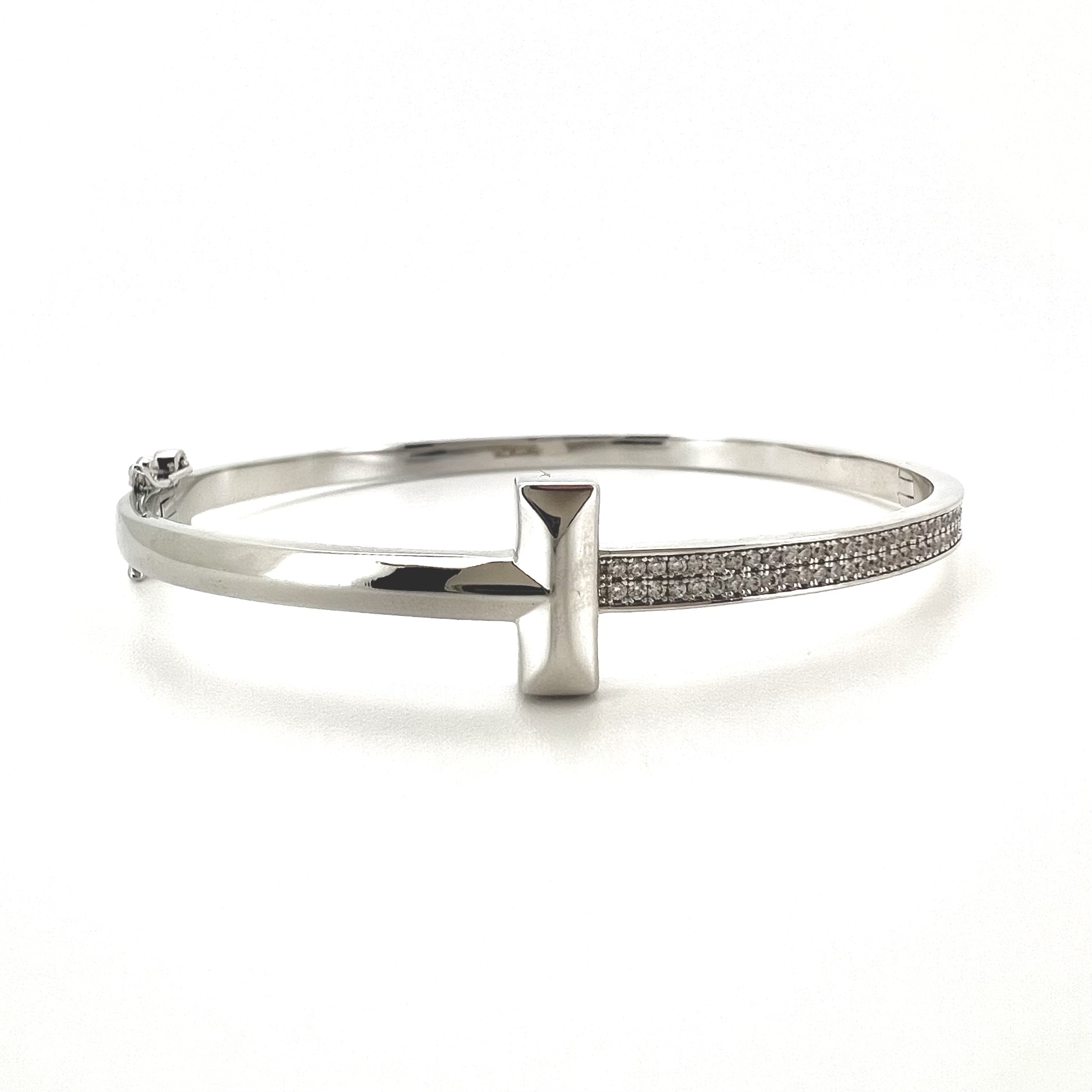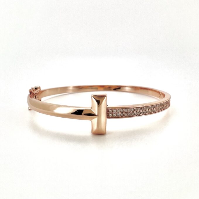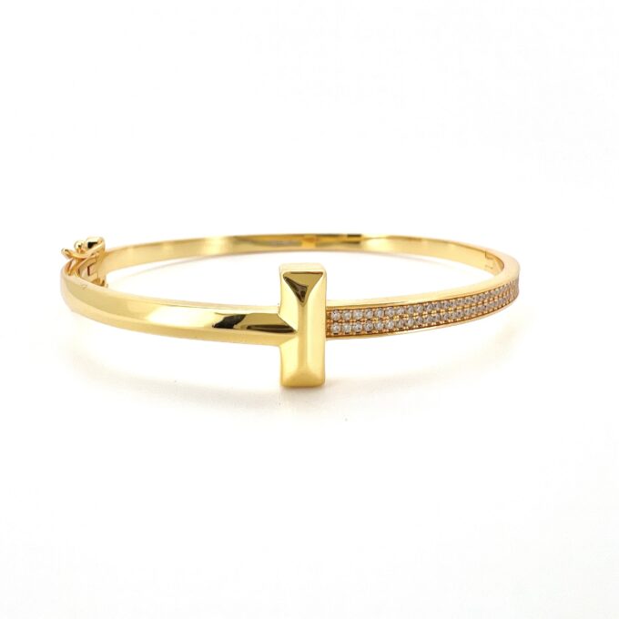 צמיד קשיח חצי משובץ אבני זרקון חצי חלק עם פלוס מרודיום איכותי