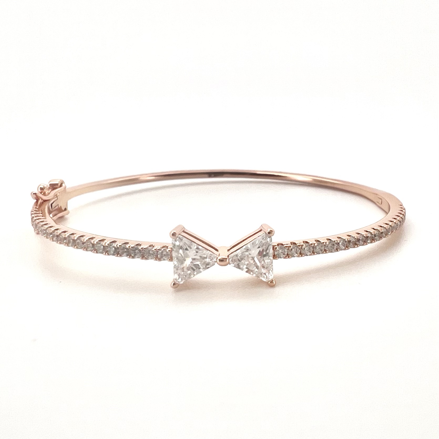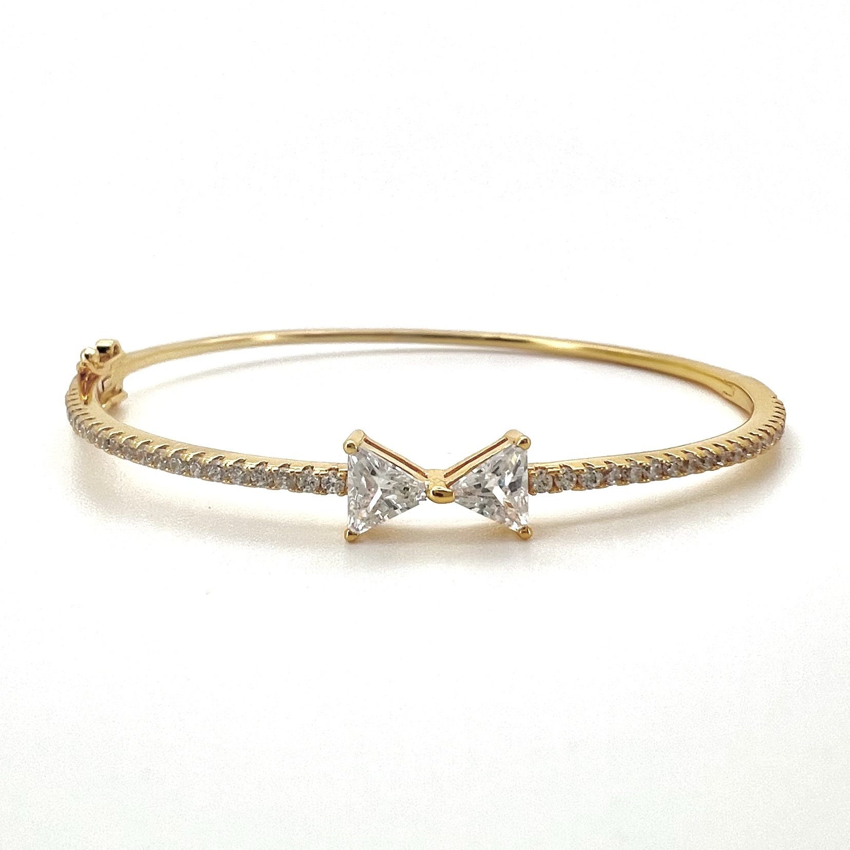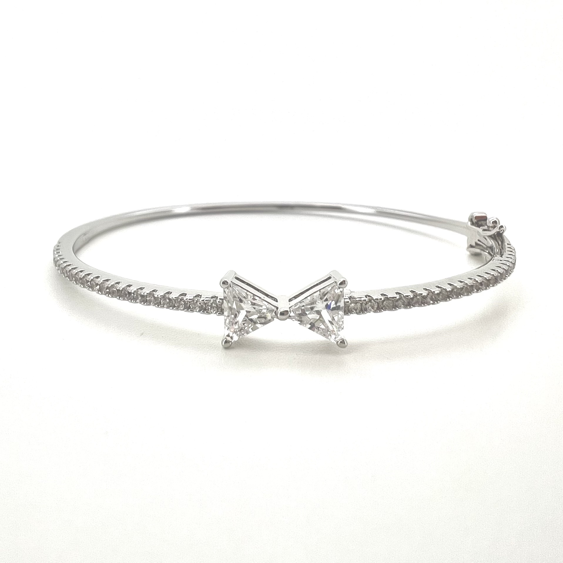צמיד קשיח משובץ אבני זרקון ושתי אבני זרקון בצורת פפיון במרכזה מרודיום איכותי