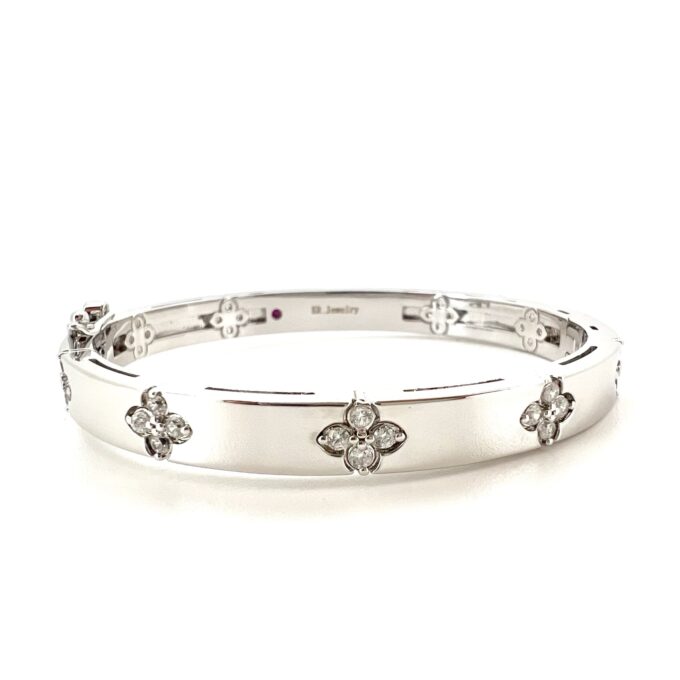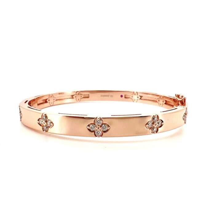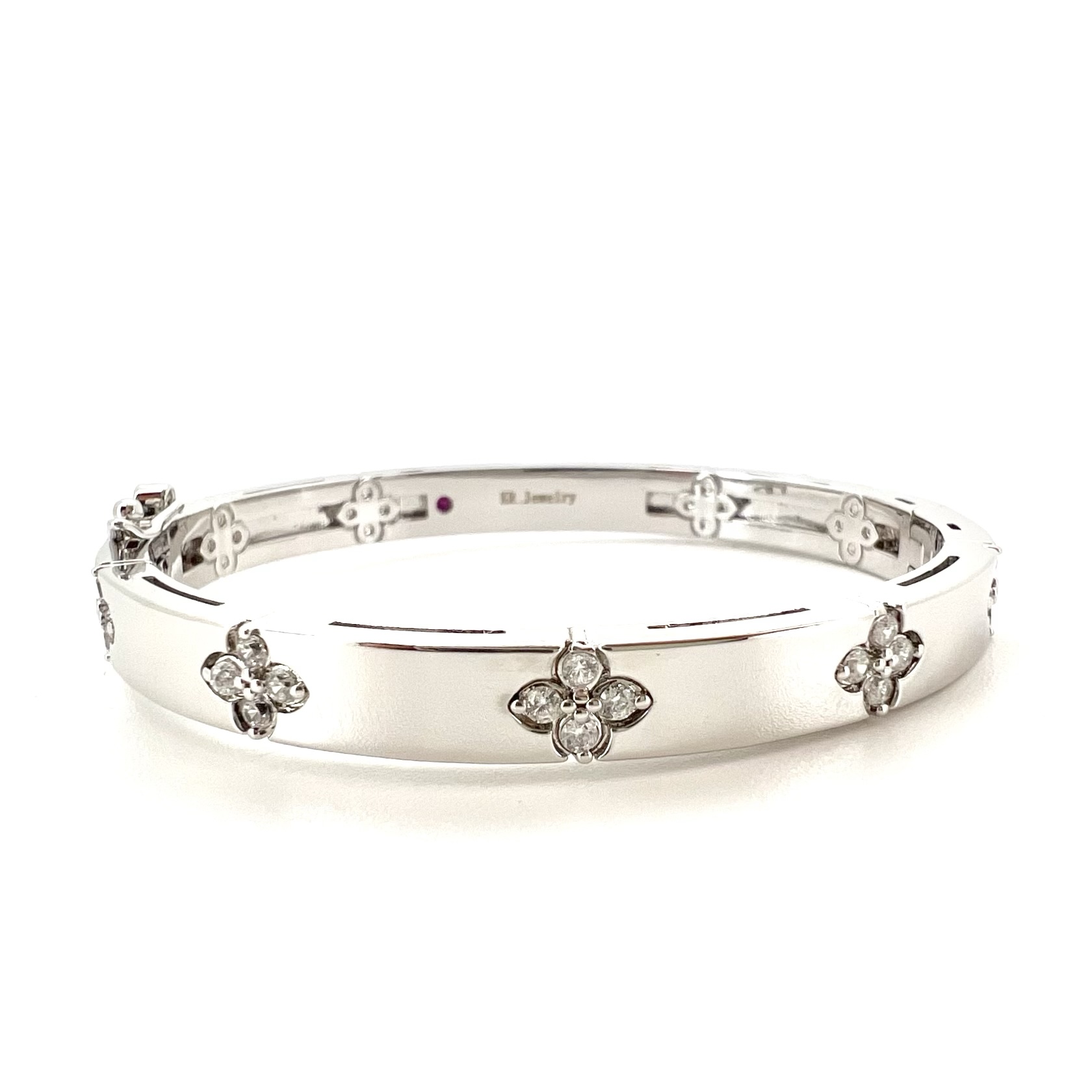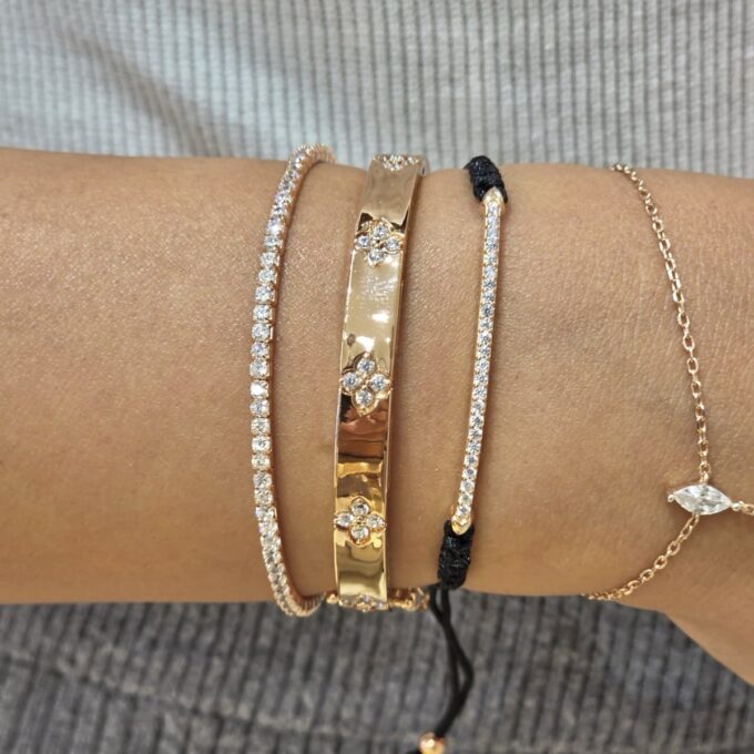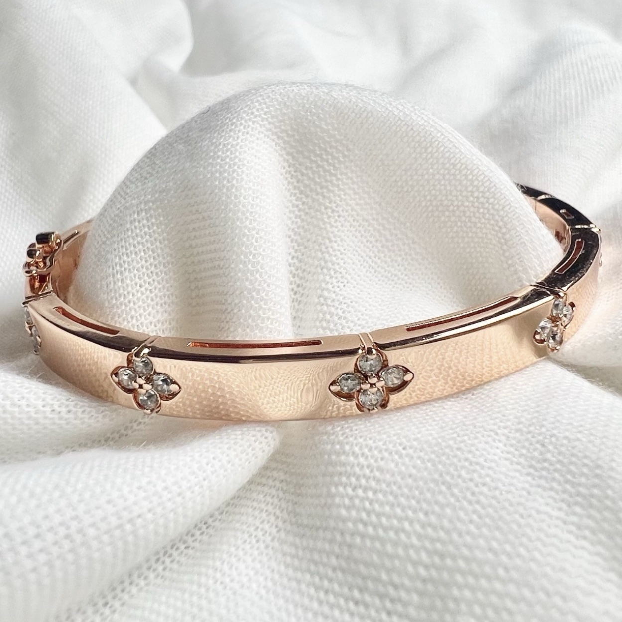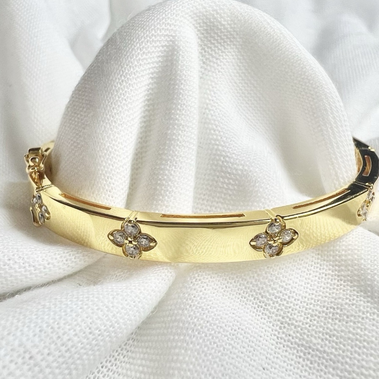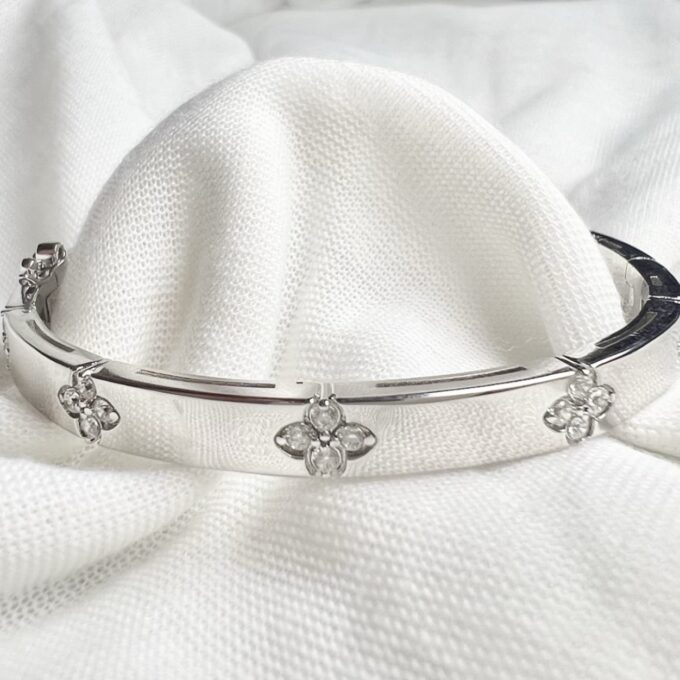צמיד קשיח חלק עם שיבוצי אבני זרקון בצורת פרחים מרודיום איכותי
