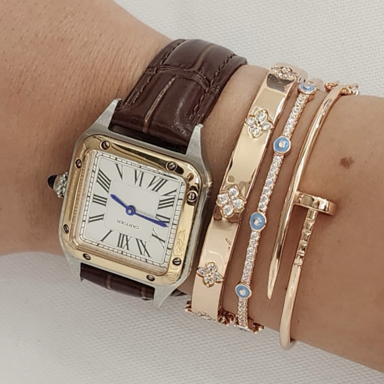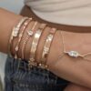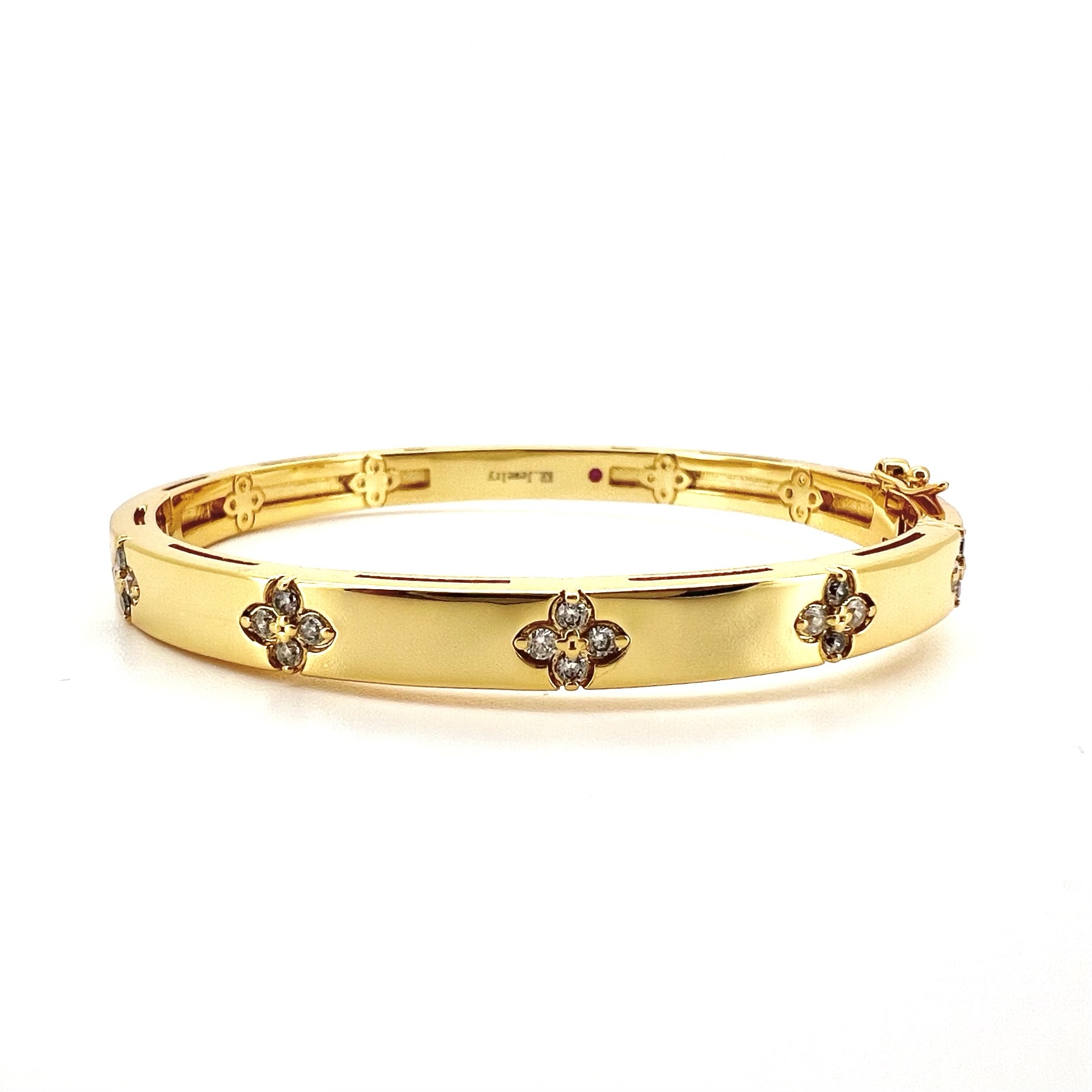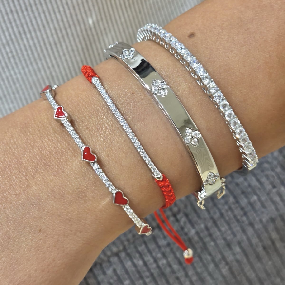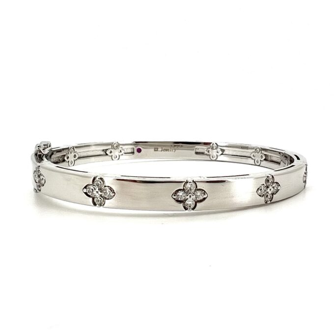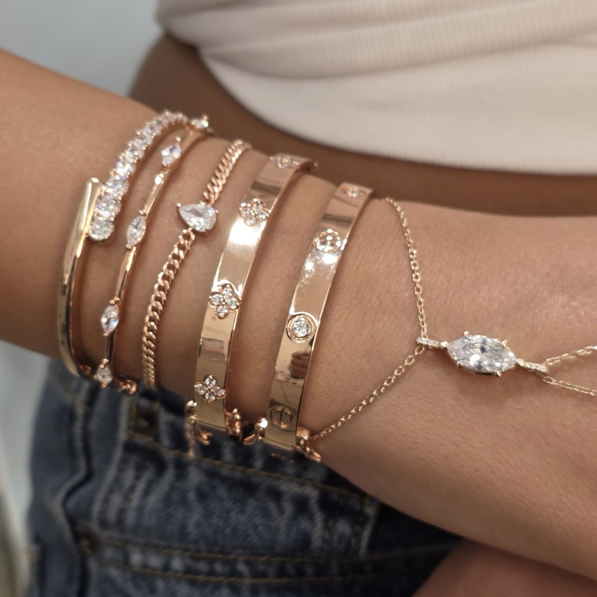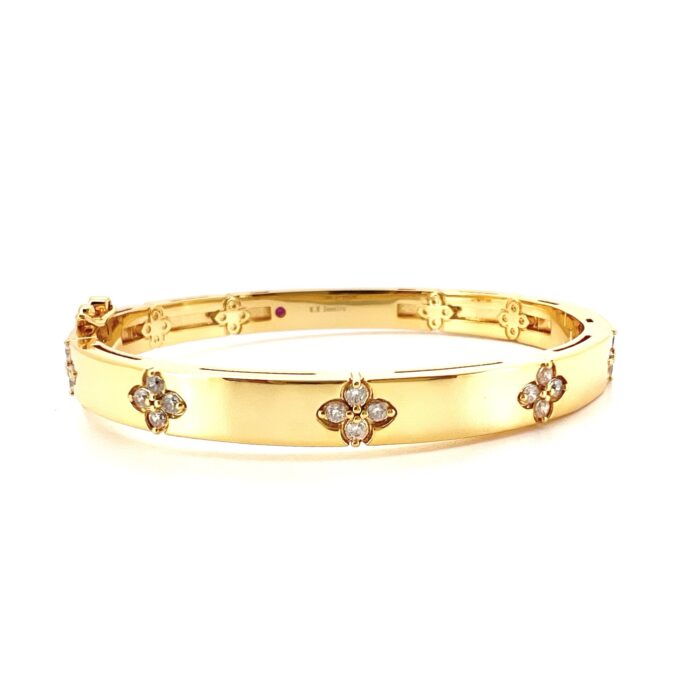 צמיד קשיח חלק עם שיבוצי אבני זרקון בצורת פרחים מרודיום איכותי