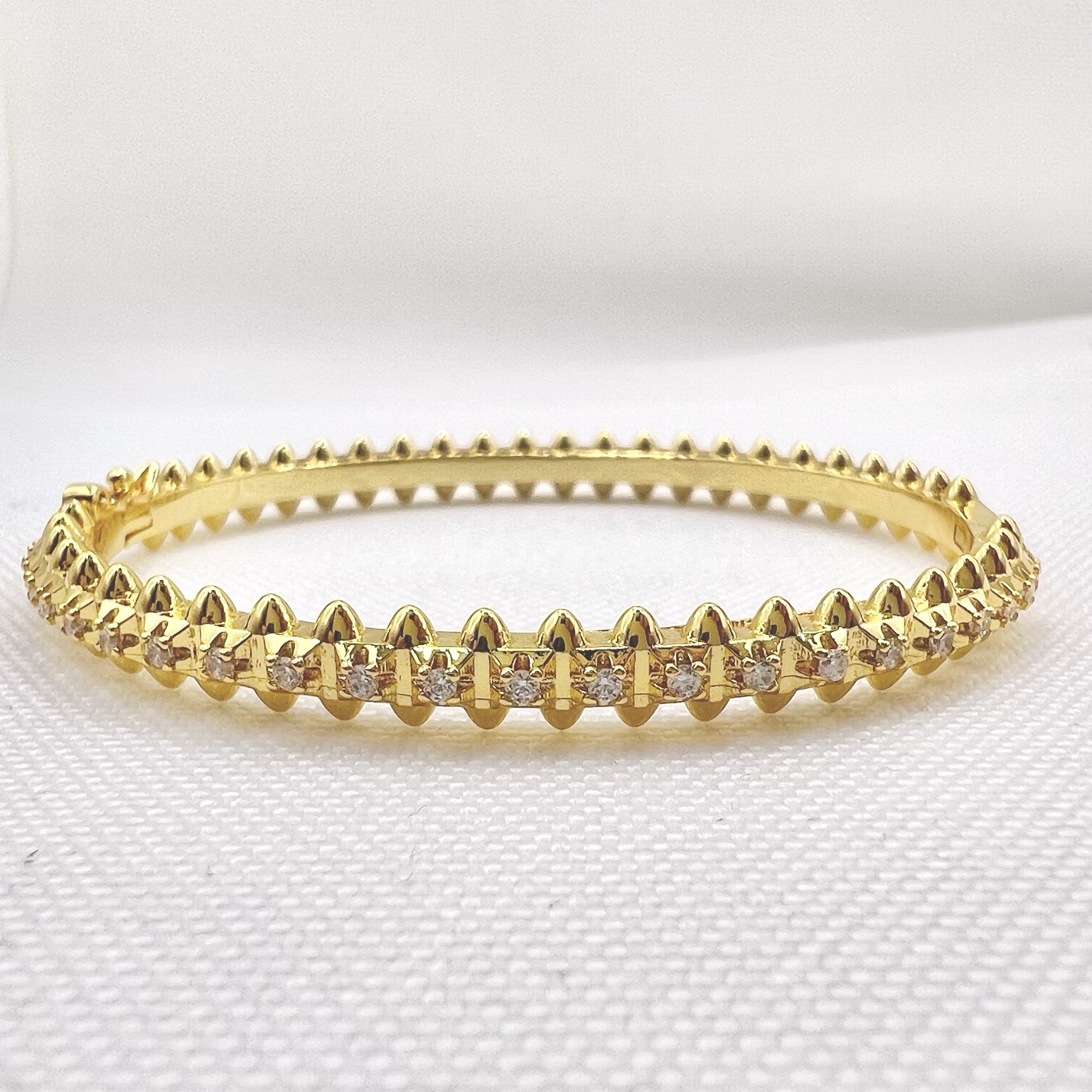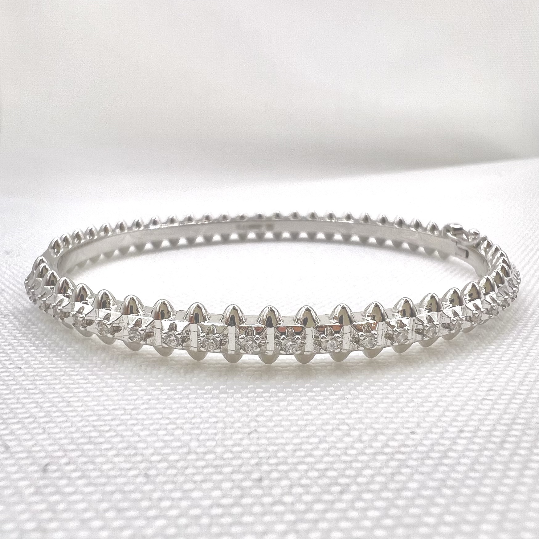 צמיד קשיח משובץ אבני זרקון מכסף אמיתי 925