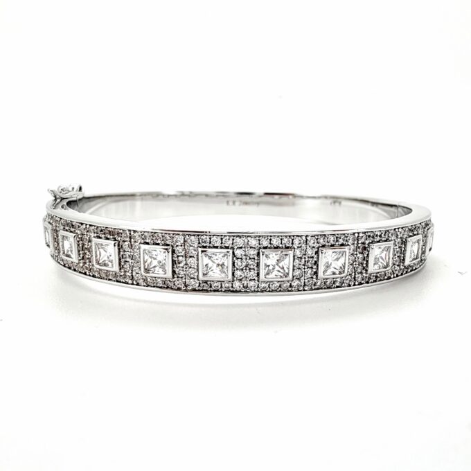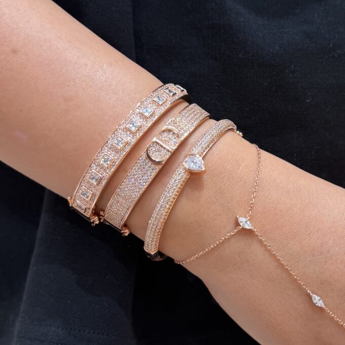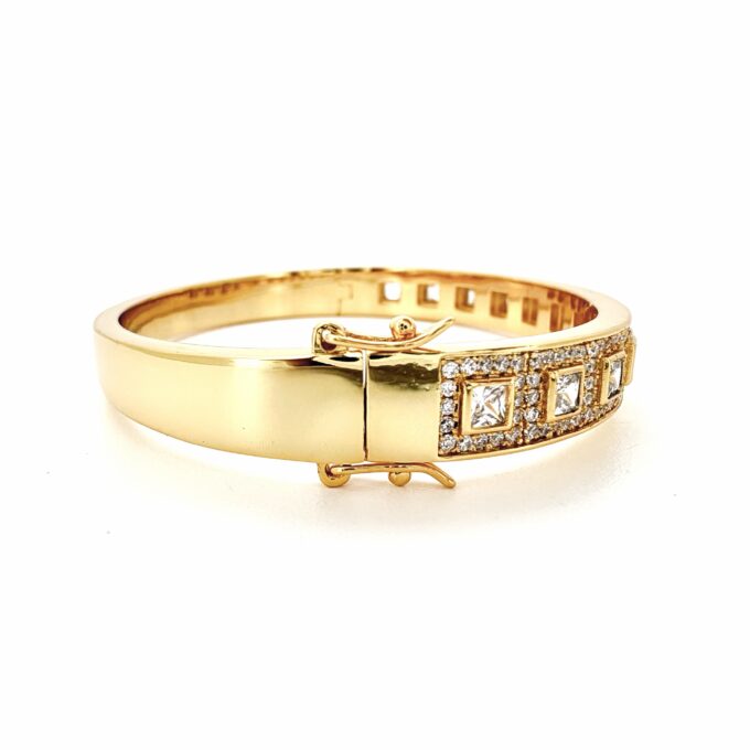 צמיד קשיח משובץ אבני זרקון לאורך חצי הצמיד