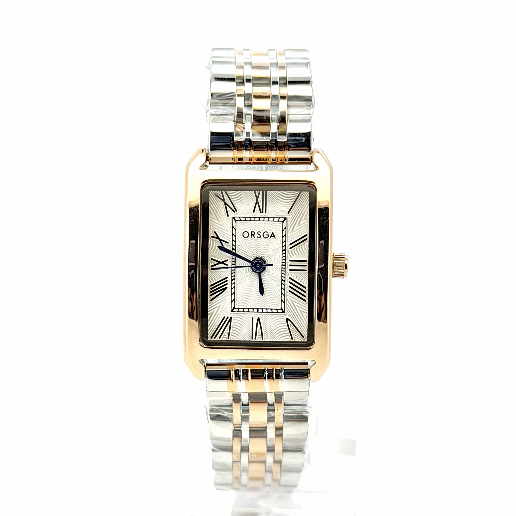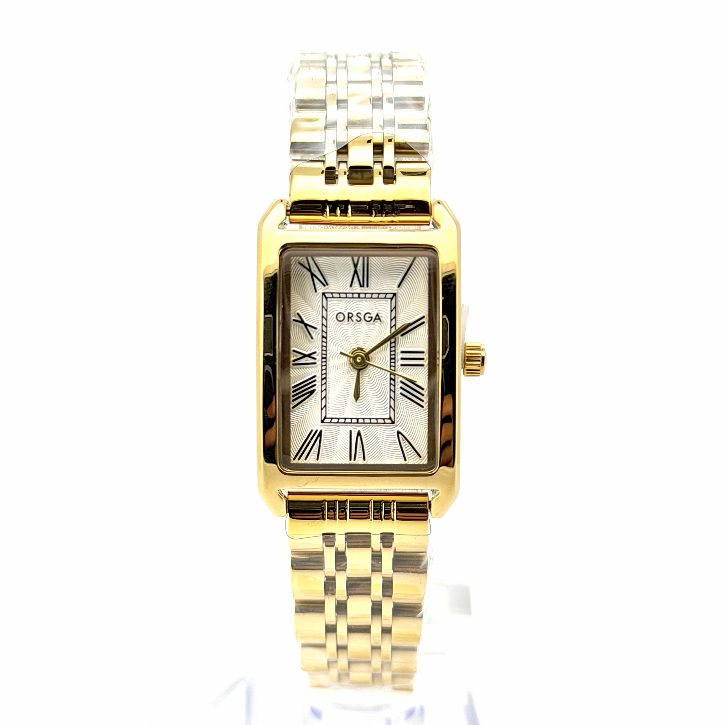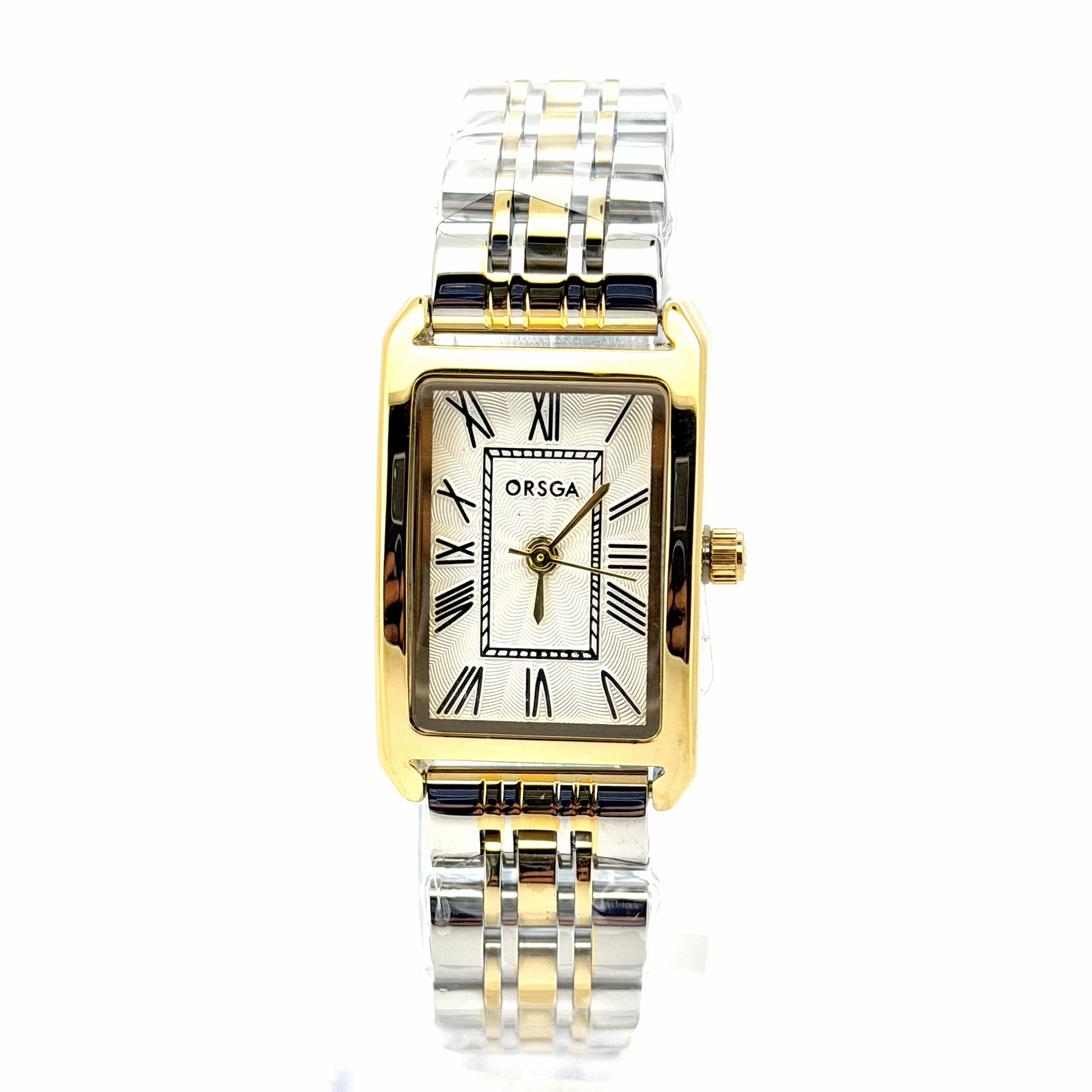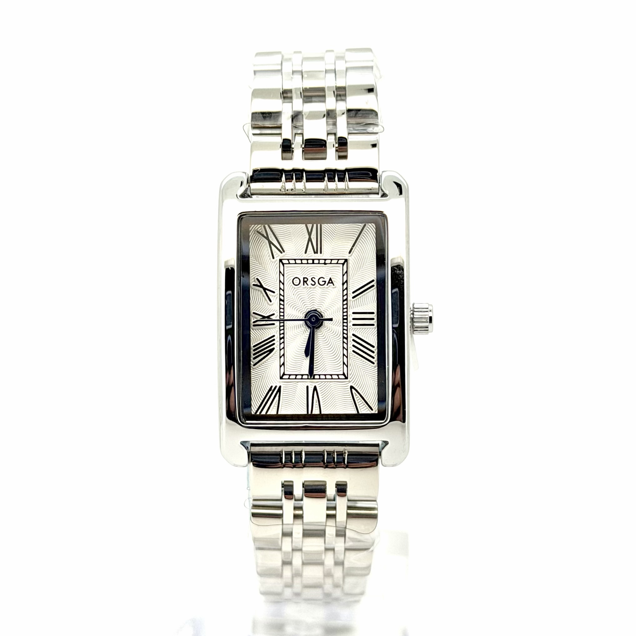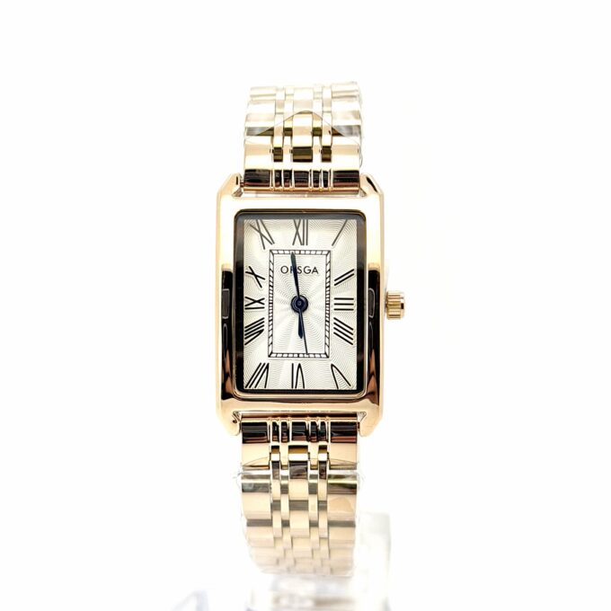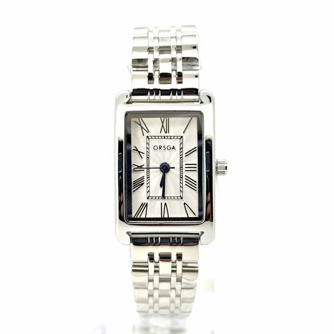 שעון אורסגה עם לוח מלבני שעובד על בטריה