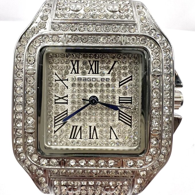 שעון משובץ כולו אבני זרקון עם אותיות יווניות