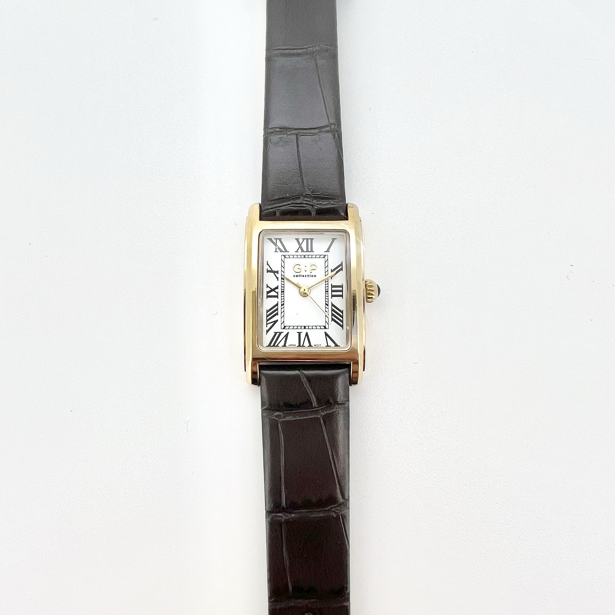 שעון gp עובד עם מנגנון על בטריה מחובר לרצועות עור בשלושה צבעים