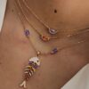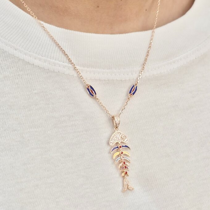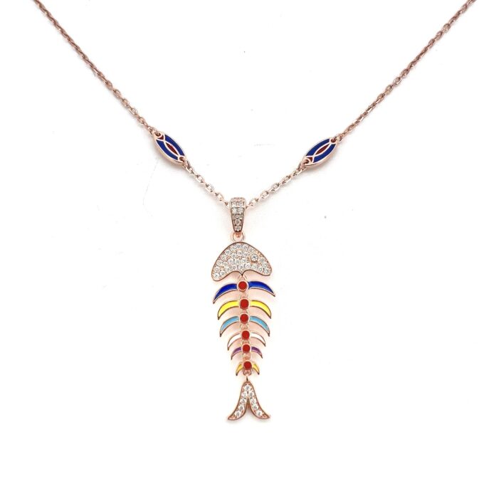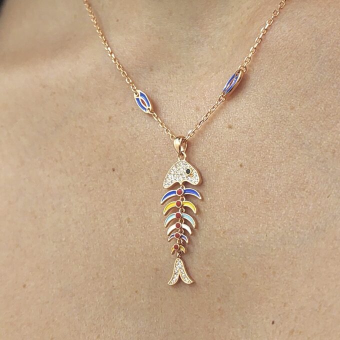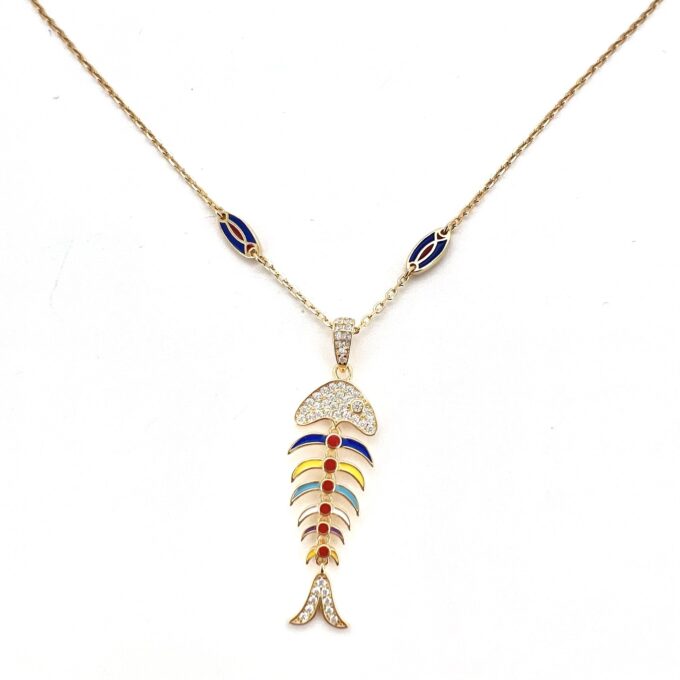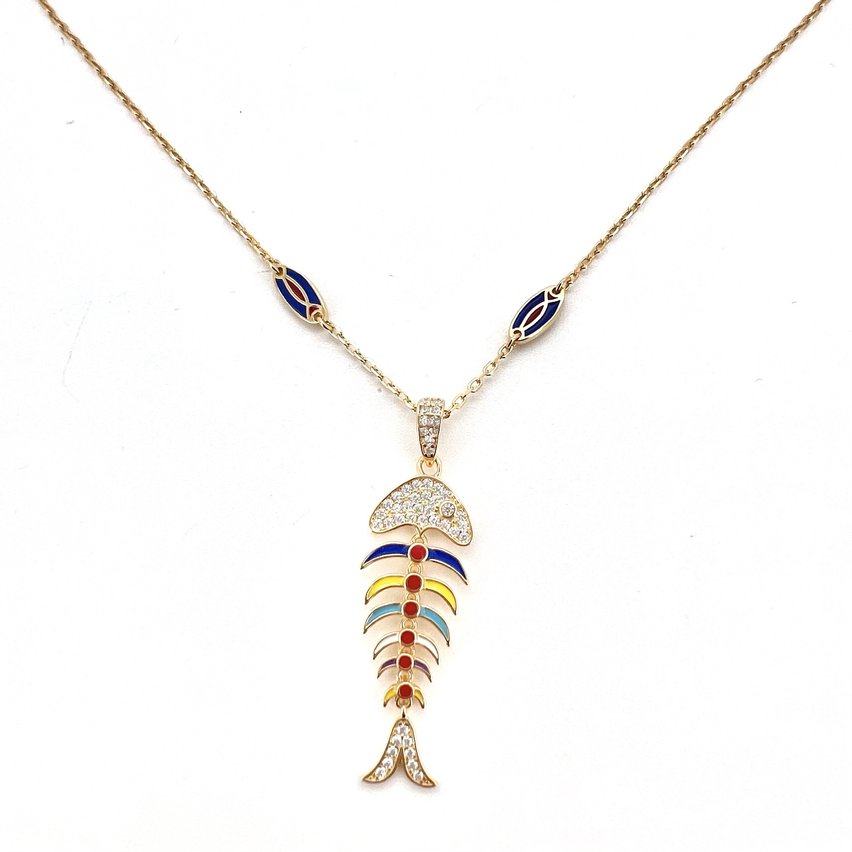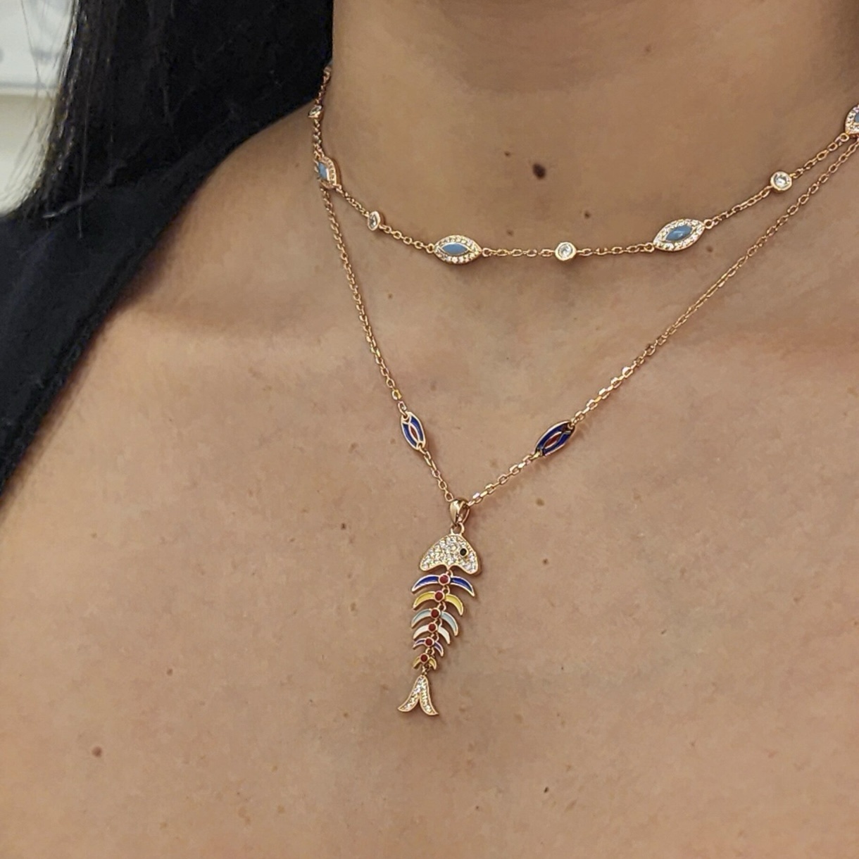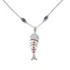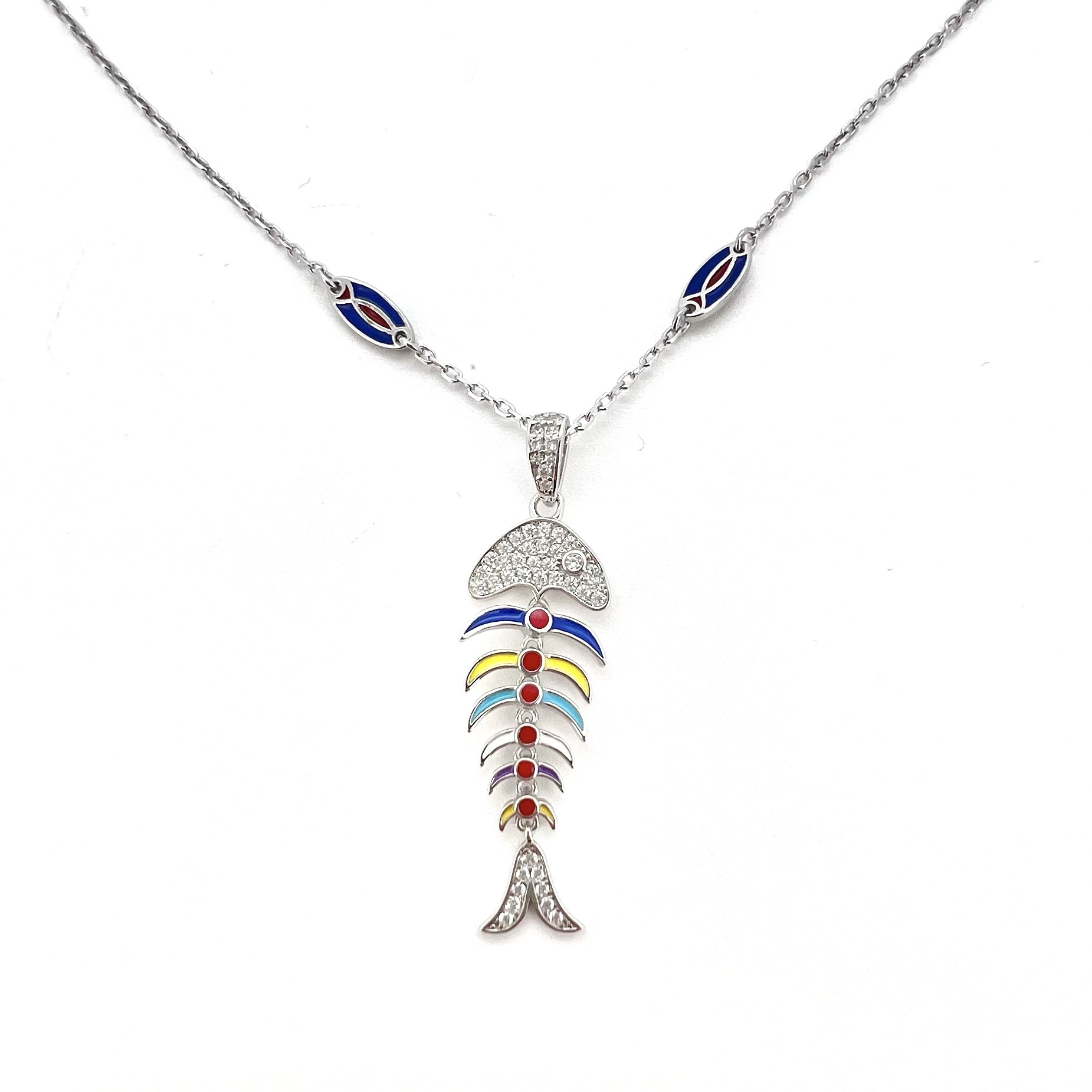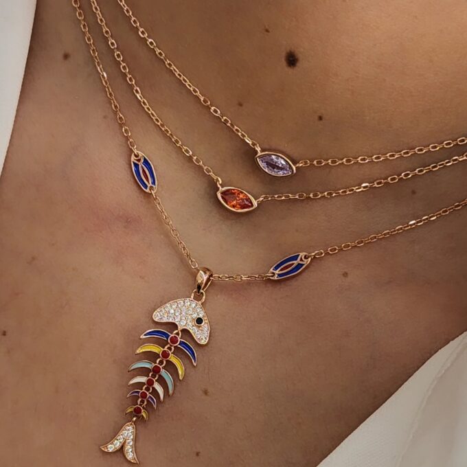 שרשרת עם 2 עיניים ותליון דג צבעוני אורך 40סמ פלוס 5סמ הארכה מכסף אמיתי