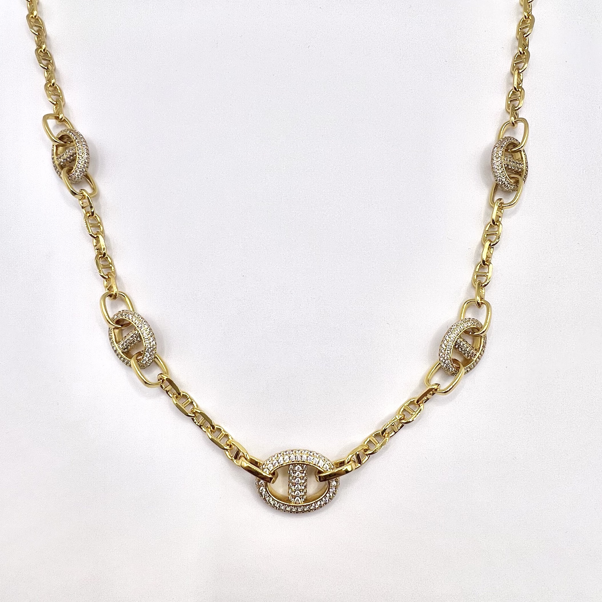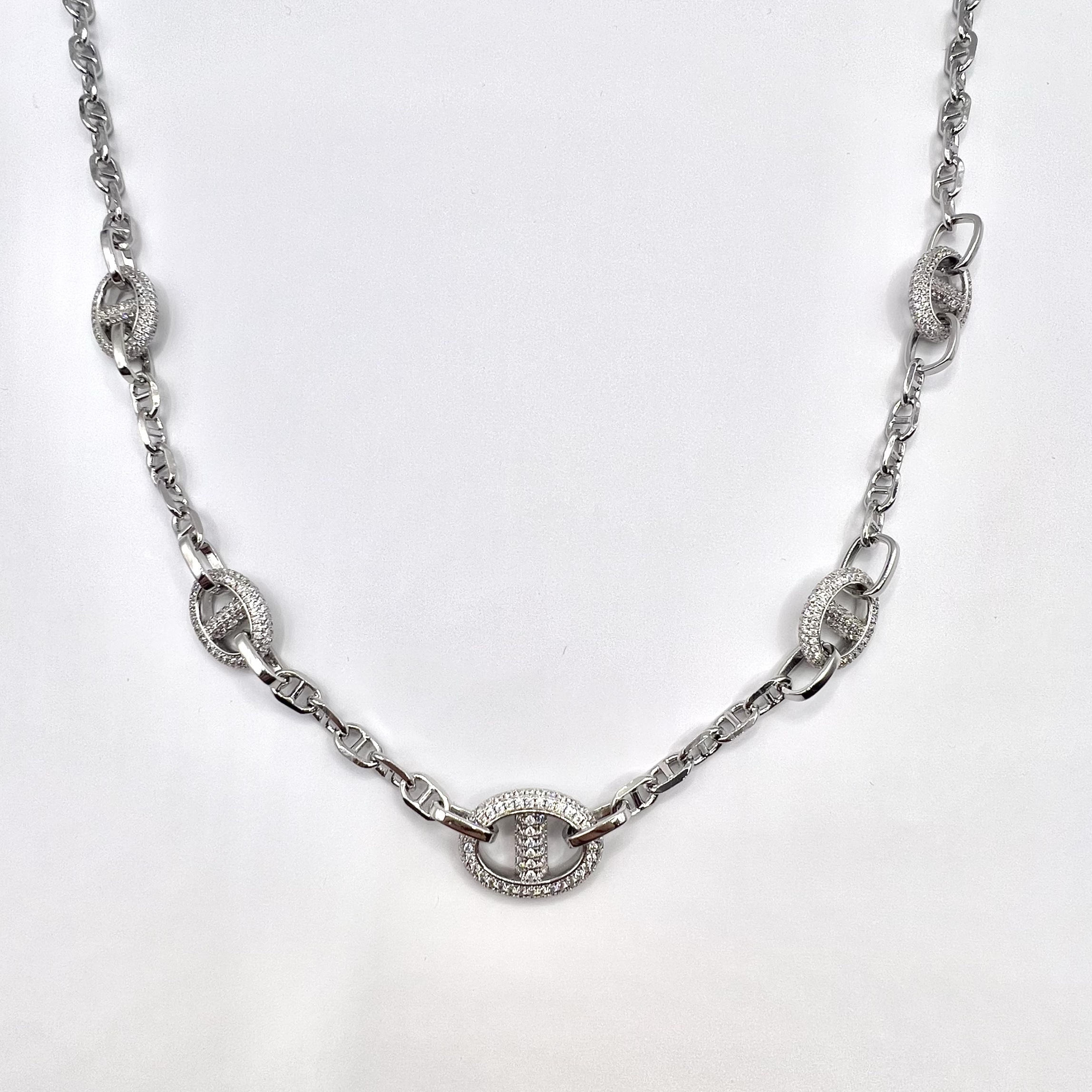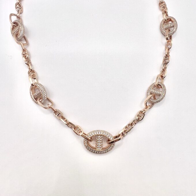 שרשרת עם חוליות עגולות וחוליות גדולות. משובצות אבני זרקון מרודיום איכותי