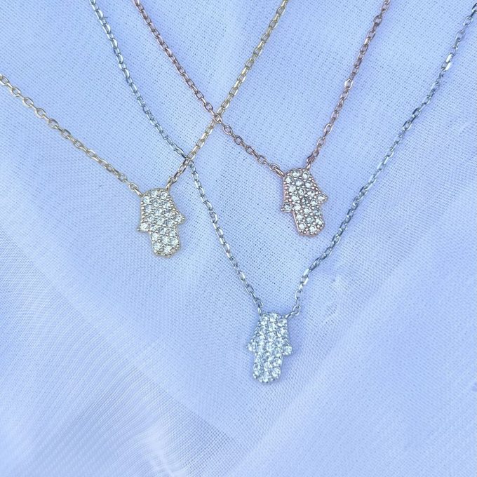 שרשרת חמסה משובצת לאורך מכסף אמיתי 925