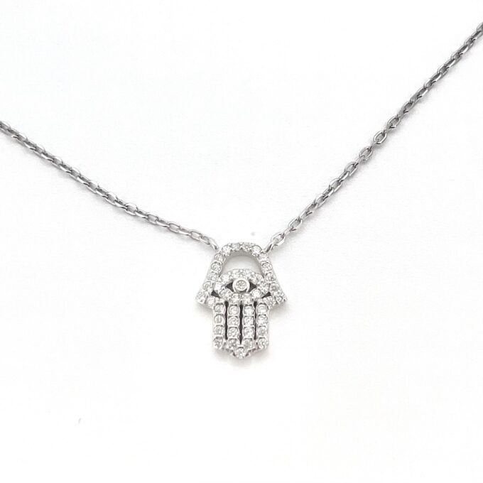 שרשרת עם תליון חמסה שבתוכה עין משובצת אבני זרקון מכסף אמיתי 925