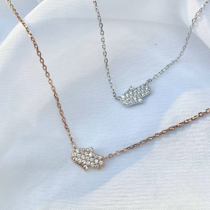 שרשרת חמסה משובצת לרוחב מכסף אמיתי 925