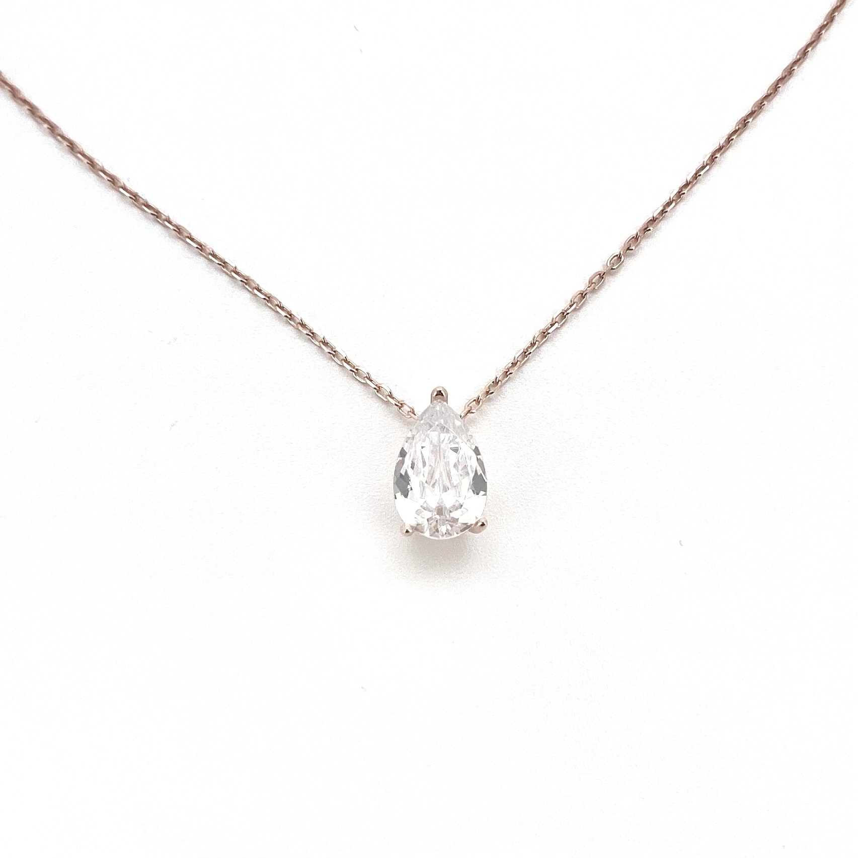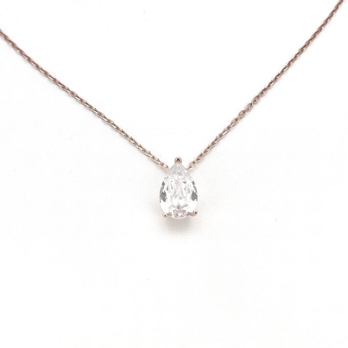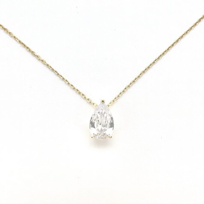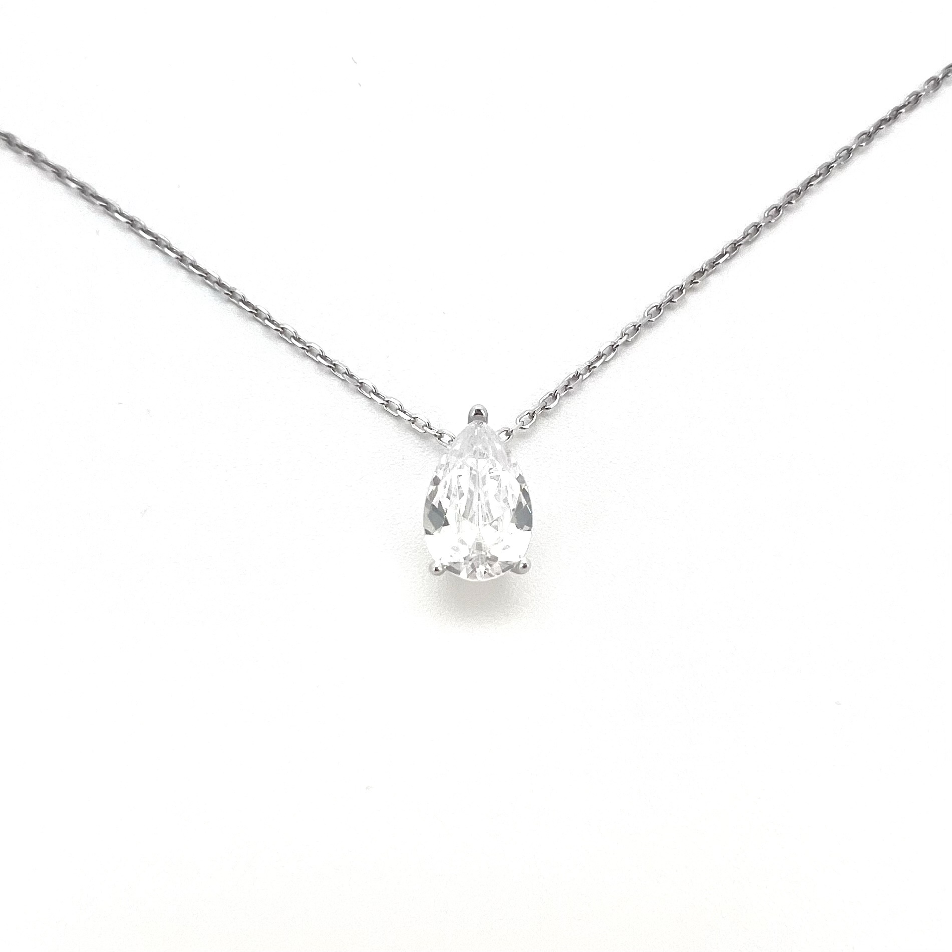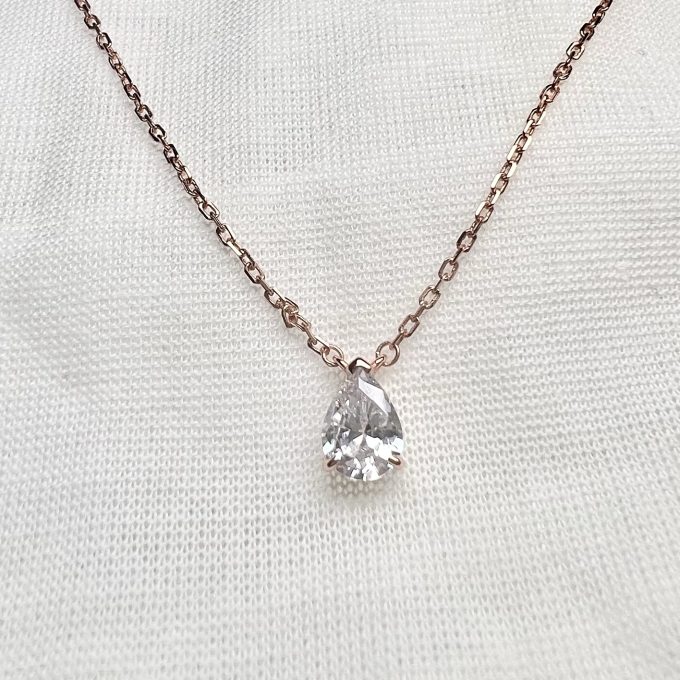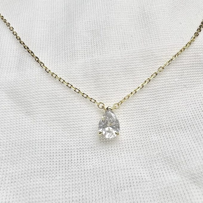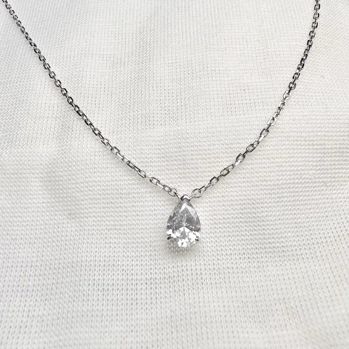 שרשרת עם תליון אבן זרקון בצורת טיפה מכסף אמיתי 925