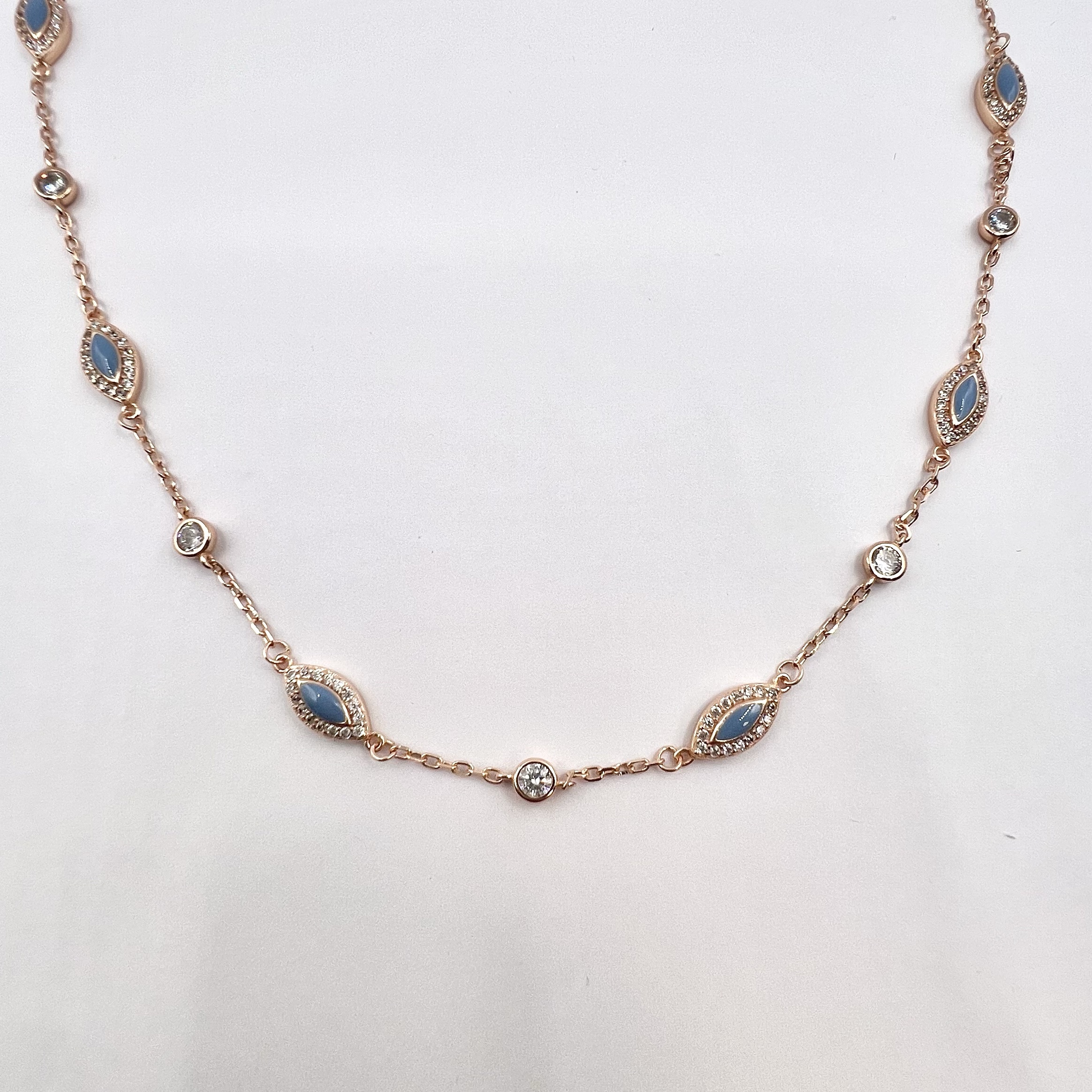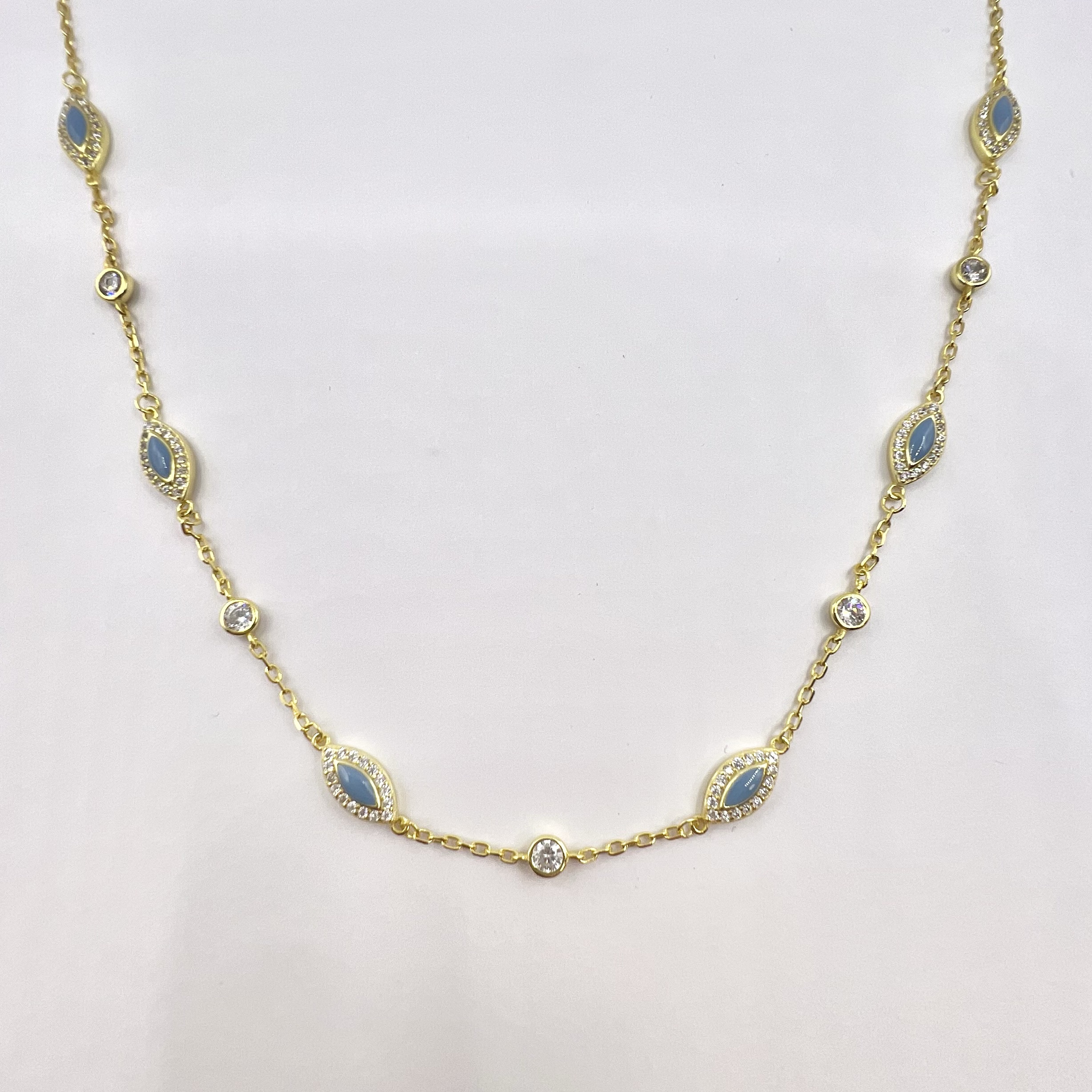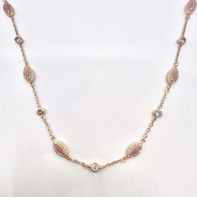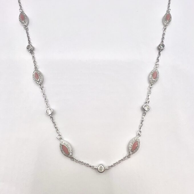 שרשרת עם תליוני אבני טיפות משובצות מסביב ואבני זרקון עגולות מכסף אמיתי 925