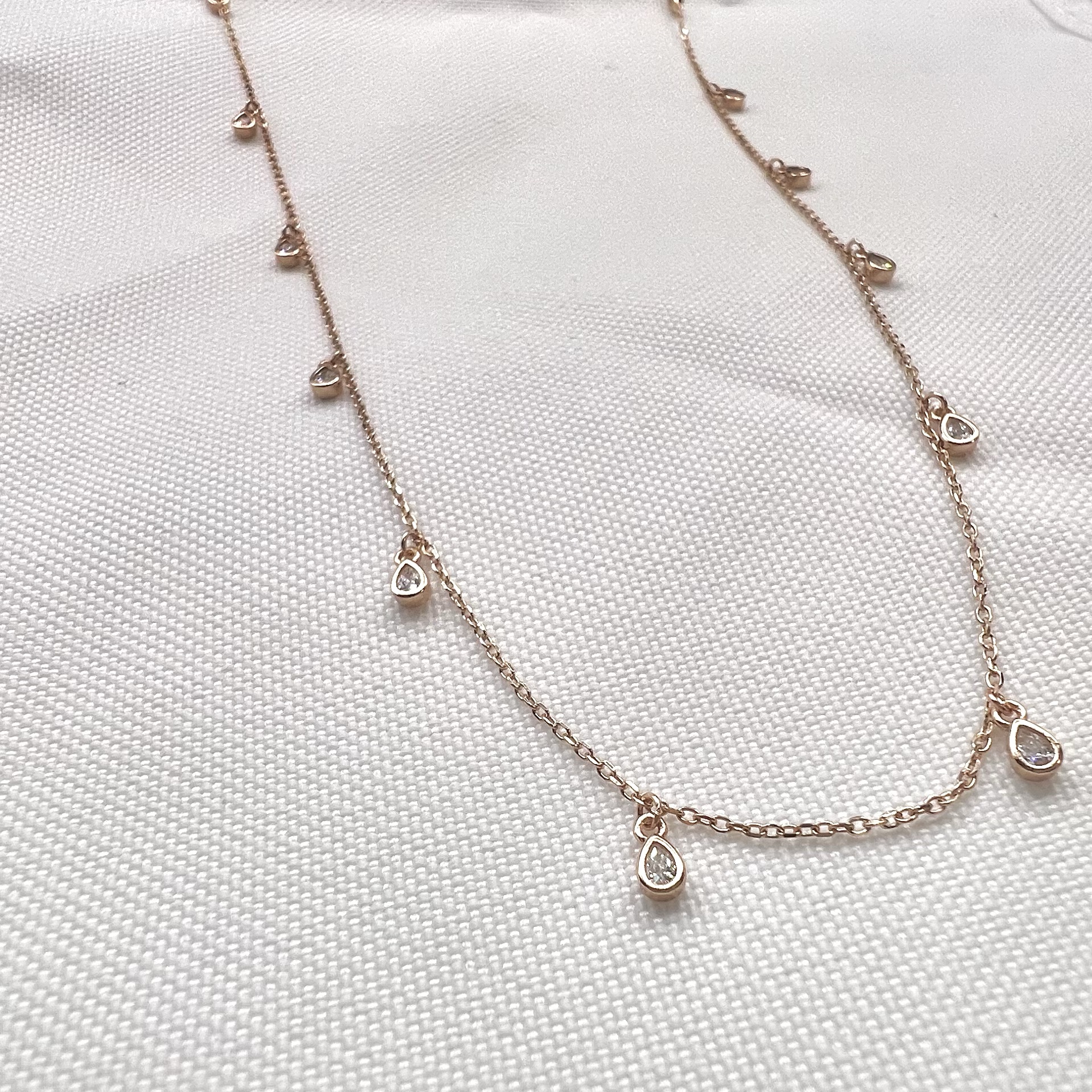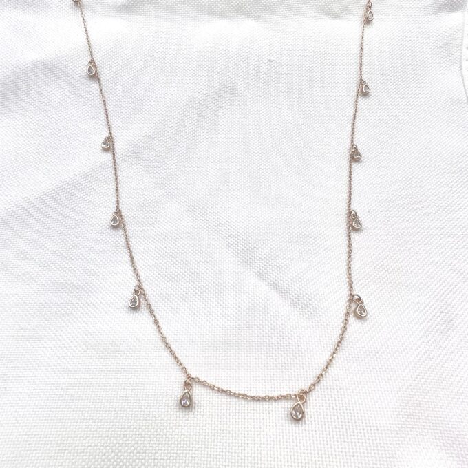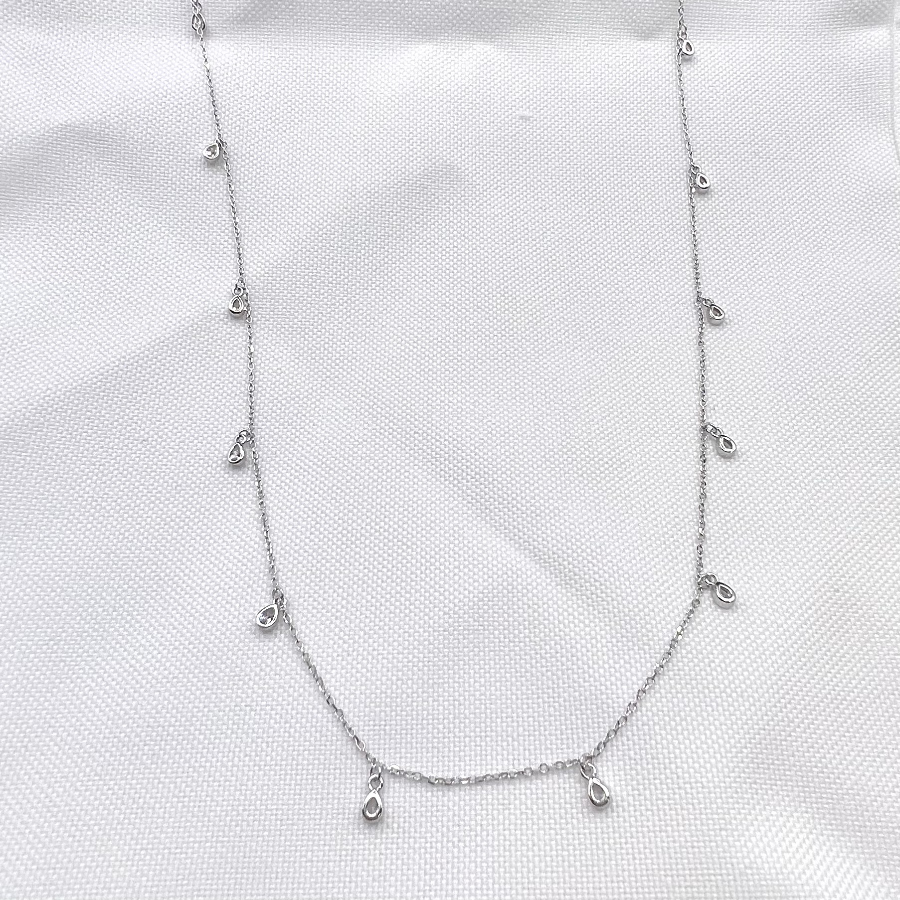 שרשרת ארוכה עם אבני זרקון בצורת טיפות לאורך כל השרשרת מכסף אמיתי 925