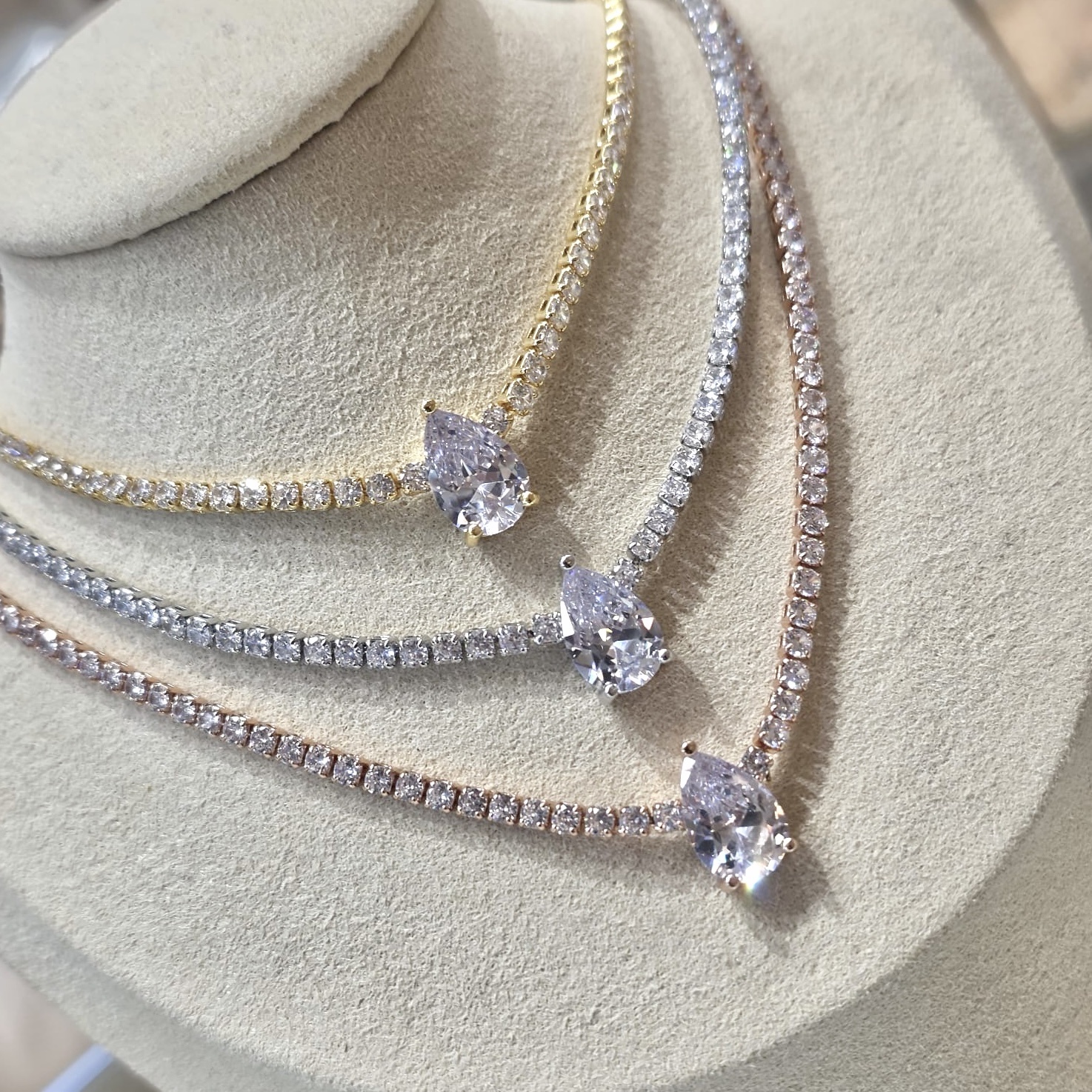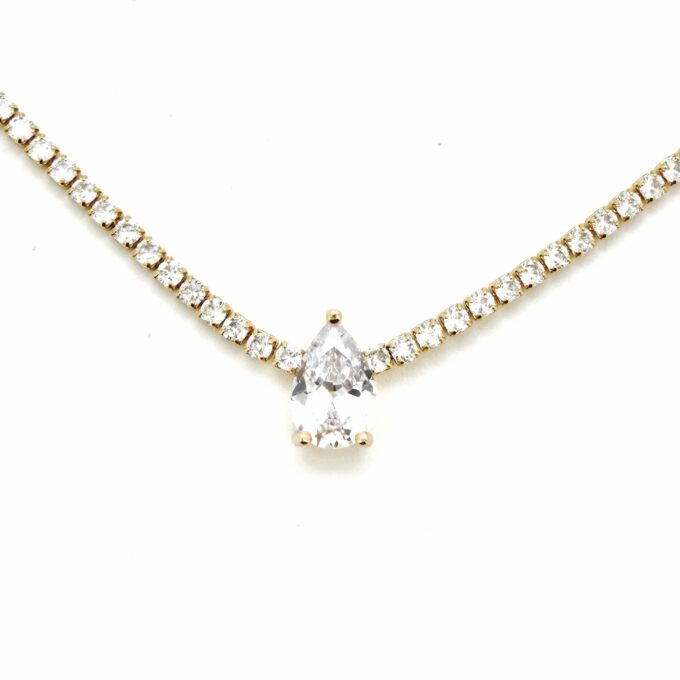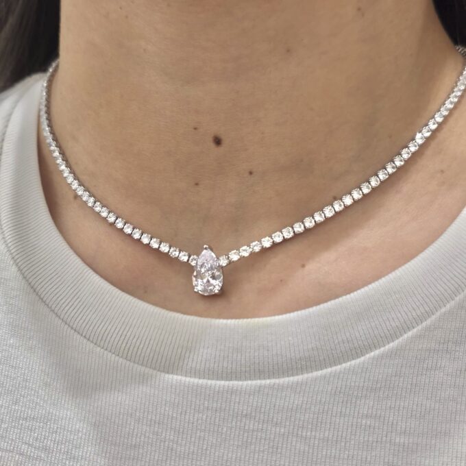 שרשרת טניס עם תליון אבן זרקון בצורת טיפה