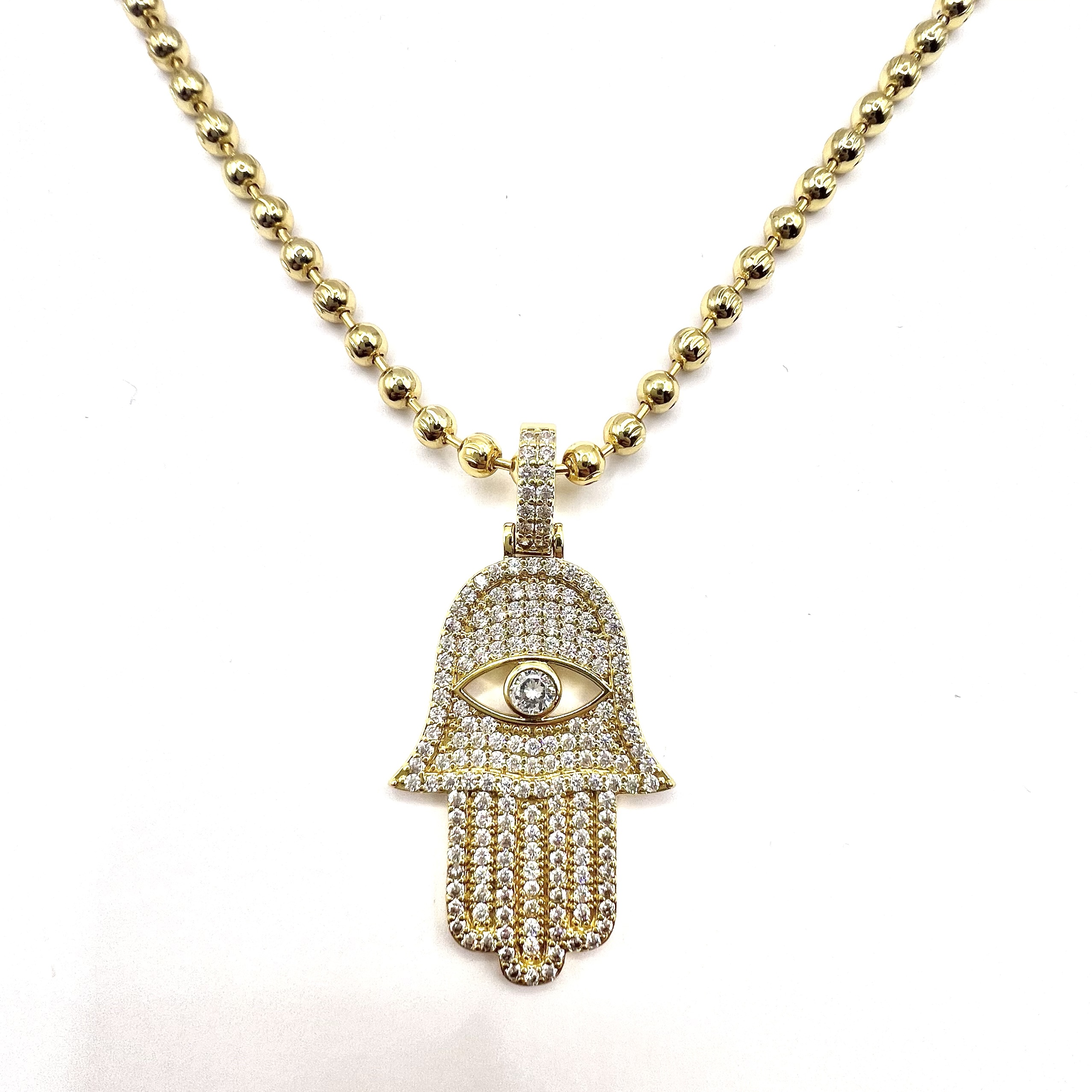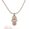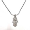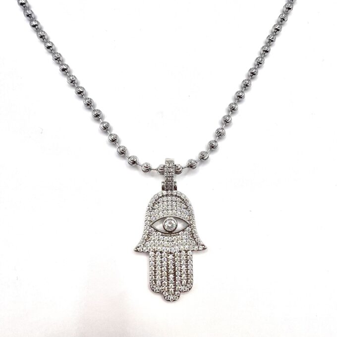 שרשרת כדורים באורך 70 ס״מ עם אופציה ל-5 ס״מ הארכה ותליון חמסה משובץ אבני זרקון מרודיום איכותי