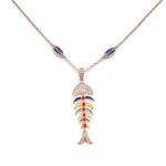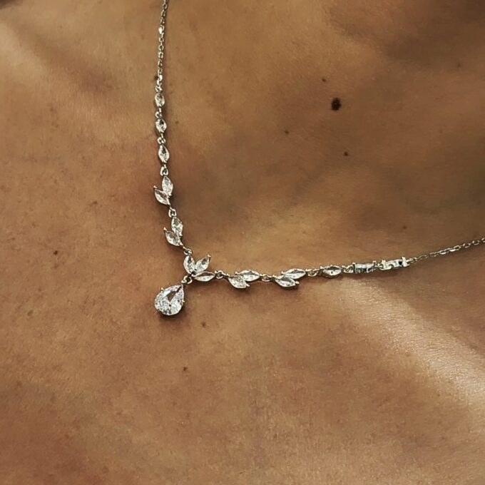 שרשרת משובצת אבני זרקון ובמרכזה עיצוב לוטוס עם טיפה נופלת מכסף אמיתי
