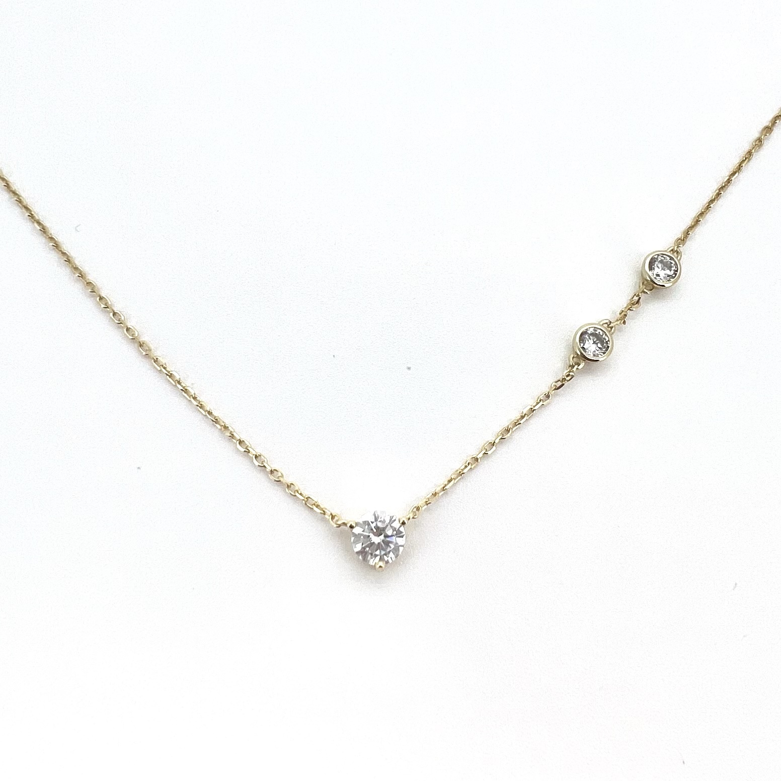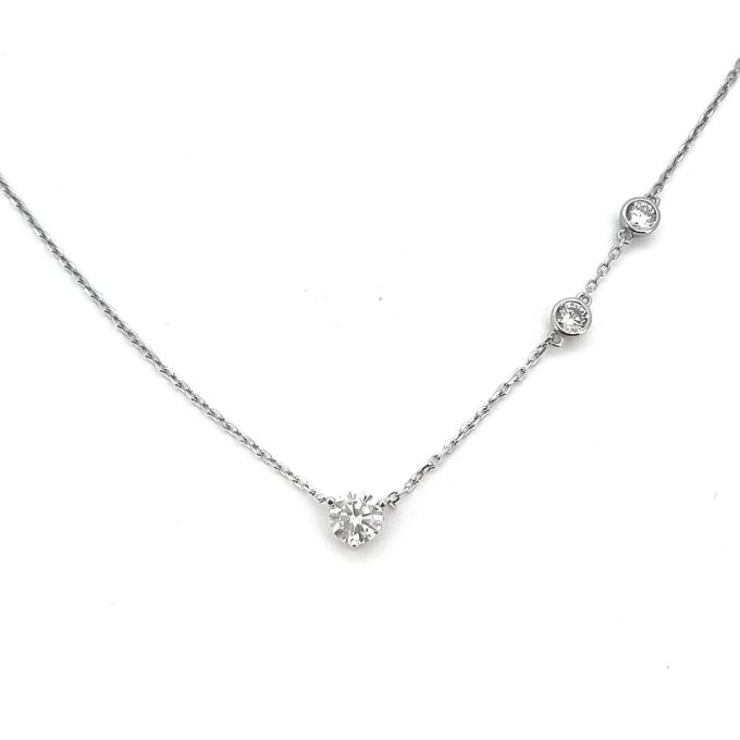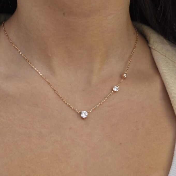 שרשרת עם תליון אבן זרקון עגולה שבהמשך יש עוד שתי אבני זרקון משובצים